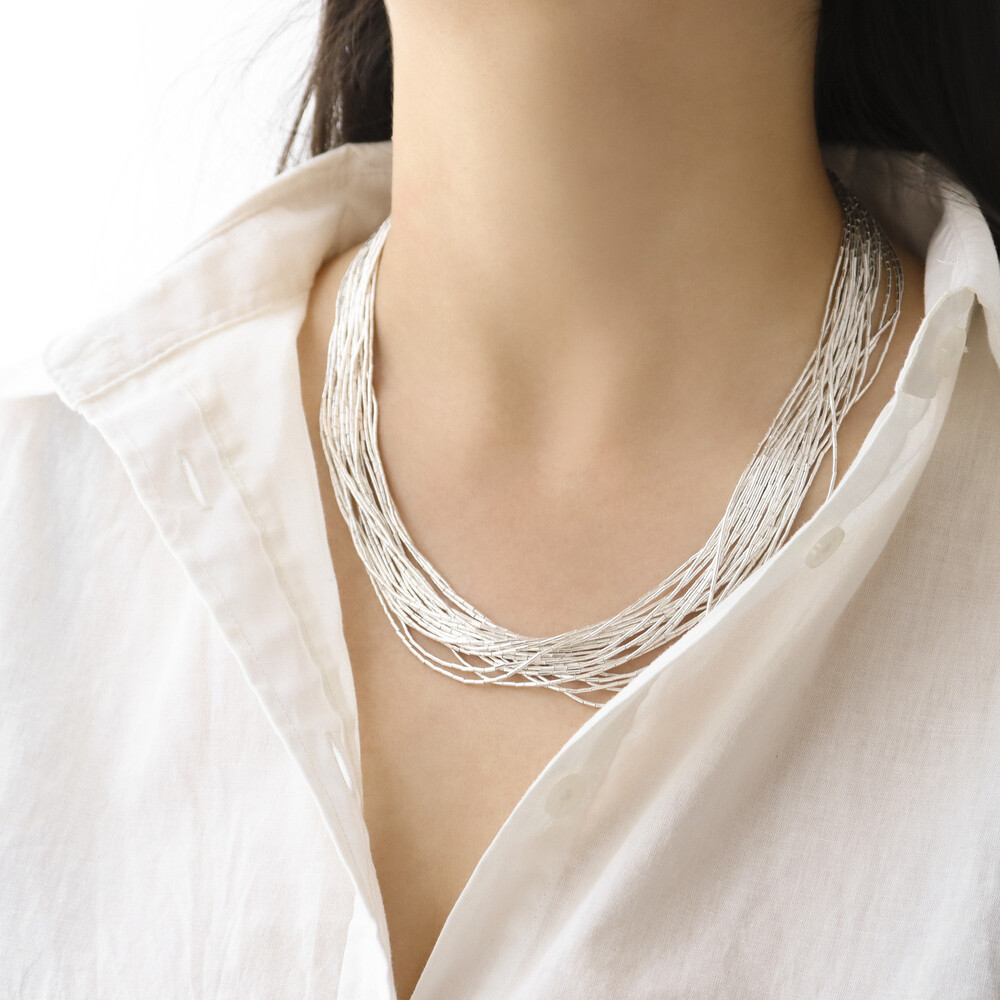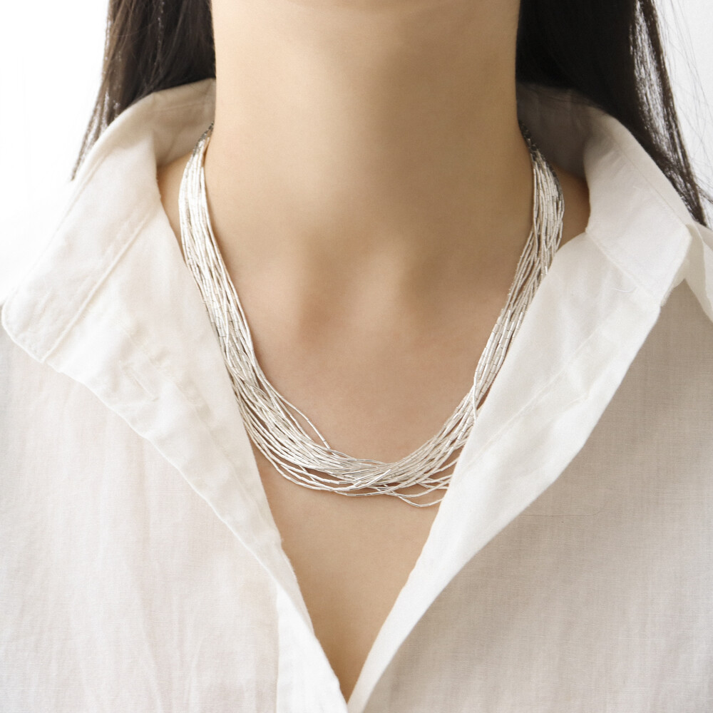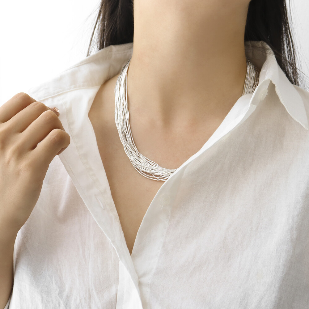 100024 20-Lines Beads Silver Necklace 50.5 cm