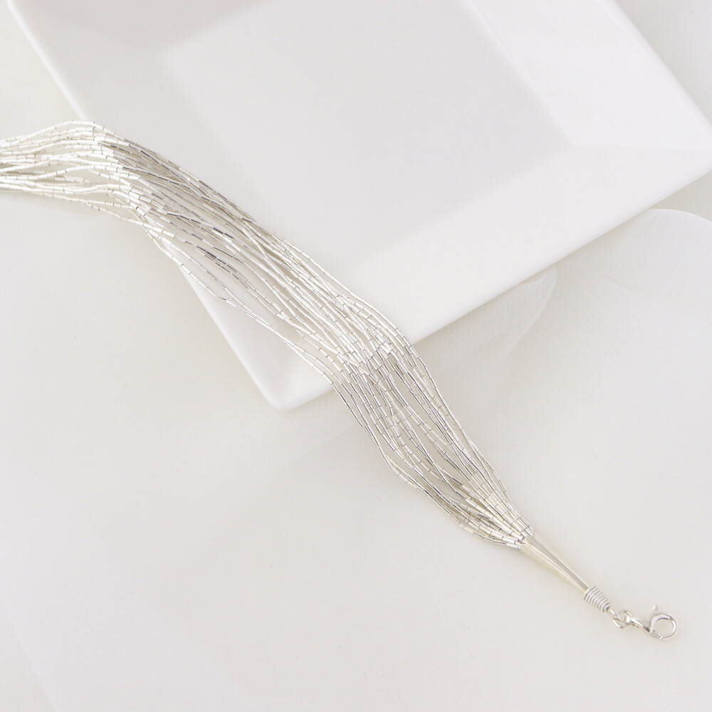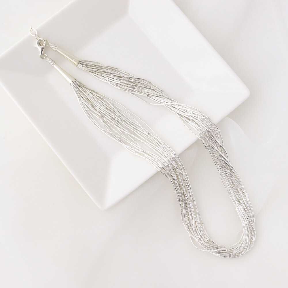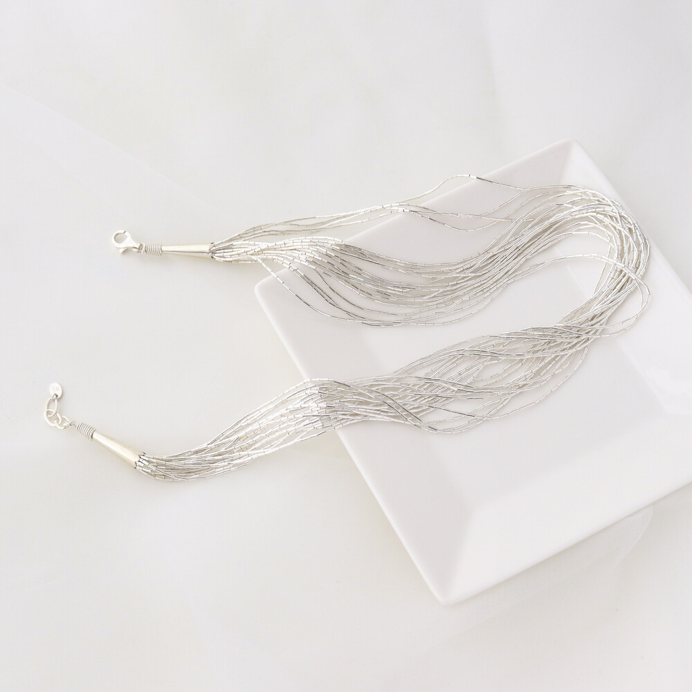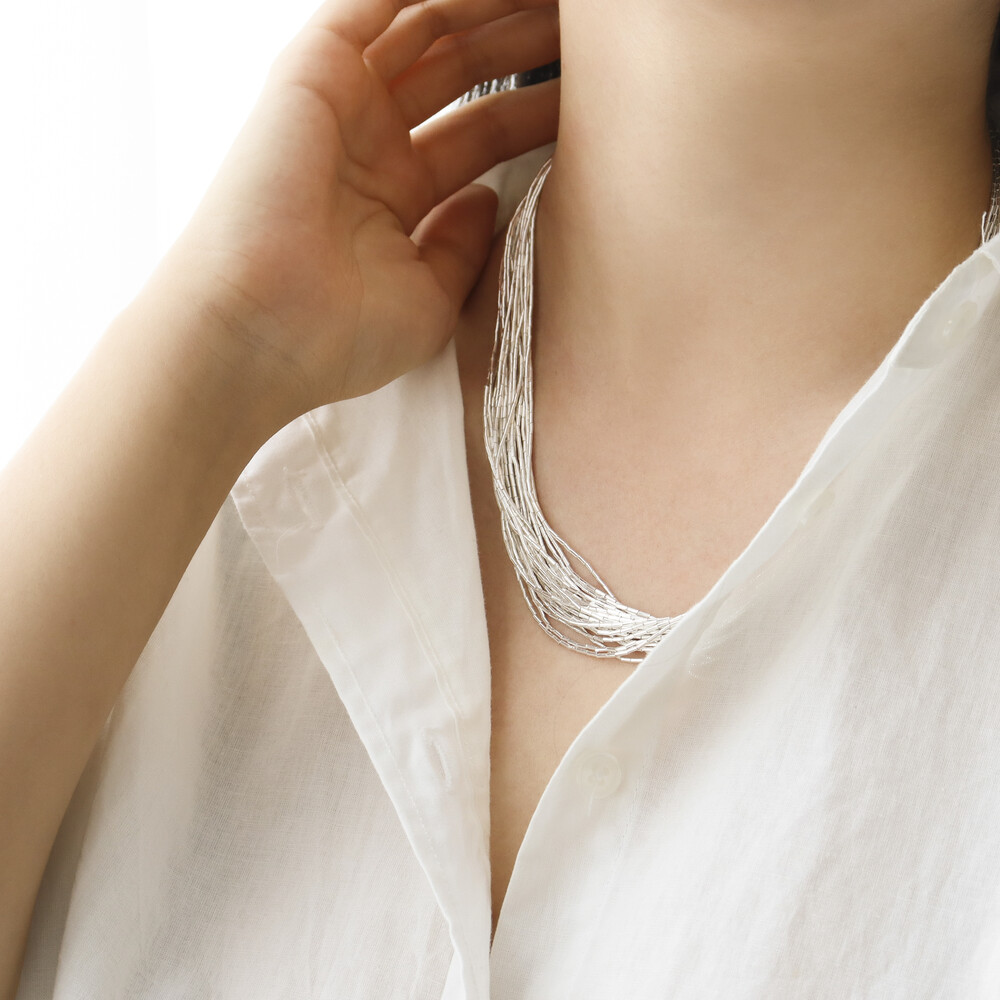 100024 20-Lines Beads Silver Necklace 50.5 cm