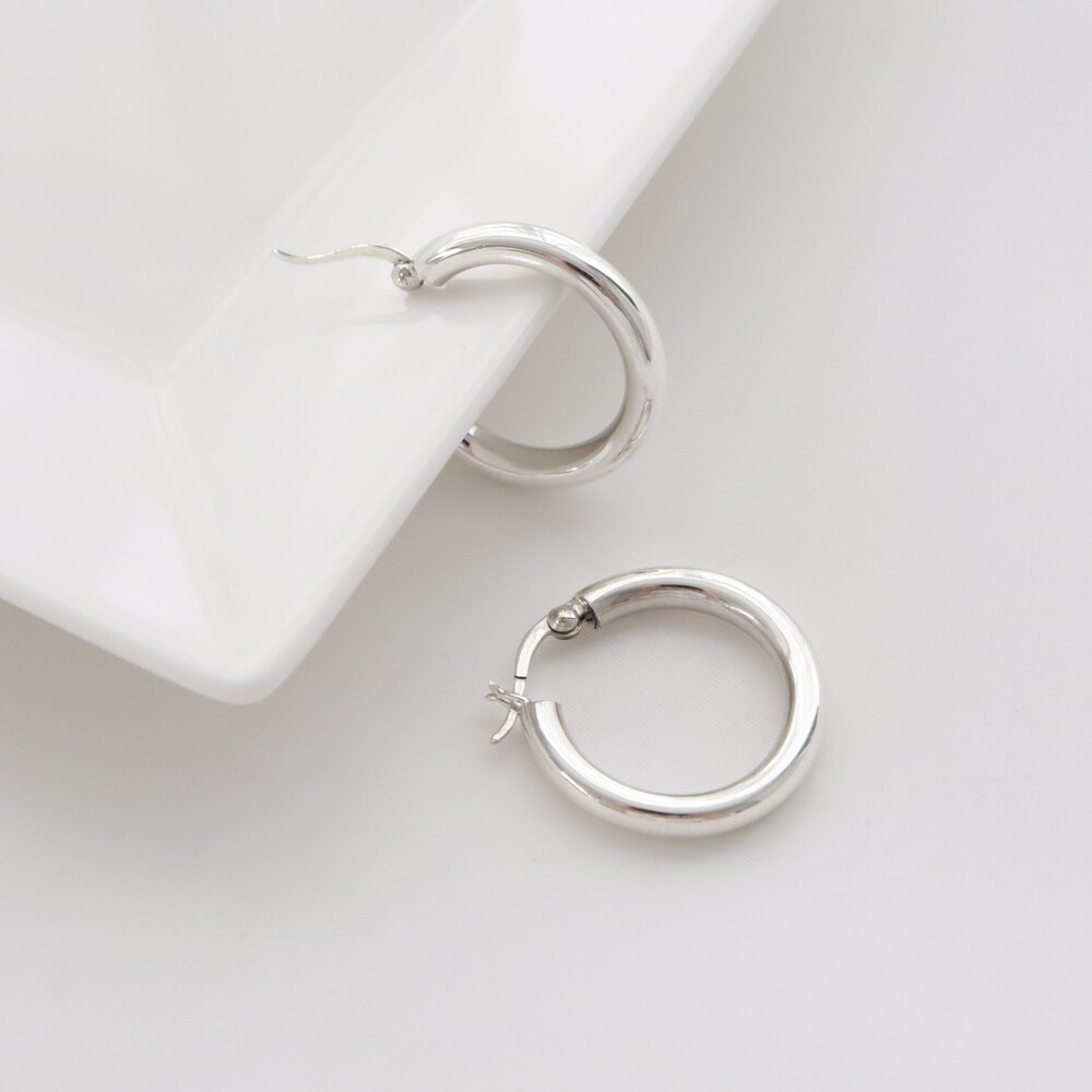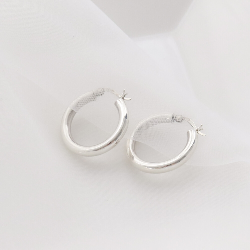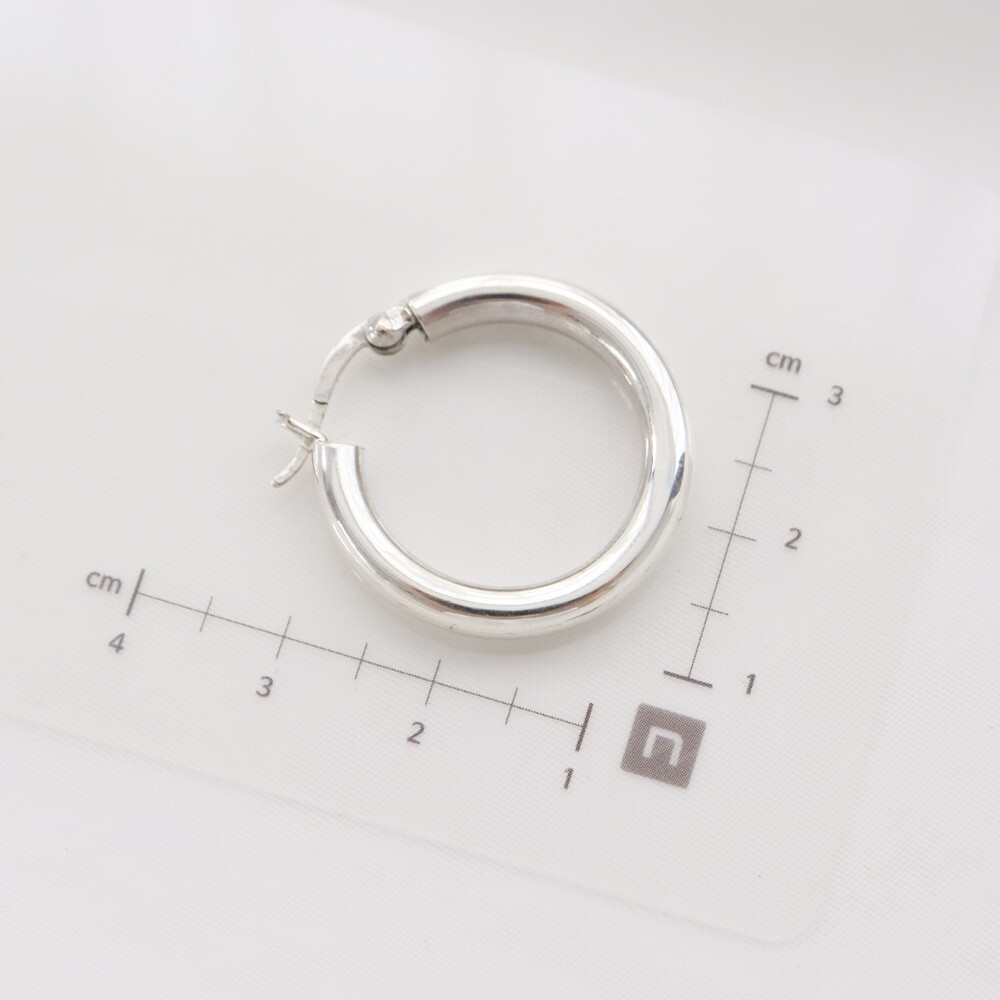 100117 Simple Daily Round Hoop Silver Earrings 4x25