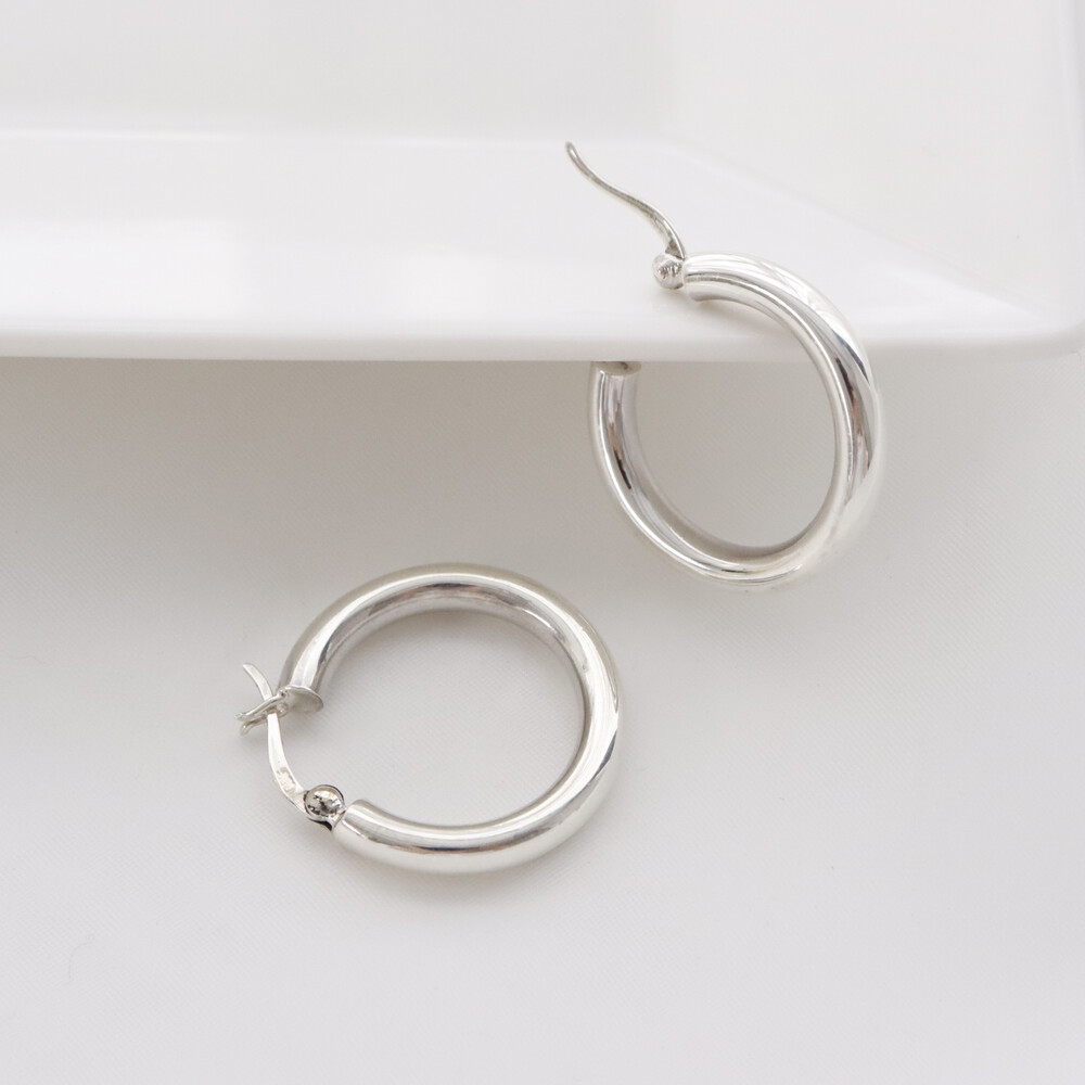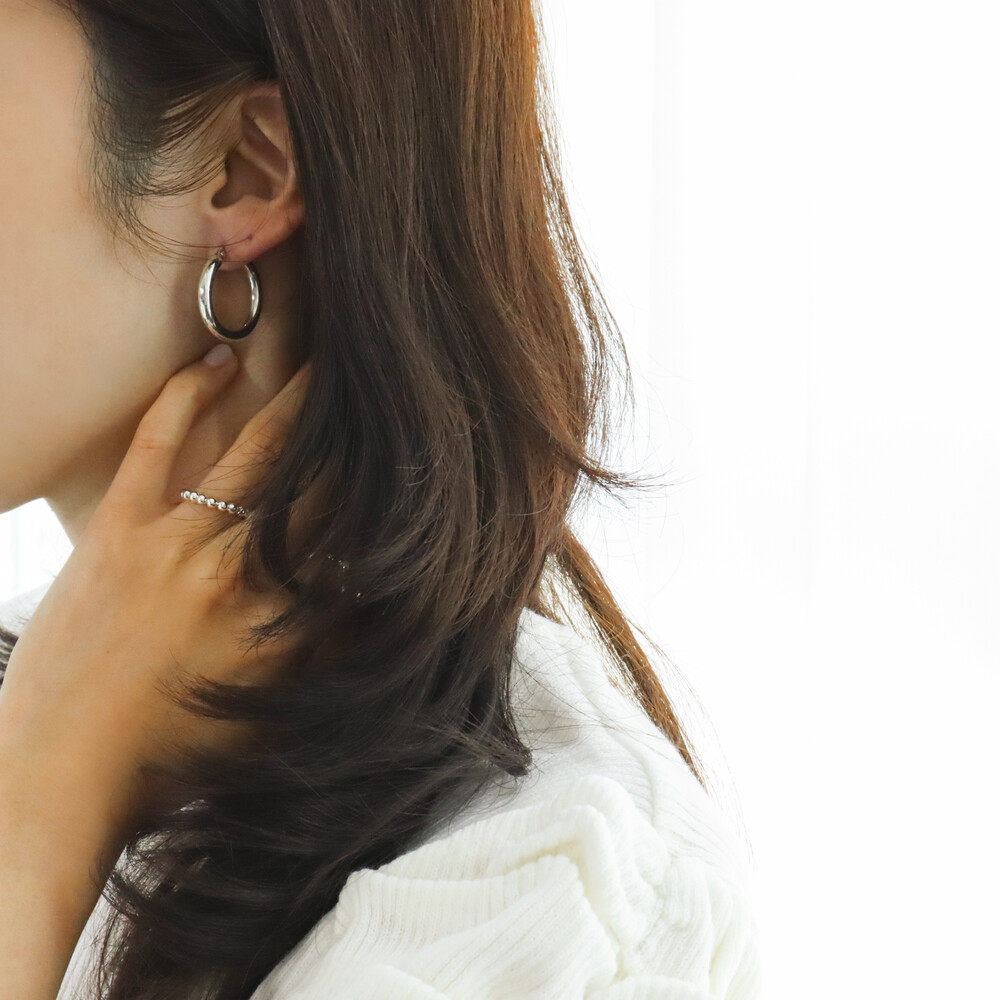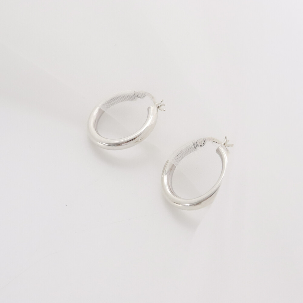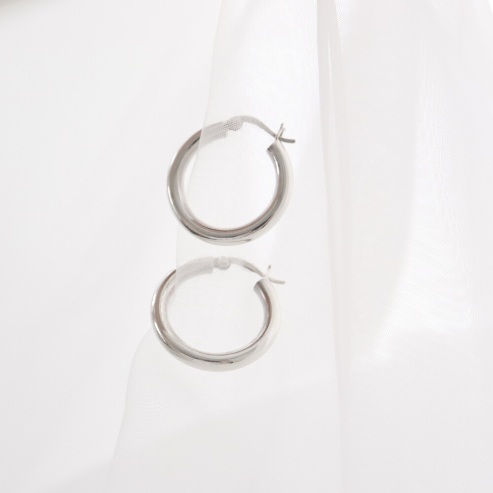 100117 Simple Daily Round Hoop Silver Earrings 4x25