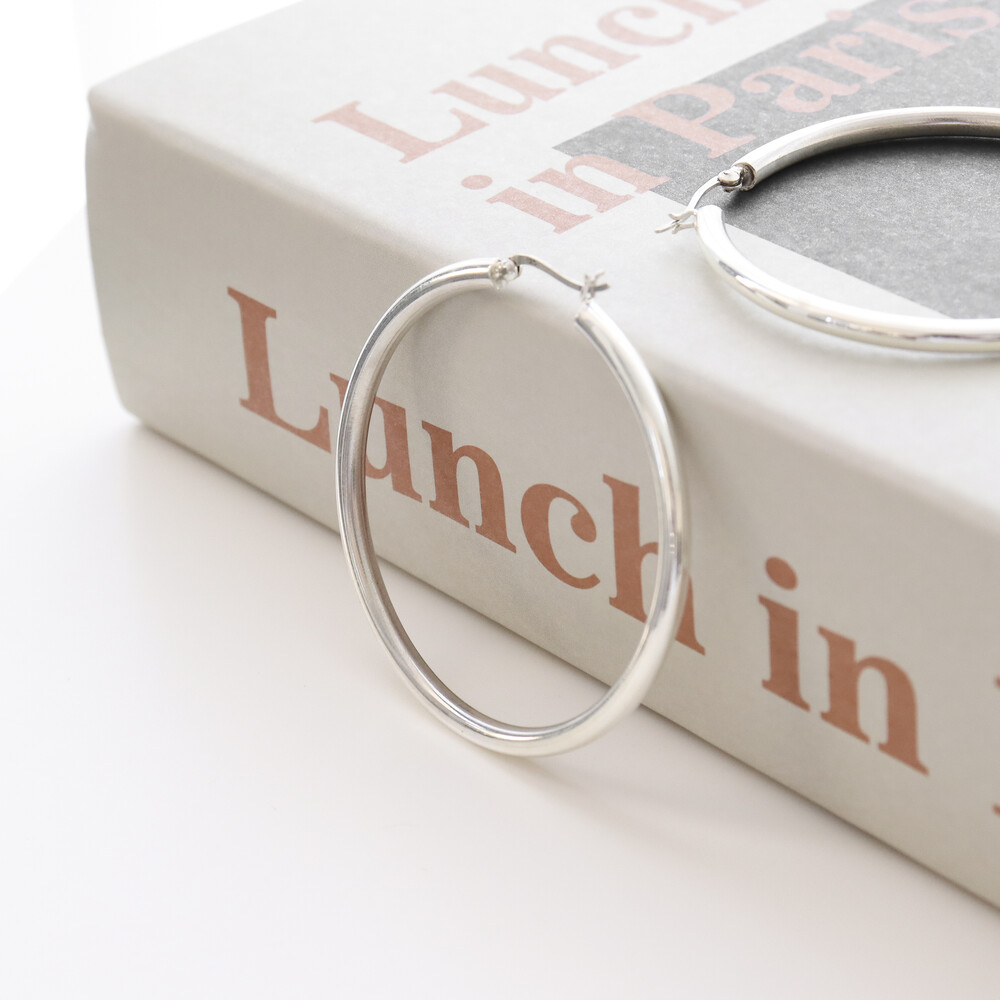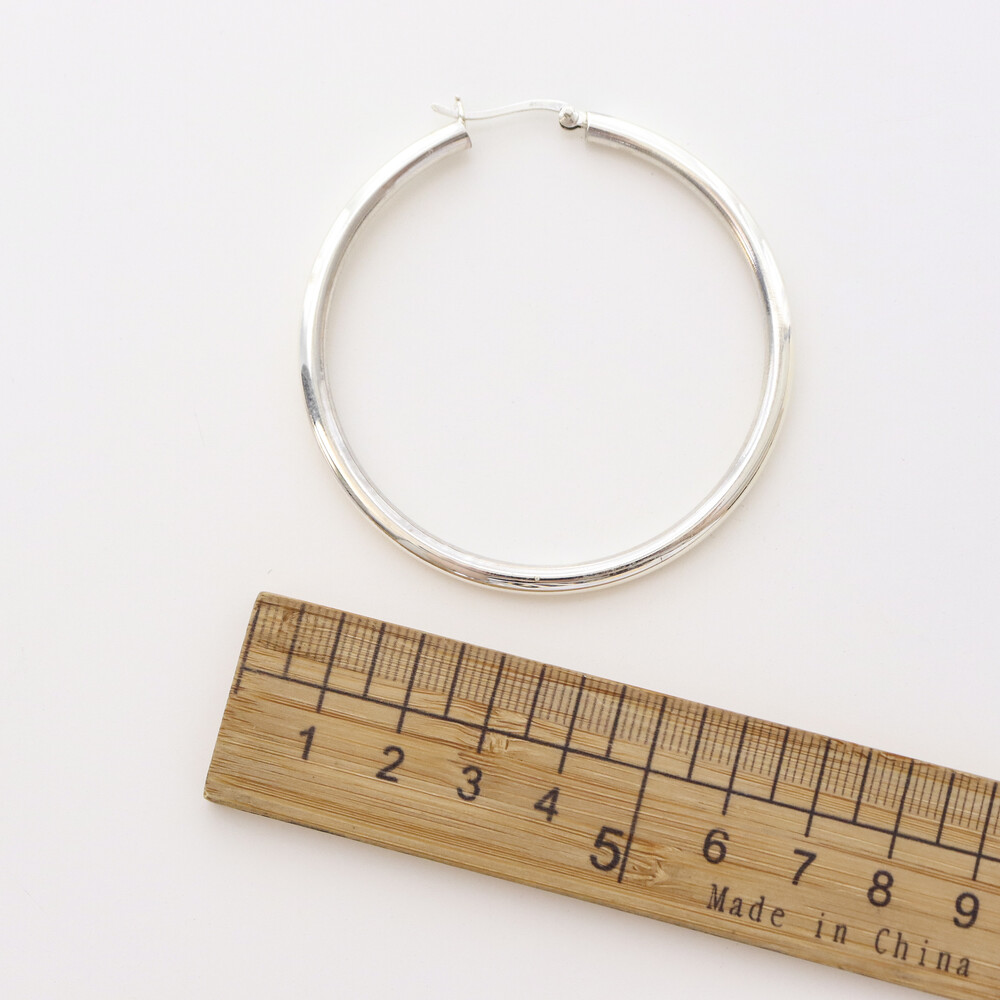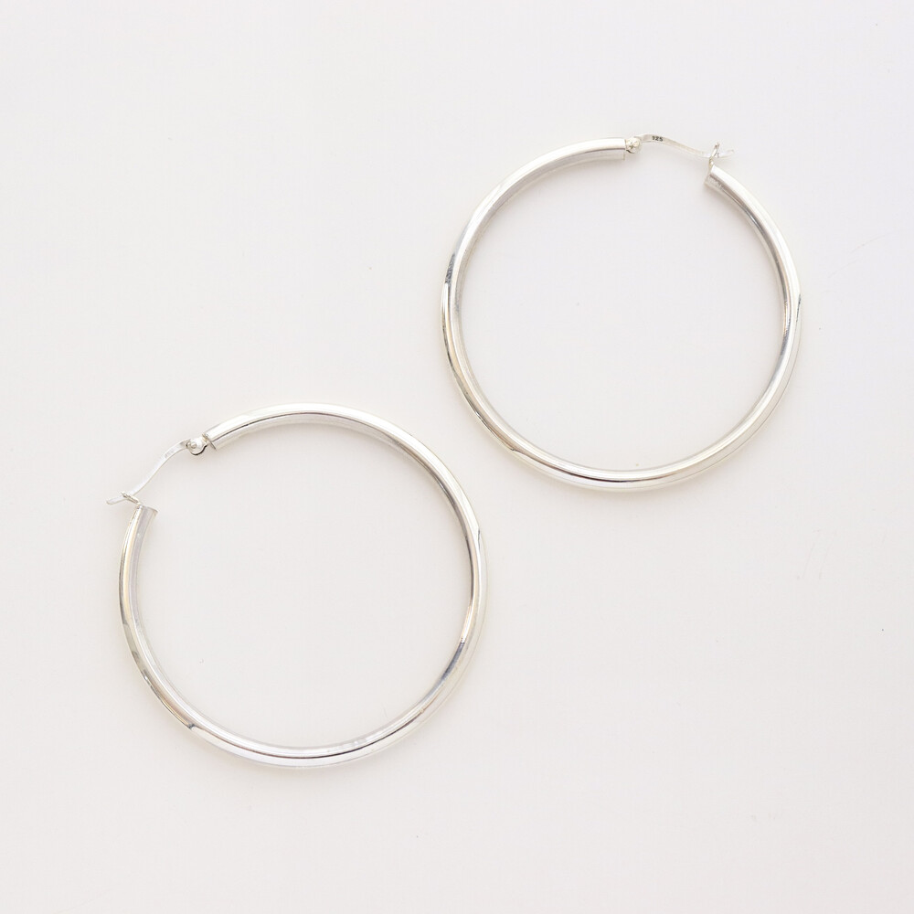 100121 Large Round Hoop Silver Earrings 4x60 mm