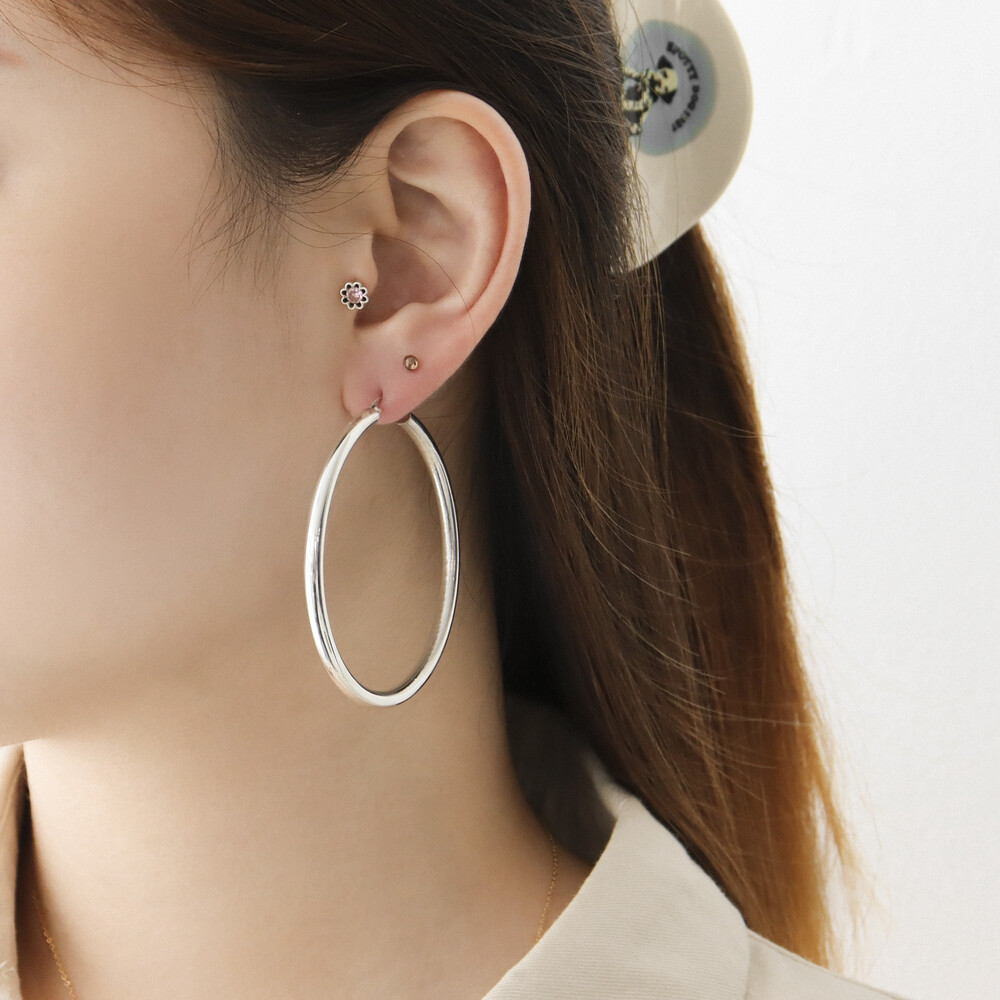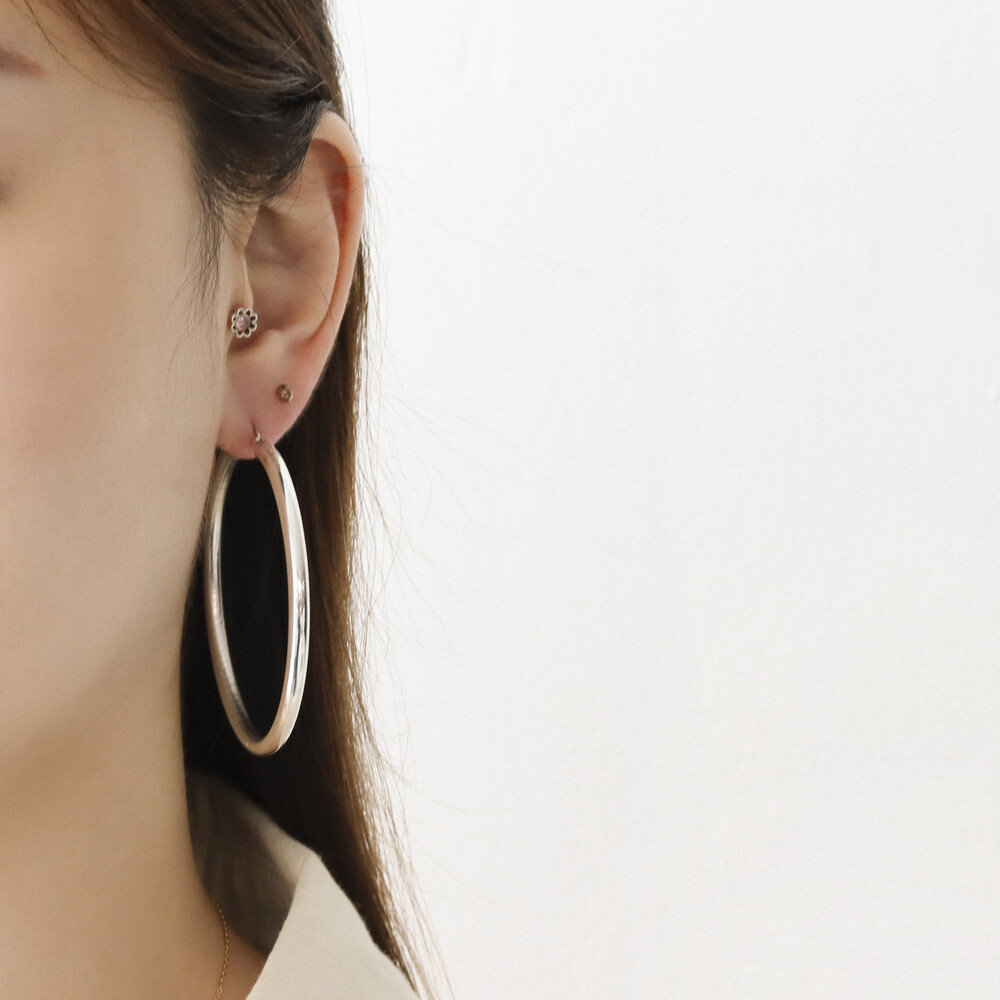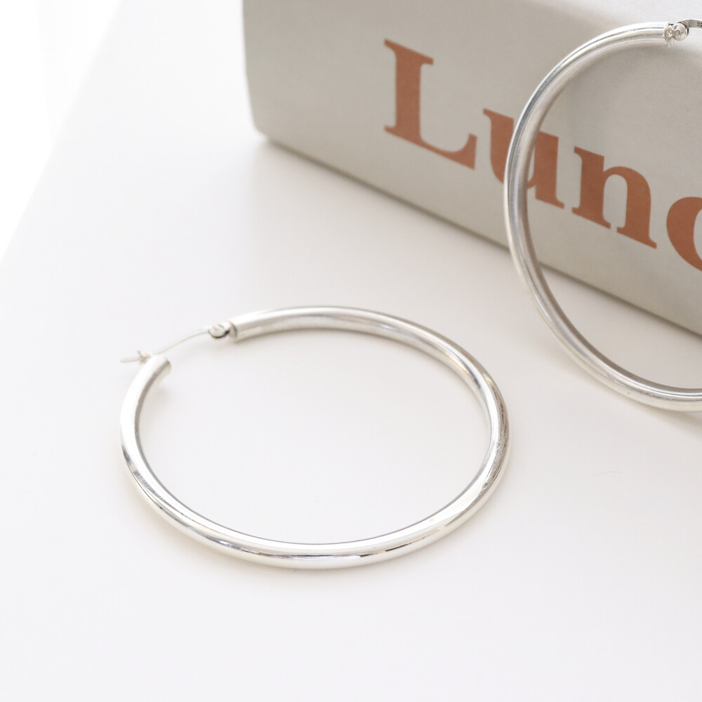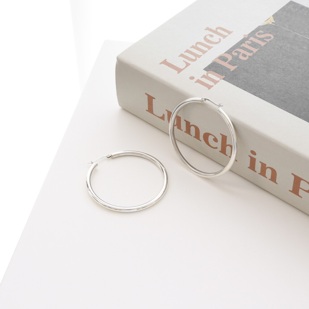 100121 Large Round Hoop Silver Earrings 4x60 mm