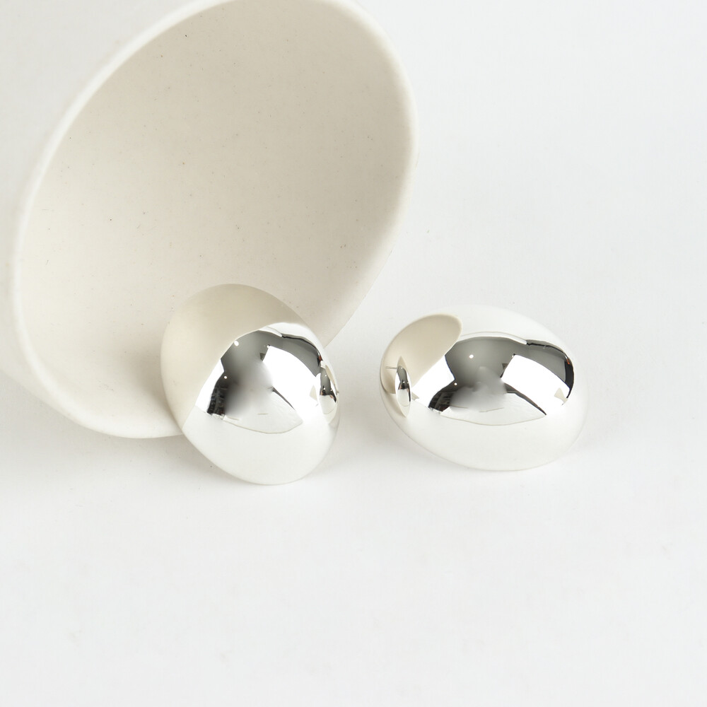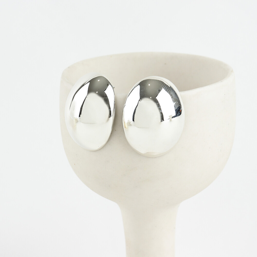 100125 Oval Dome Stud Thai Silver Earrings 20x25 mm