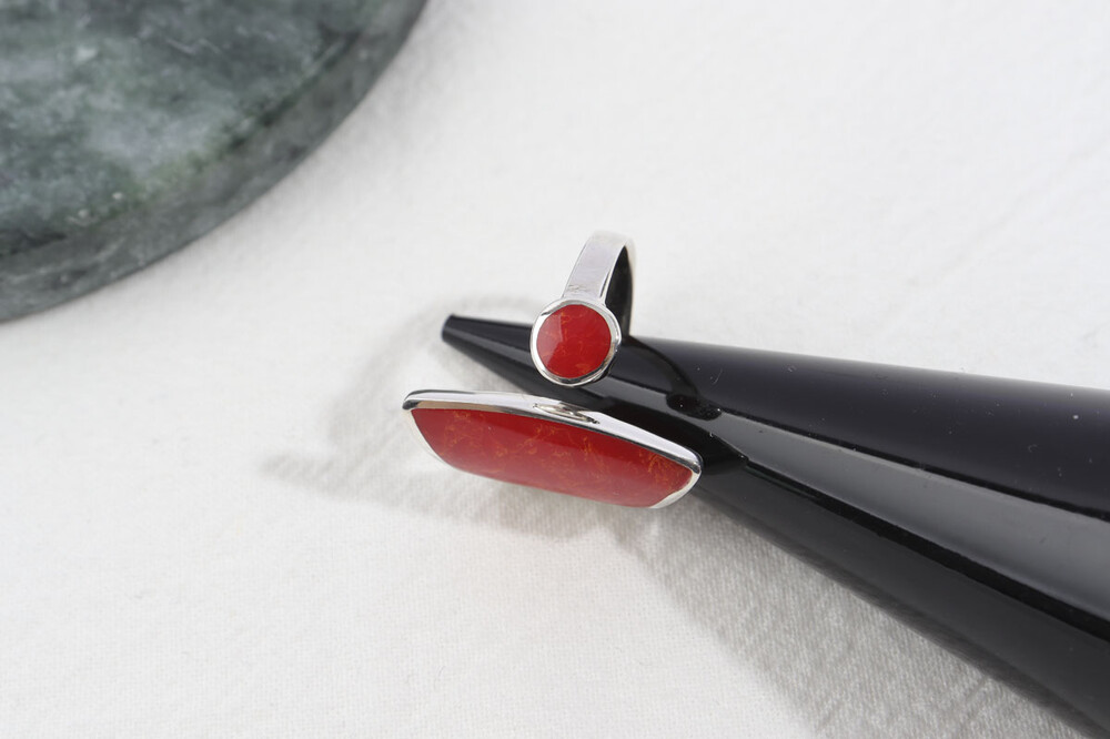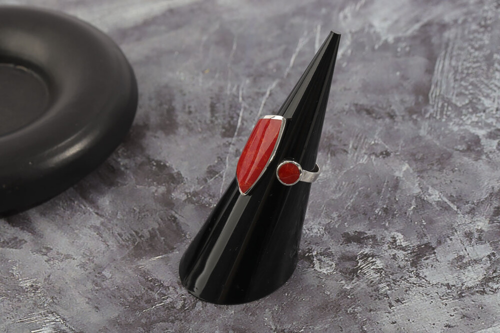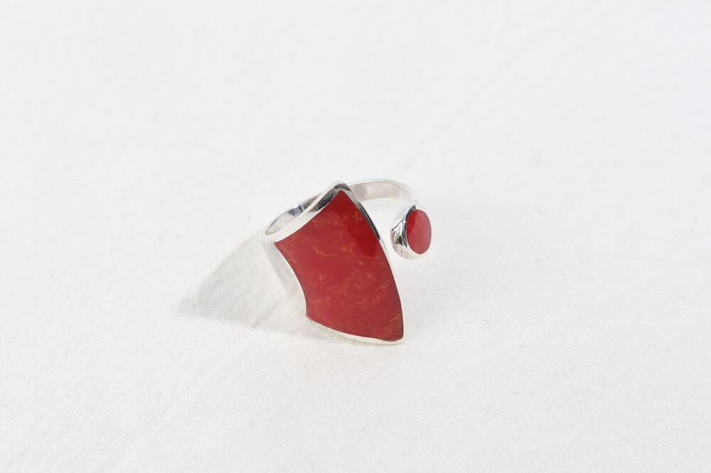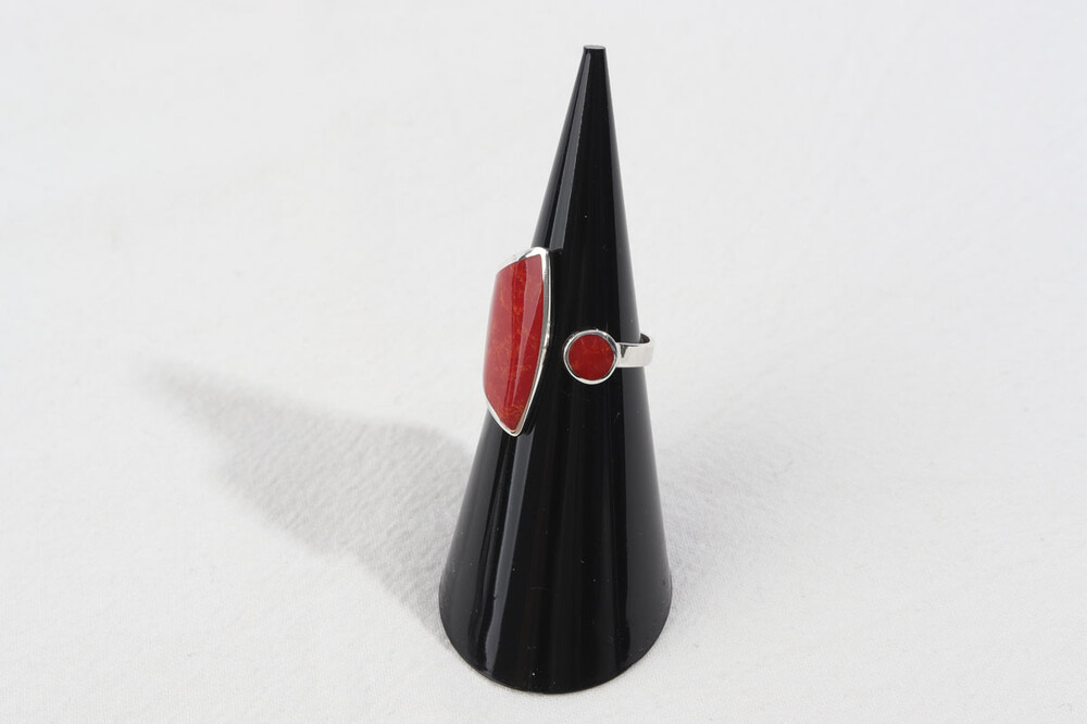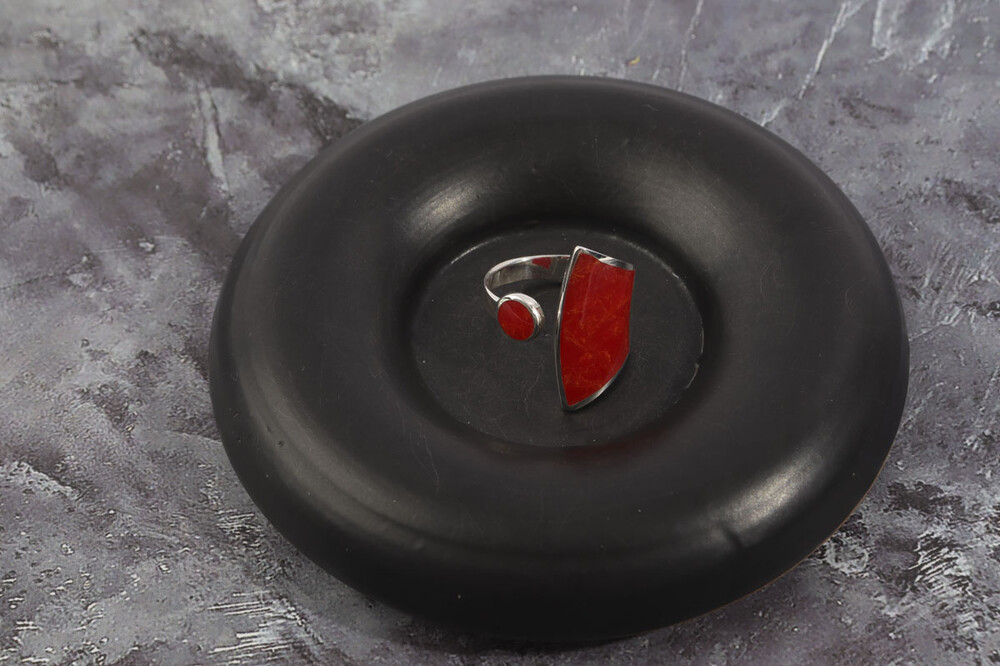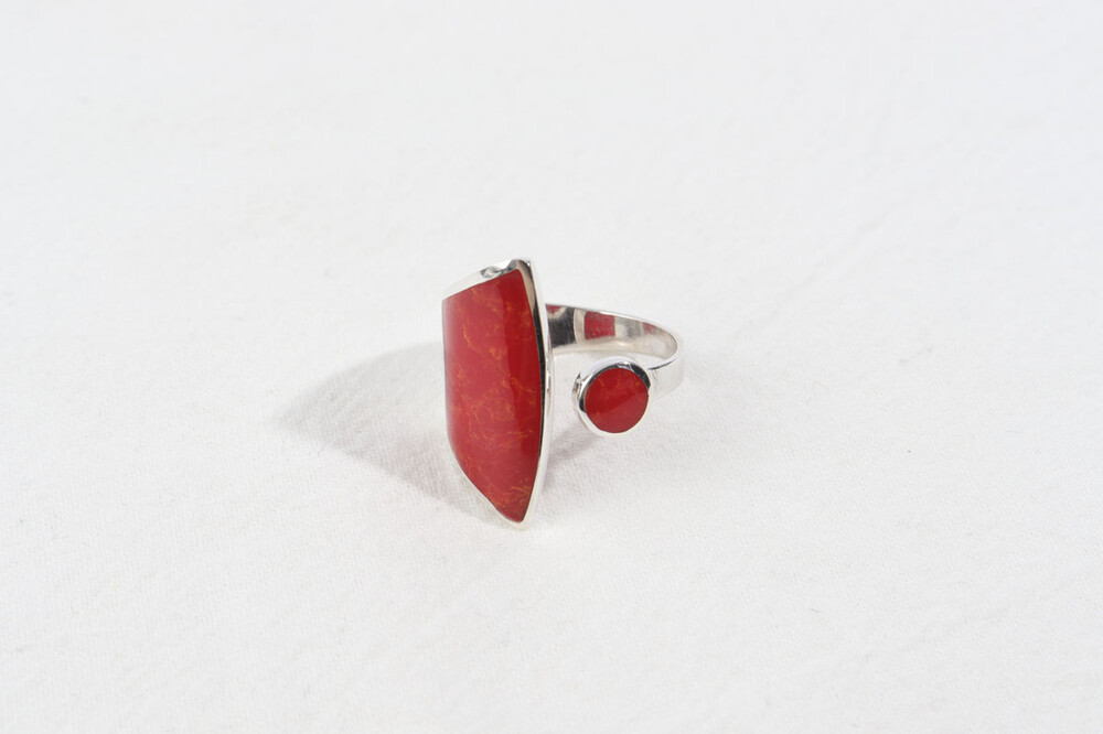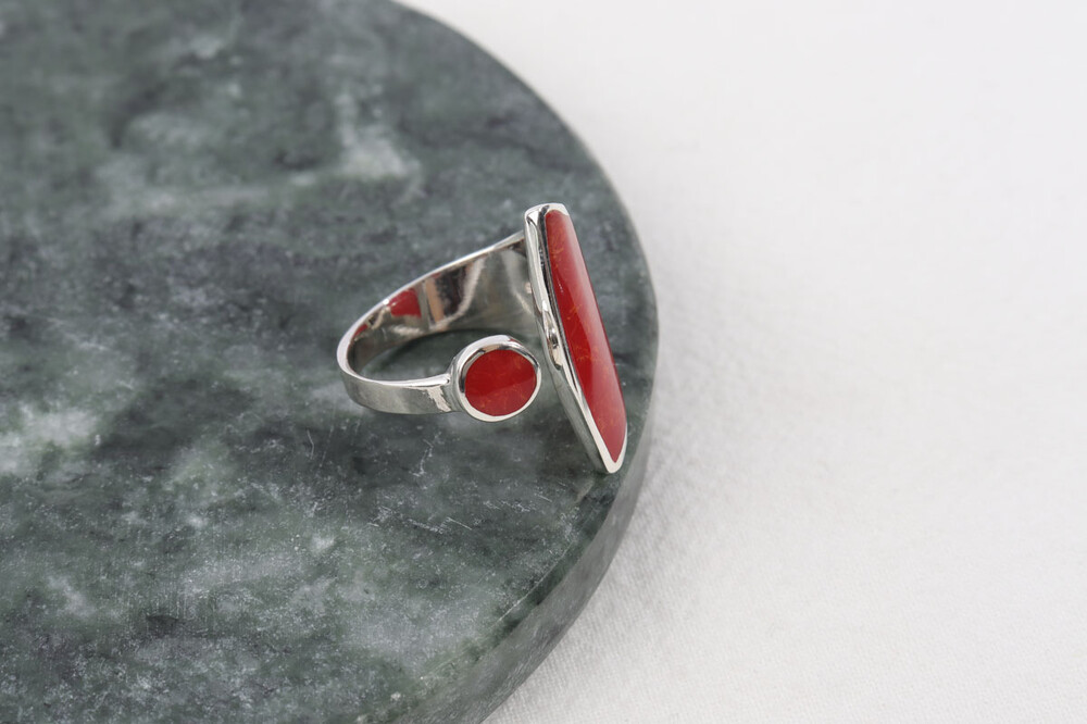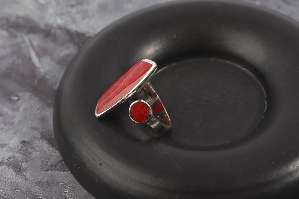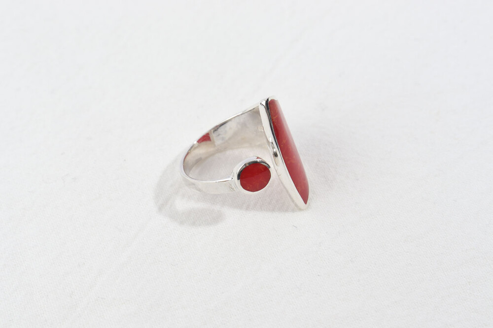 100146 Red Coral Ring Sterling Silver 925