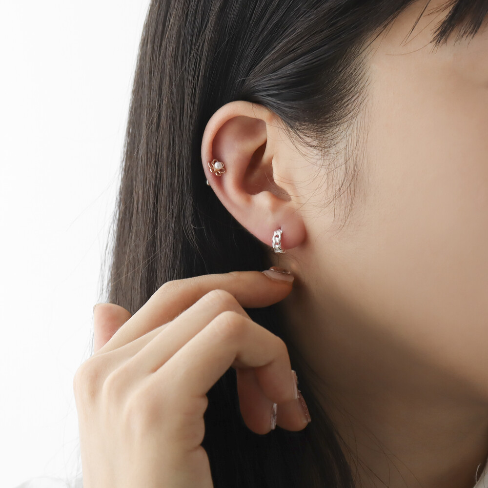 100223 Mini Round Hoop Silver Earrings 3x10 mm