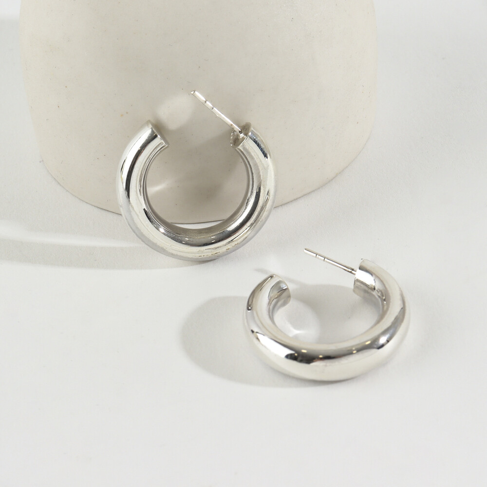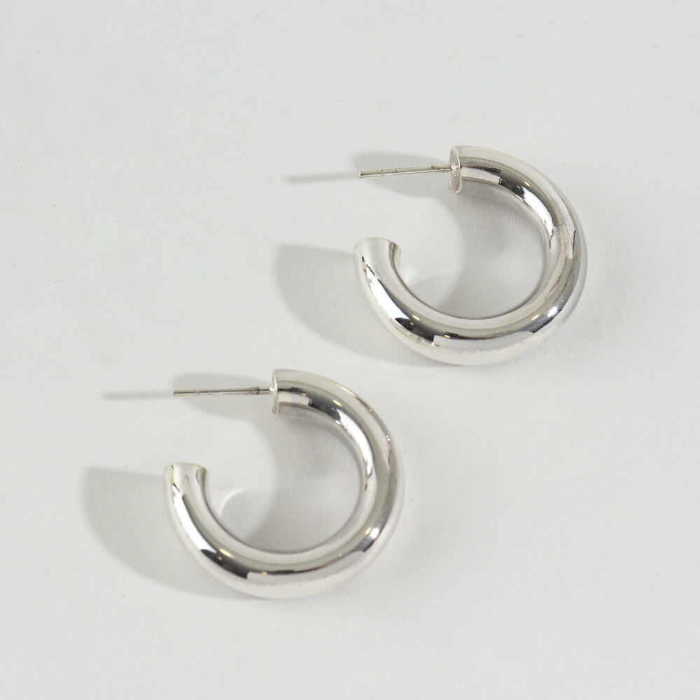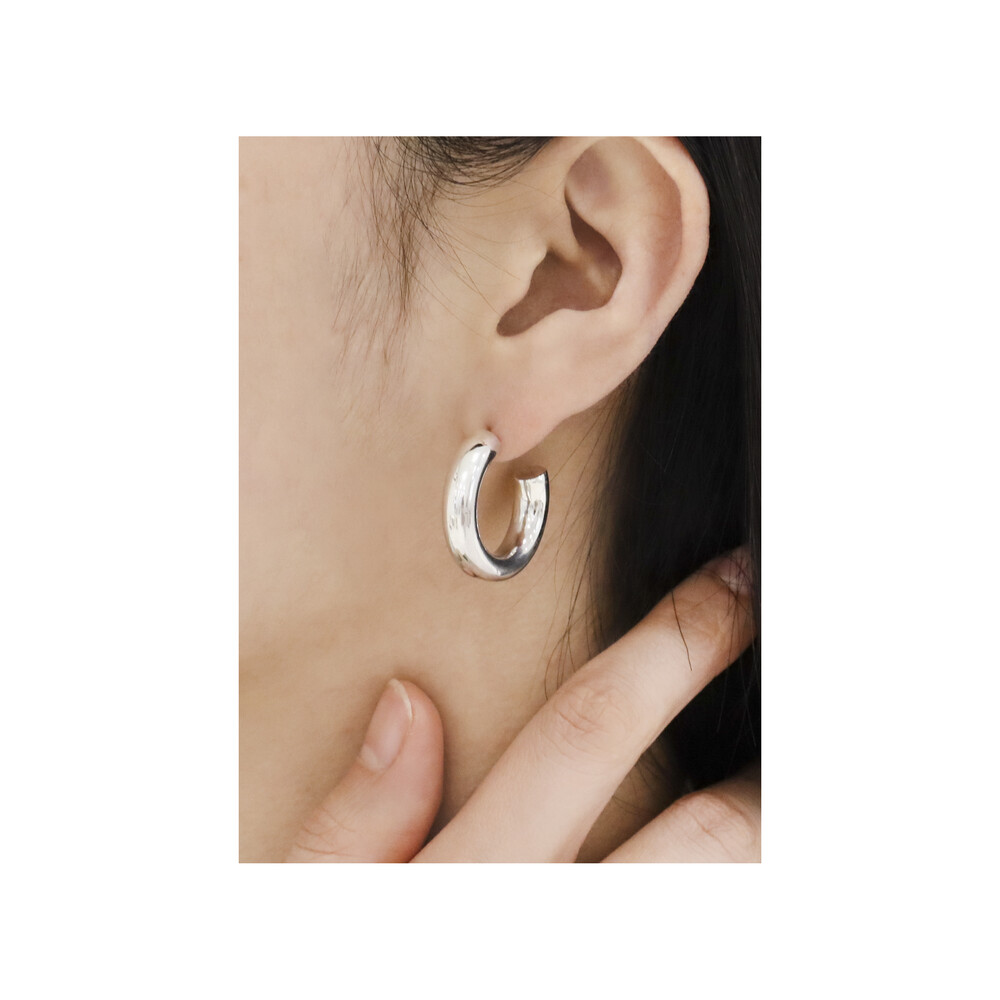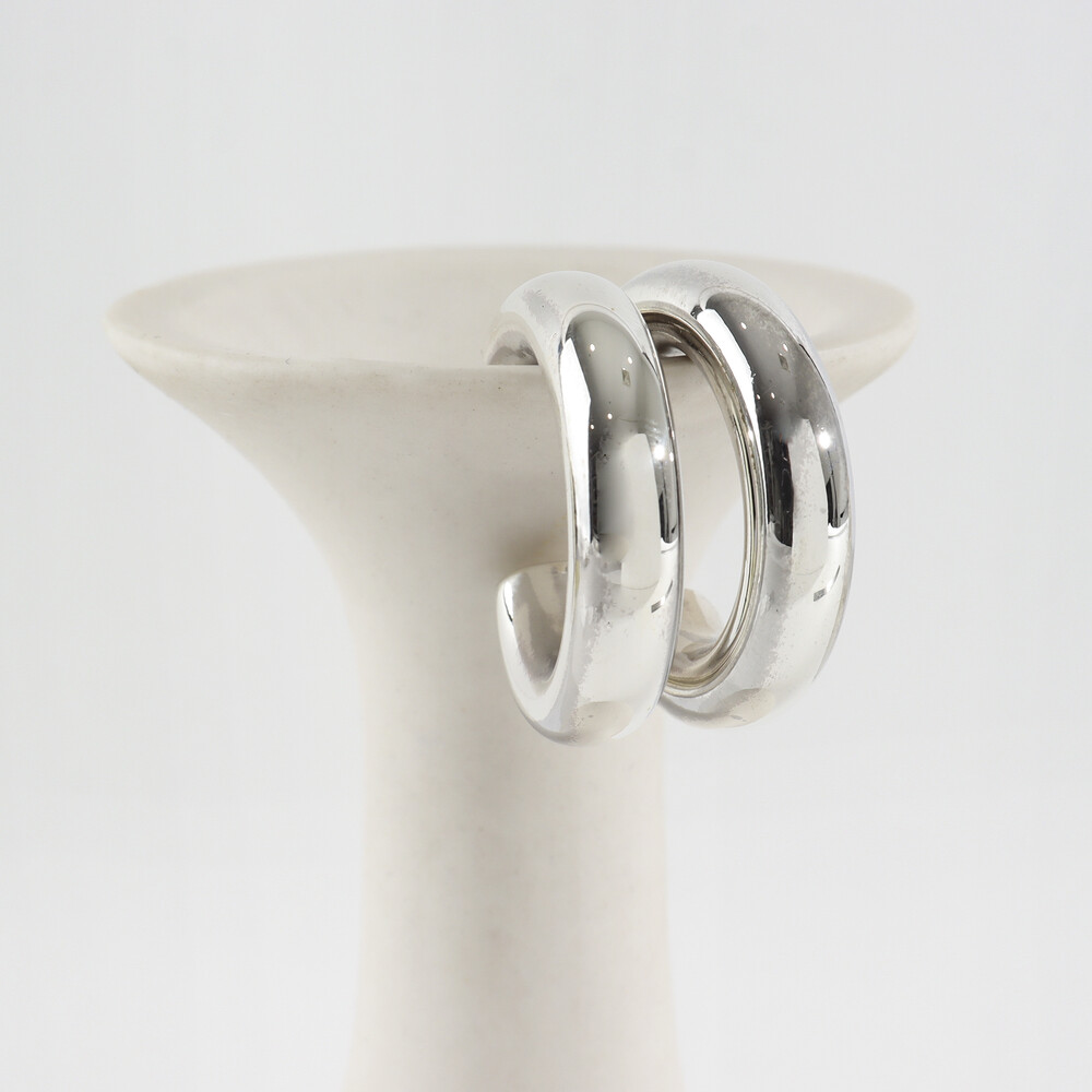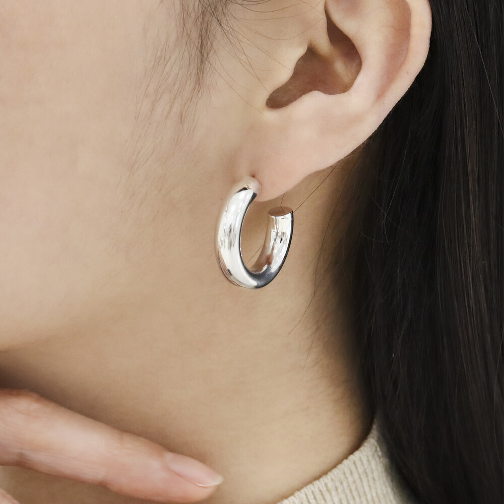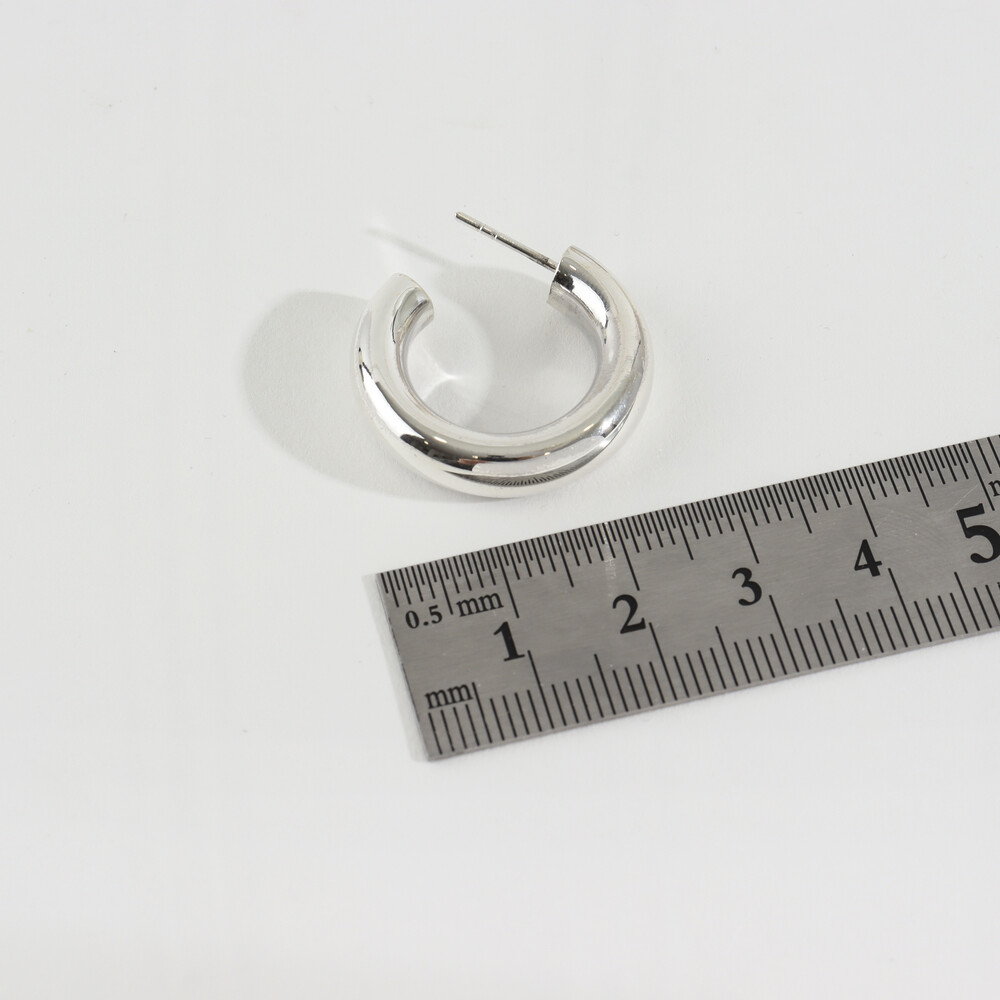 100313 Medium Bold Round C-Hoop Silver Earrings 6x20mm/6x25mm