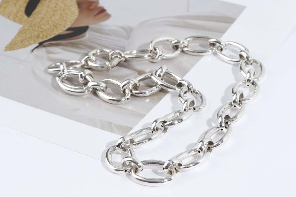 100342 52cm Long Hollow Chain Necklace Sterling Silver 925