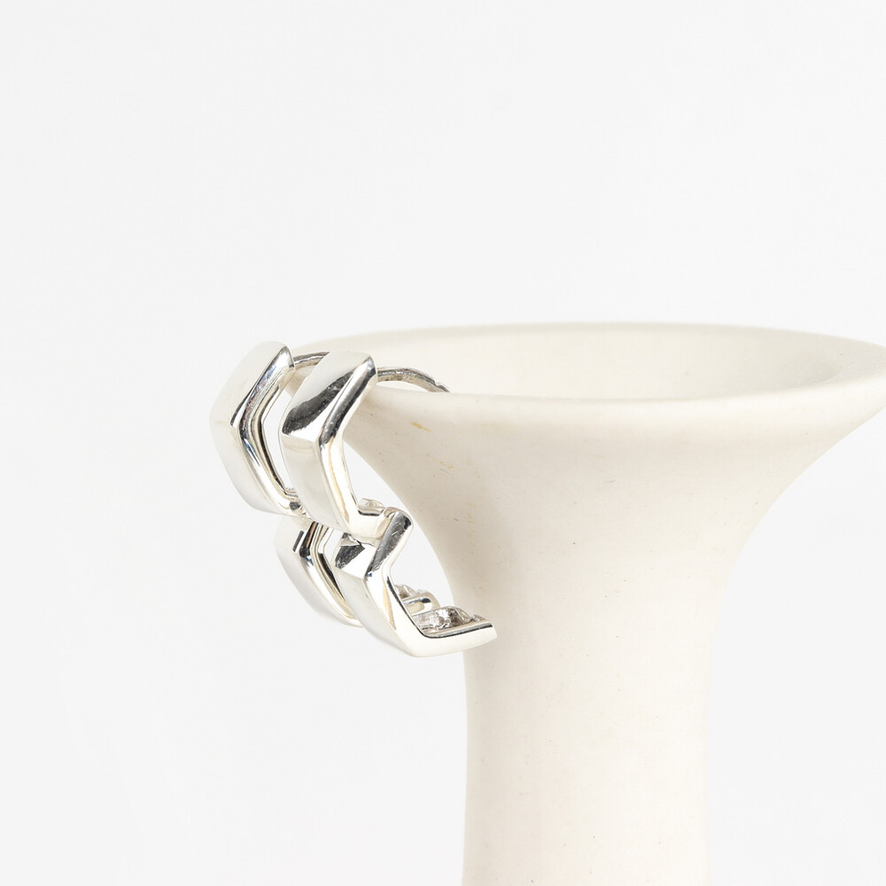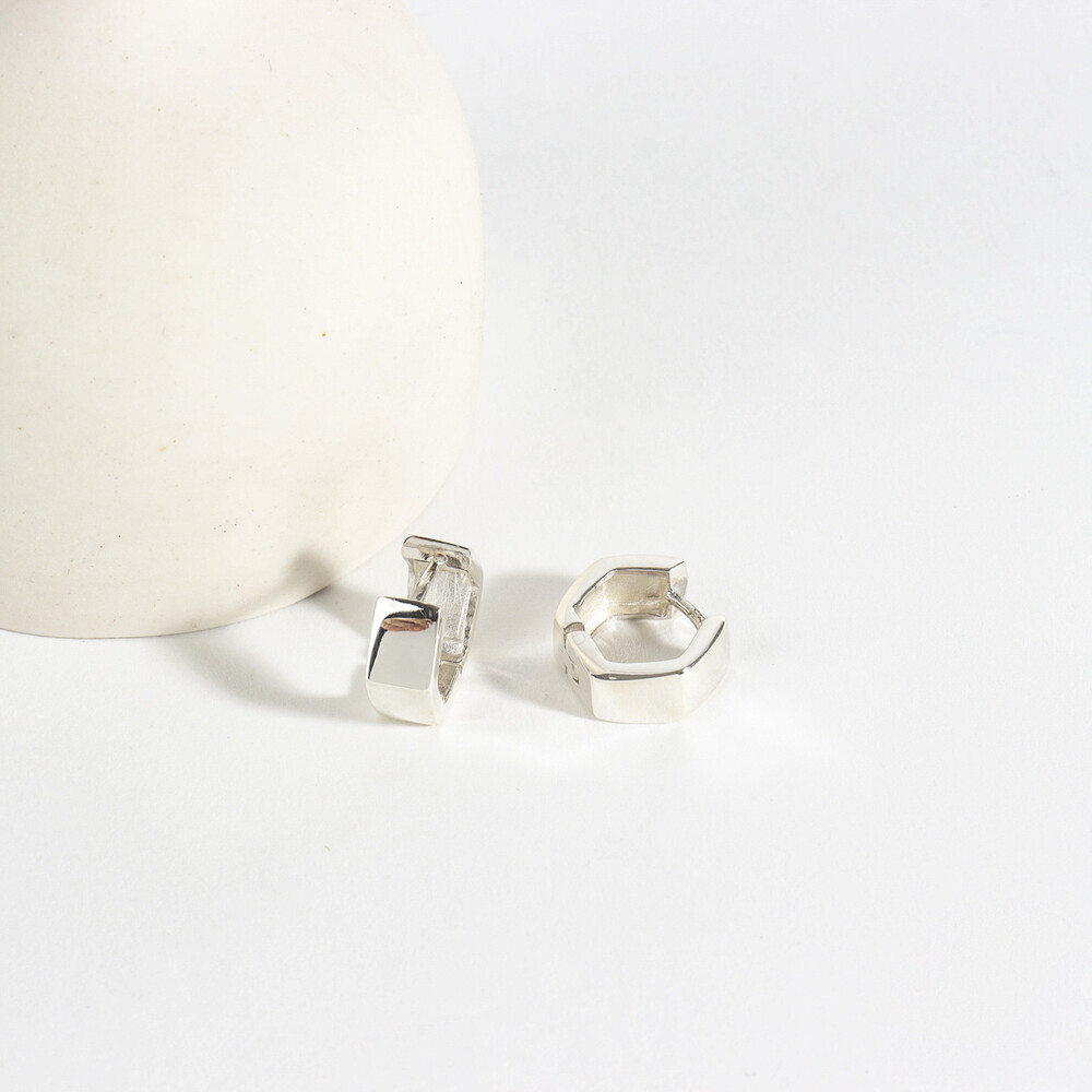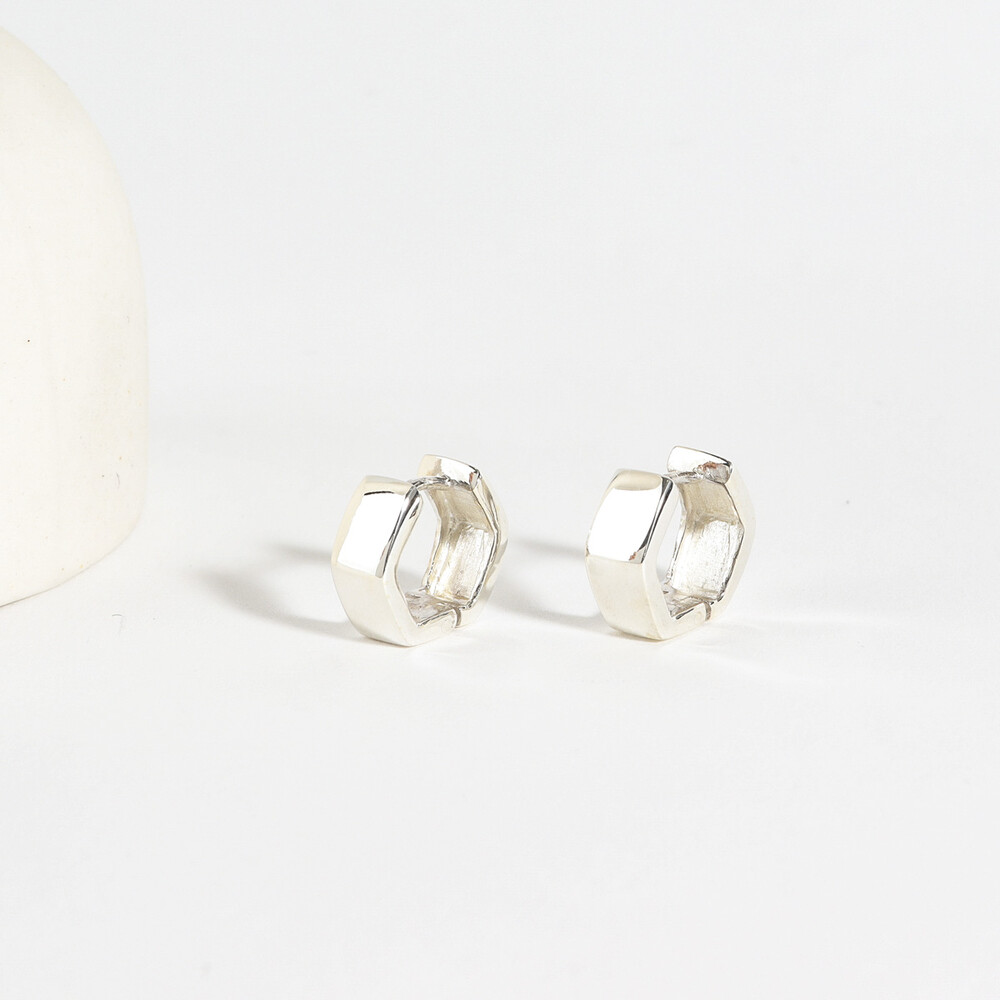 100347 Silver 925 Simple Hexagon Small Hoop Earrings