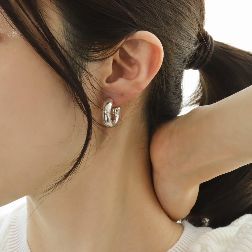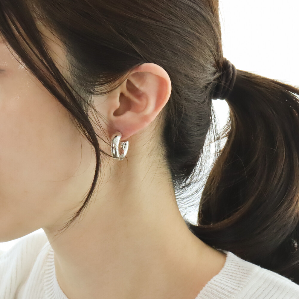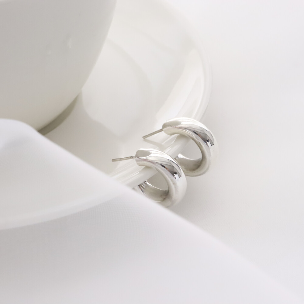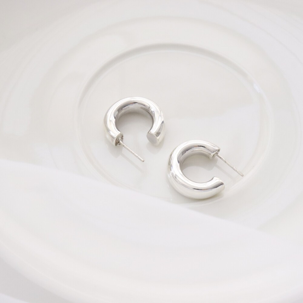 100498 Bold Round C-Hoop Silver Earrings 6x20
