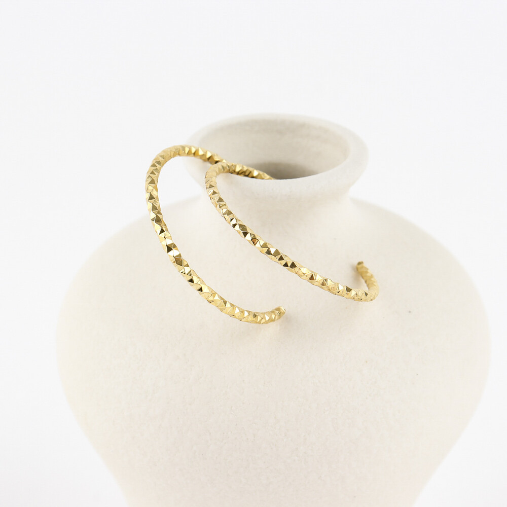 Deconstructed Hoops Structurally modified hoop styles away from simple circles. A design with a three-dimensional change in color texture.