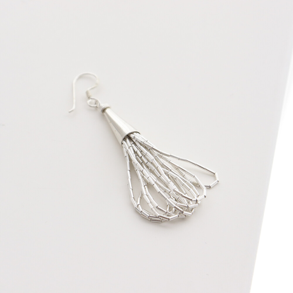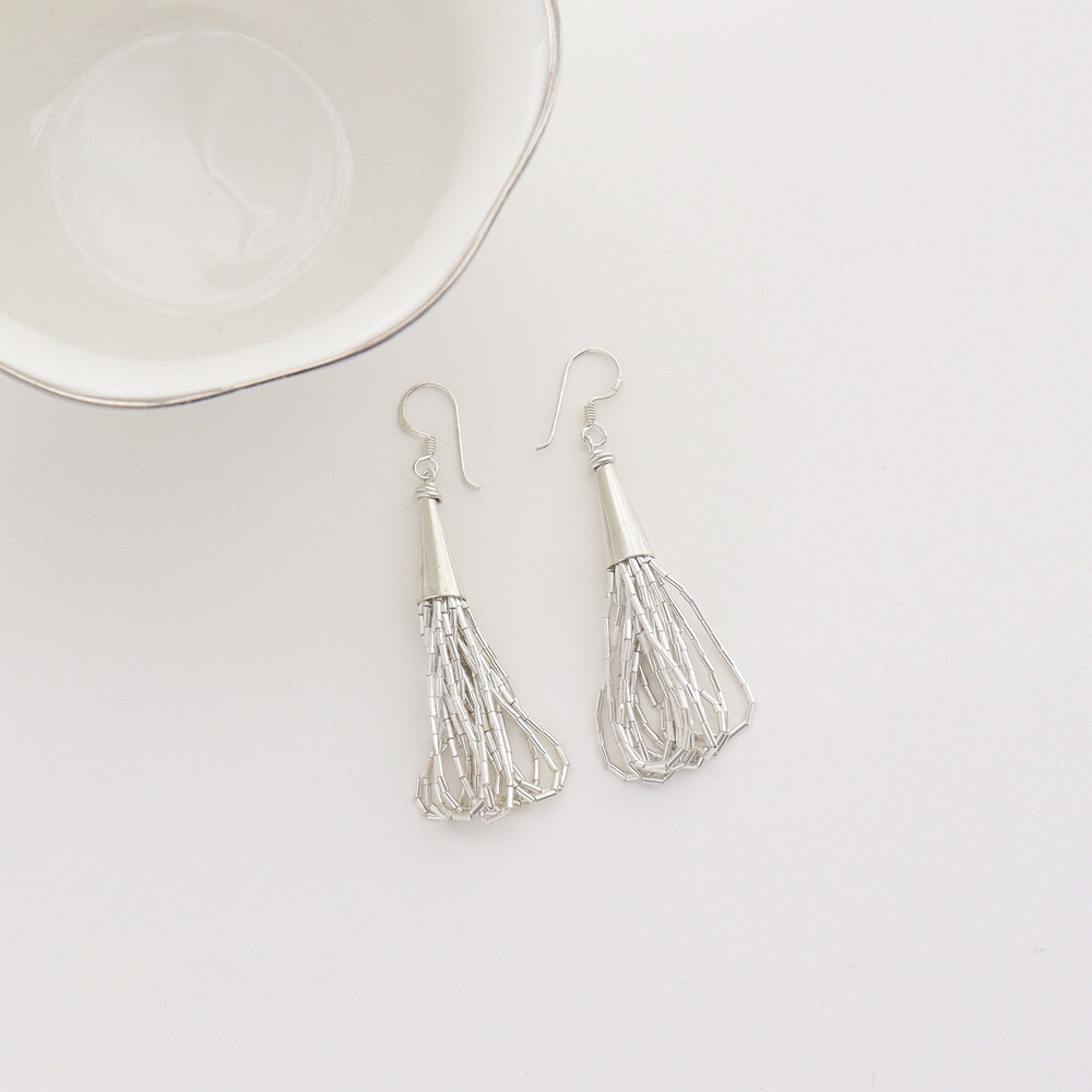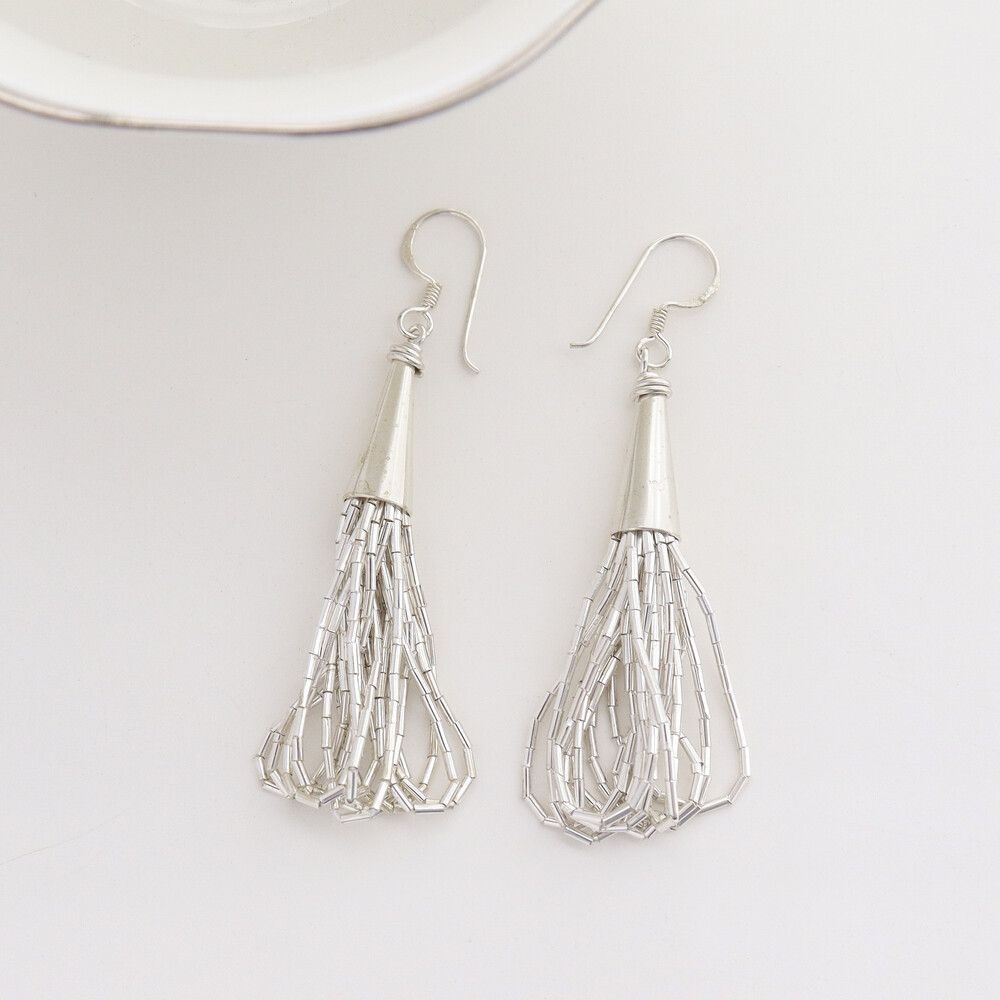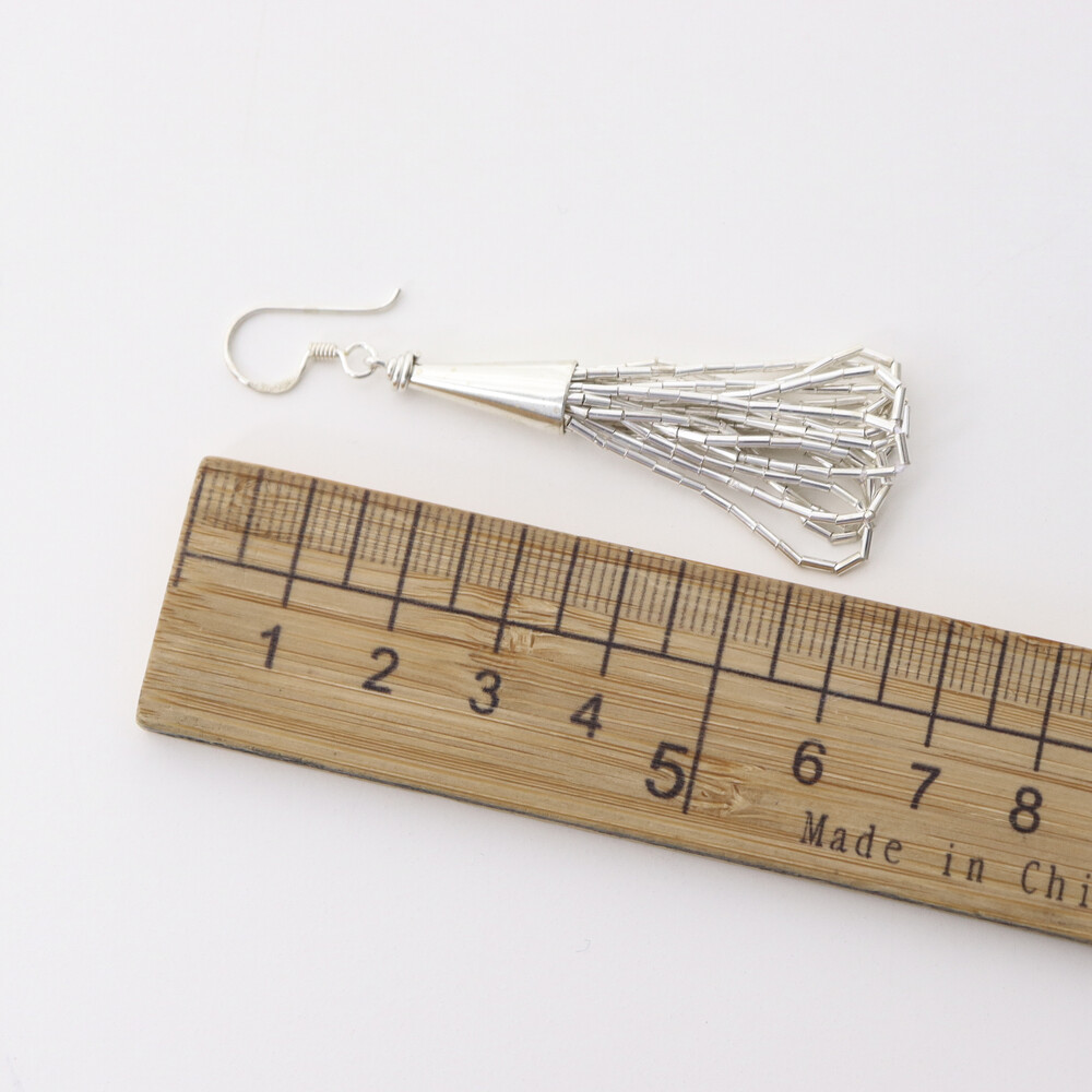 100636 Tassel Drop Silver Earrings 65 mm