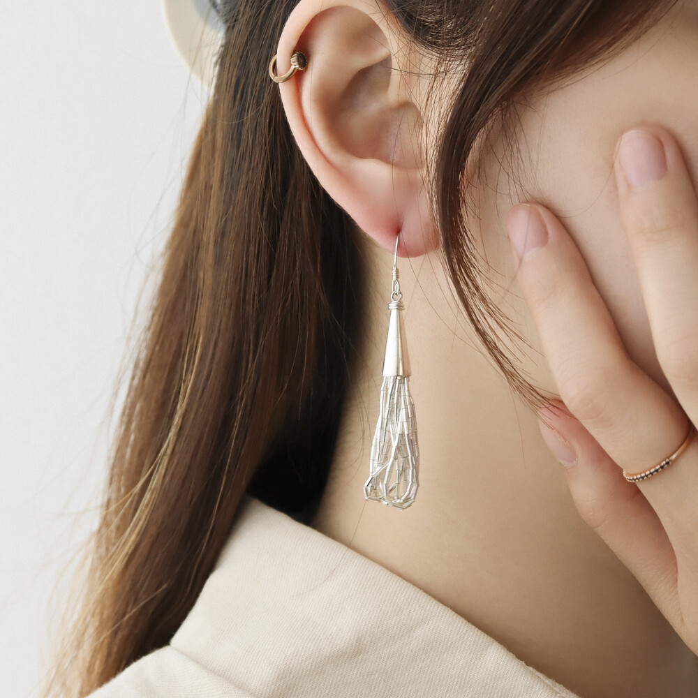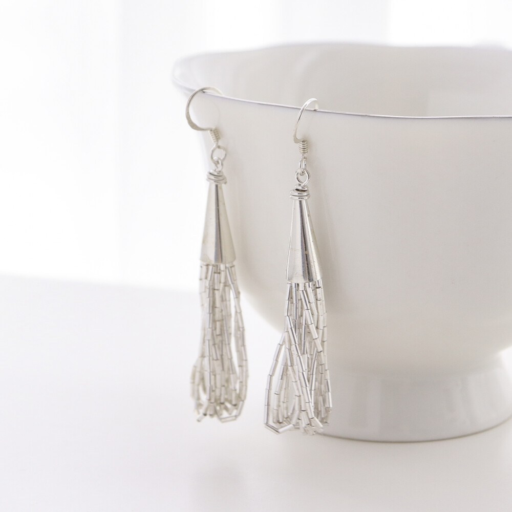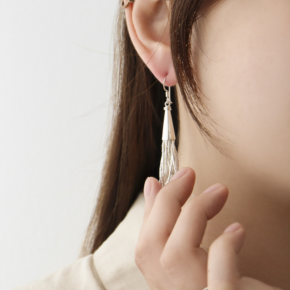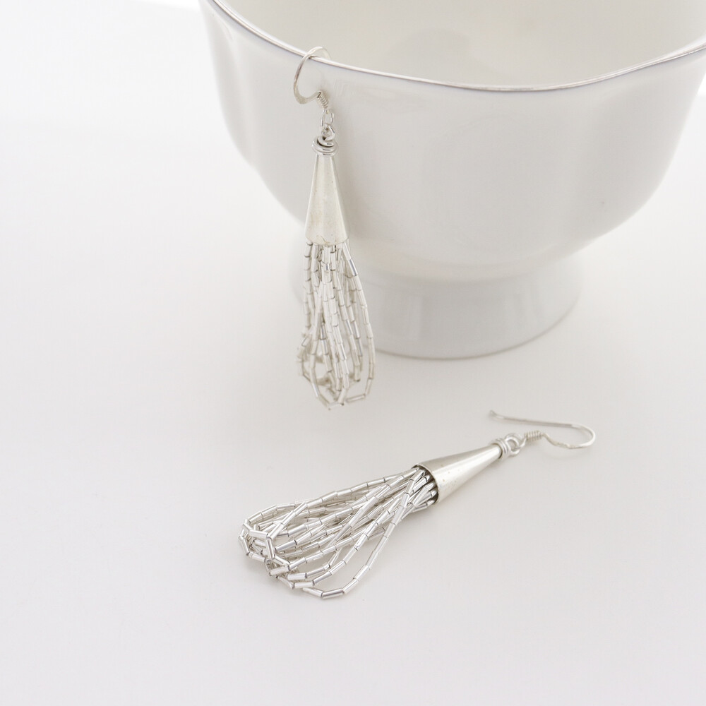 100636 Tassel Drop Silver Earrings 65 mm
