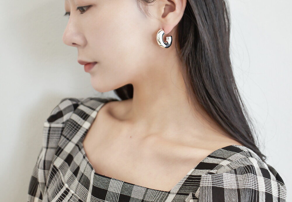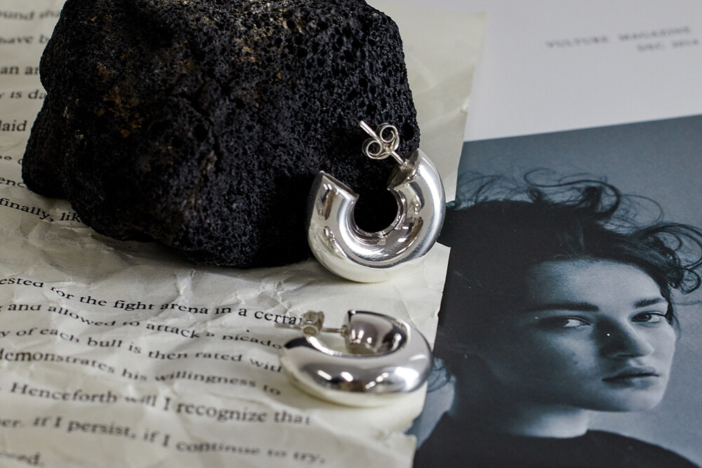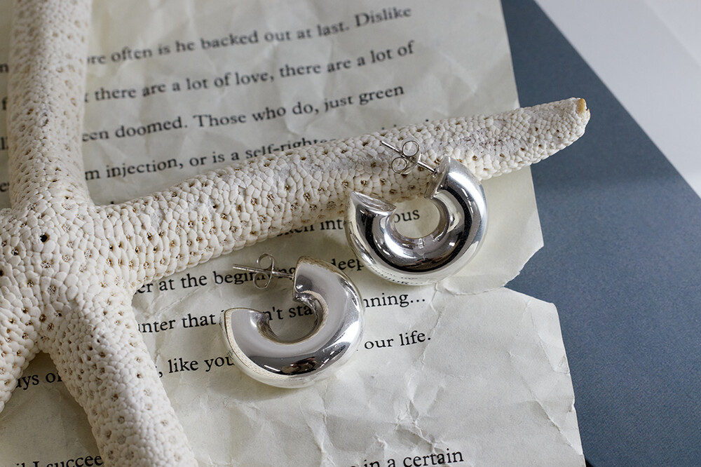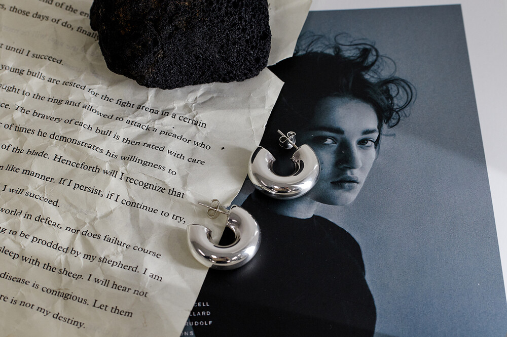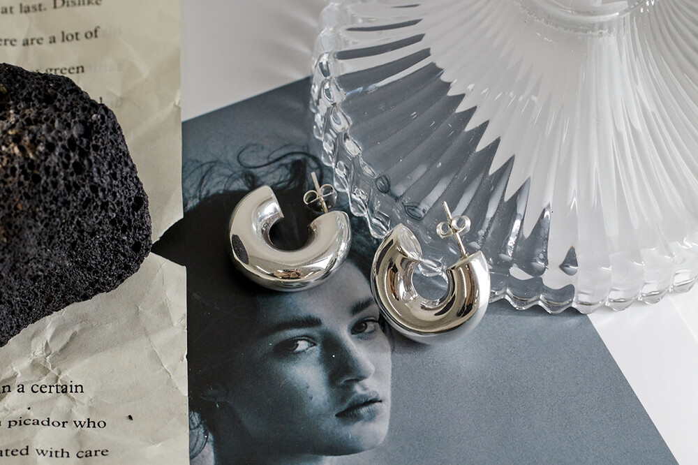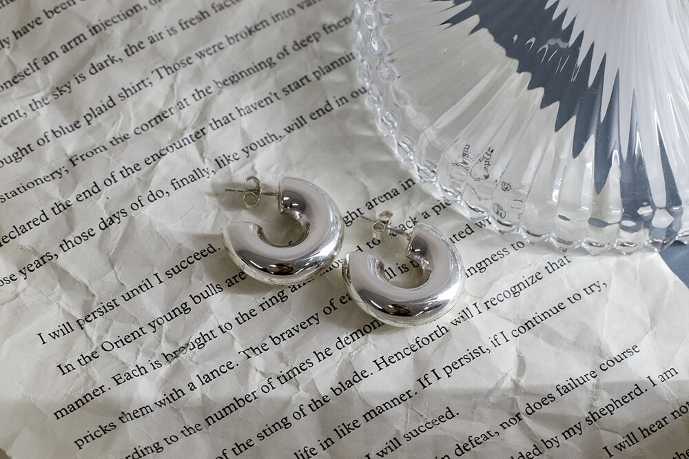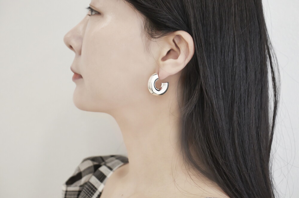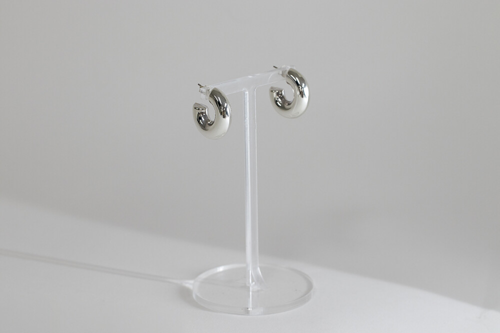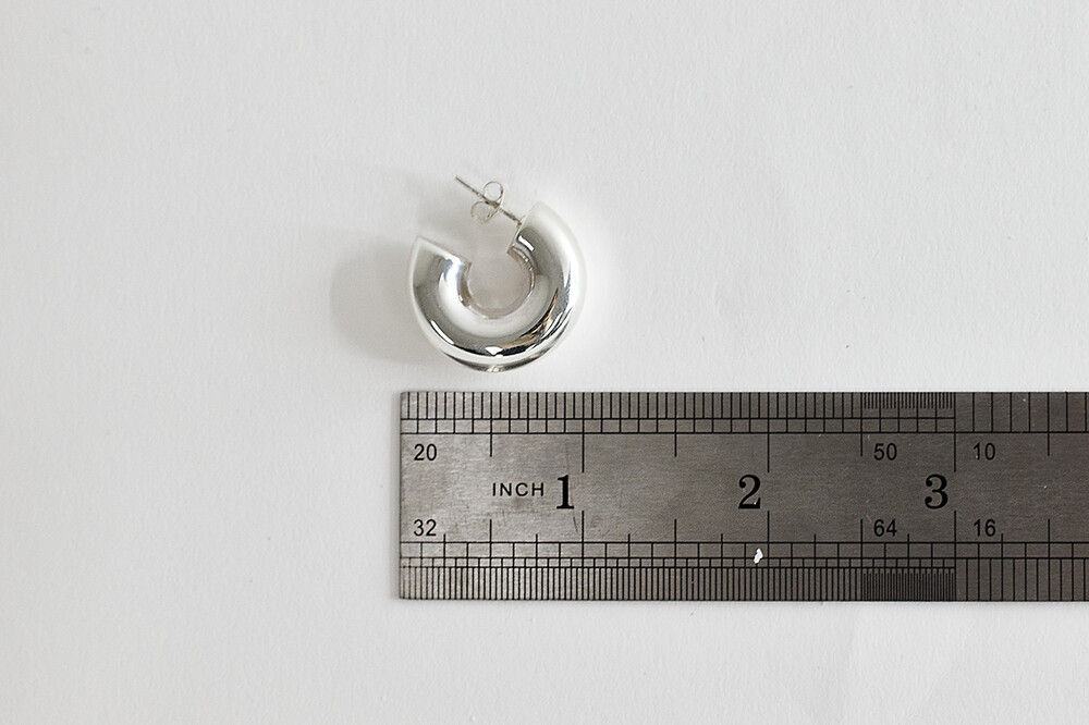 100688 Medium Chunky C-Hoop Silver Earrings 8x25 mm