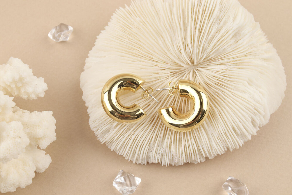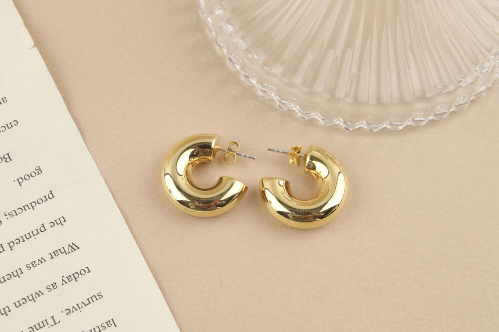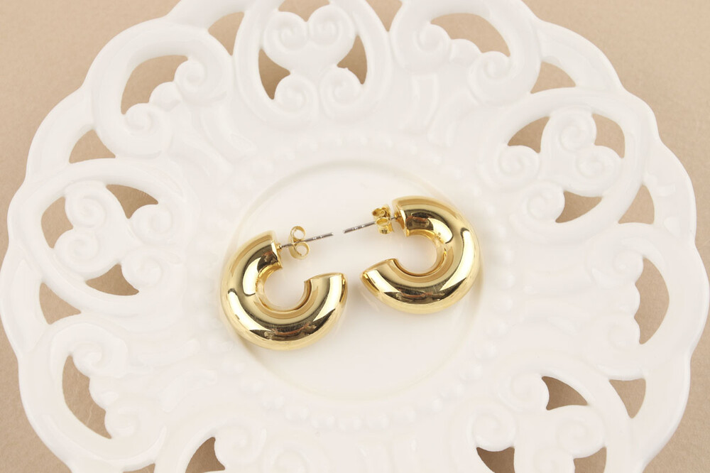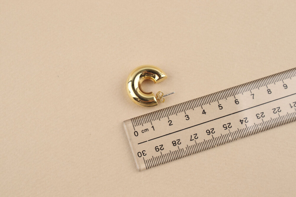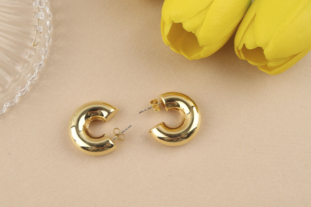100688 Medium Chunky C-Hoop Gold-Plated Silver Earrings 8x25 mm