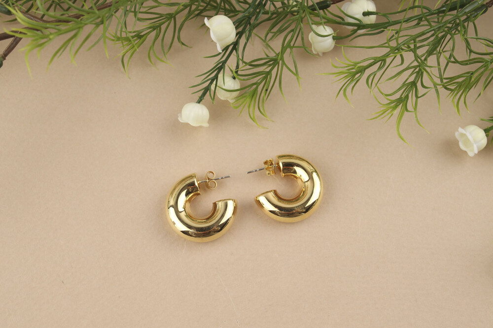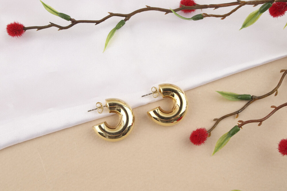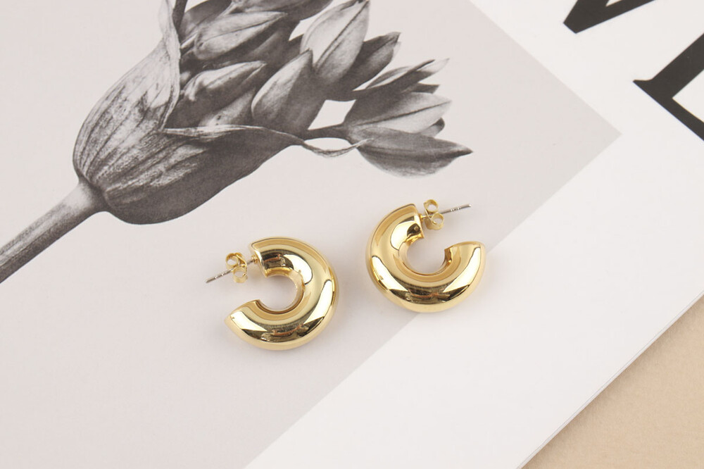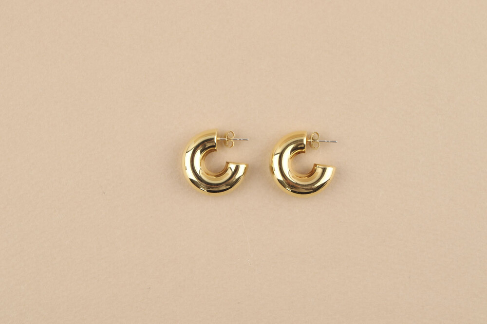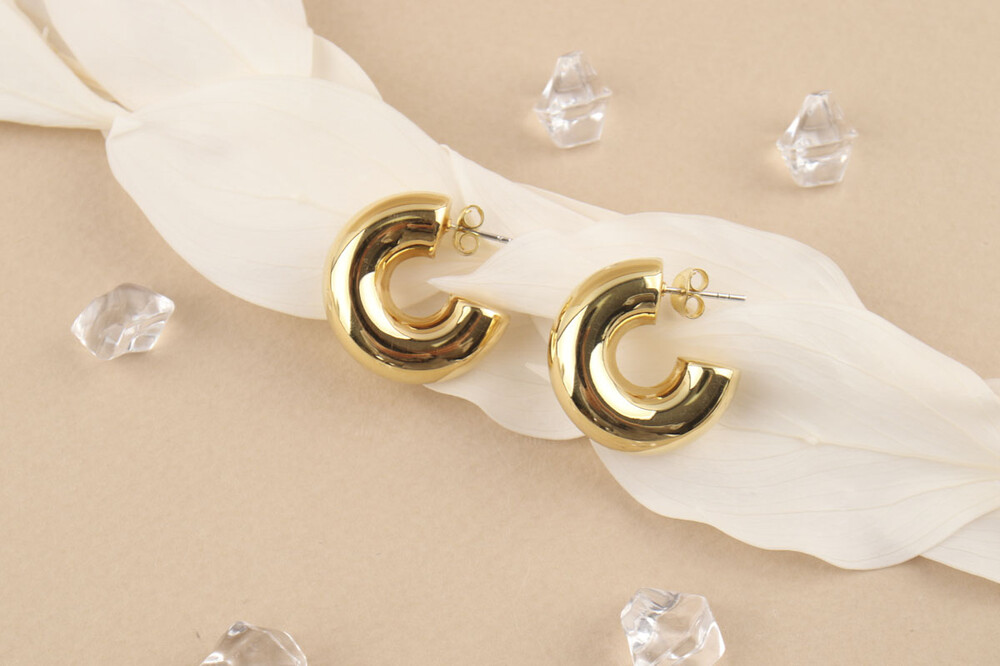 100688 Medium Chunky C-Hoop Gold-Plated Silver Earrings 8x25 mm
