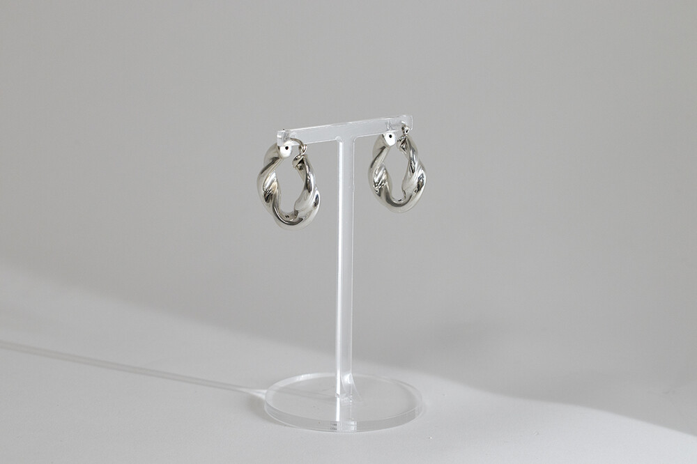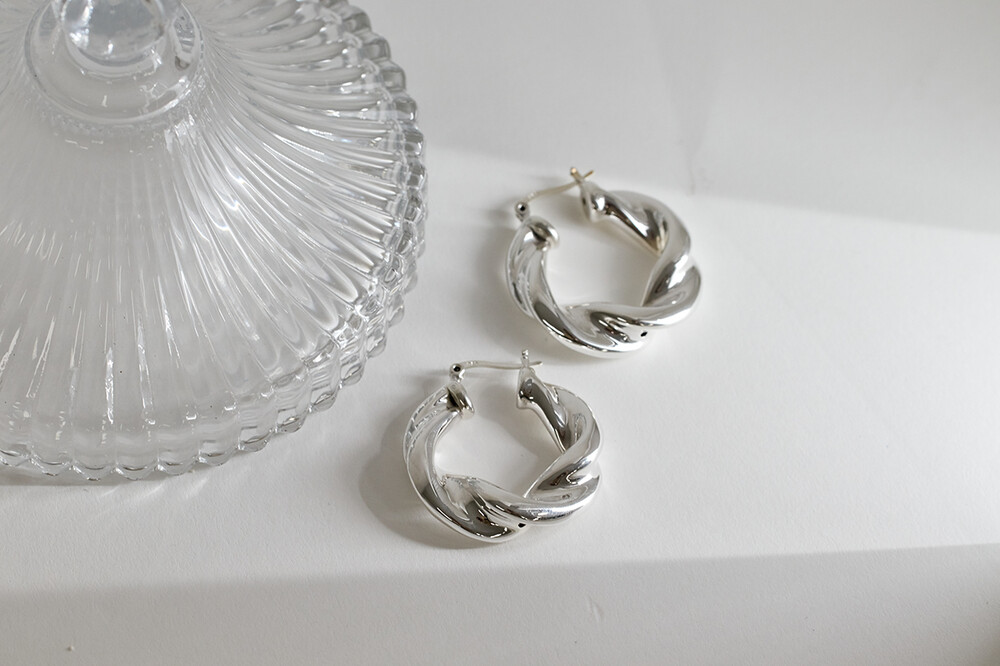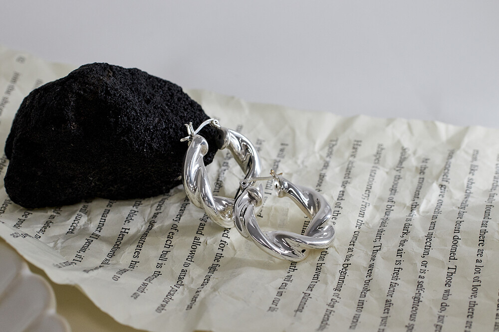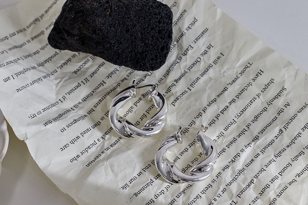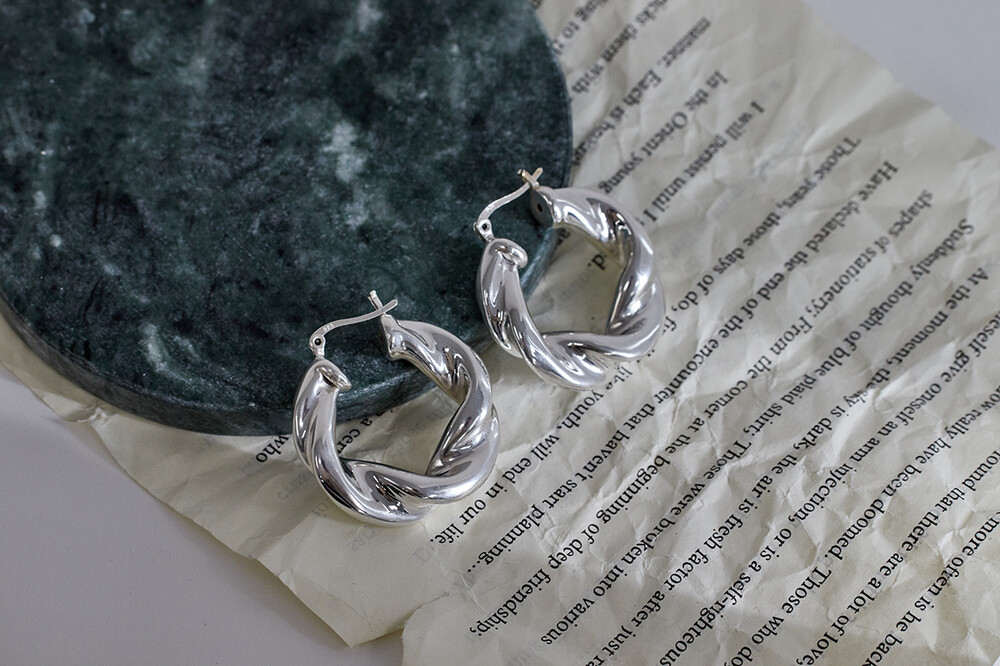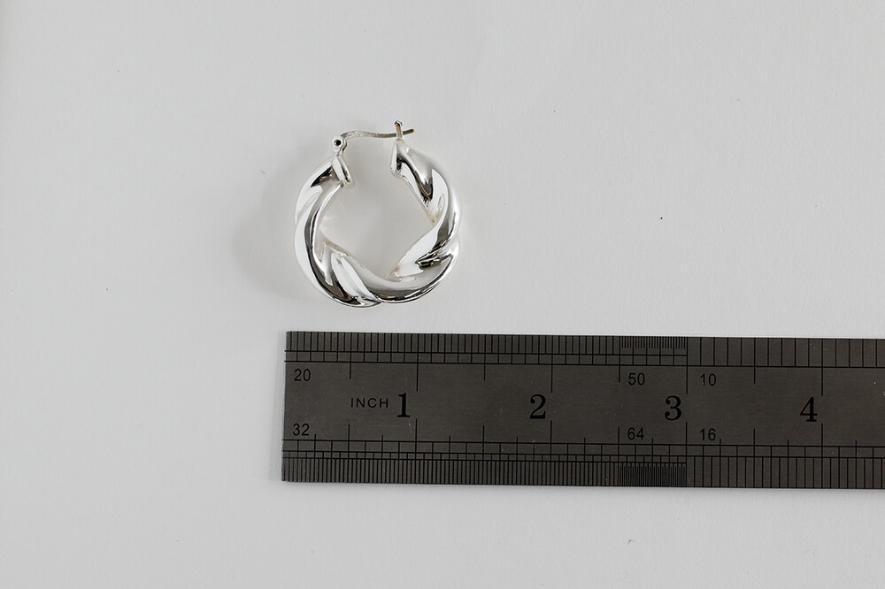 100691 Wave Round Hoop Earrings Sterling Silver 925 Hollow Light Weight