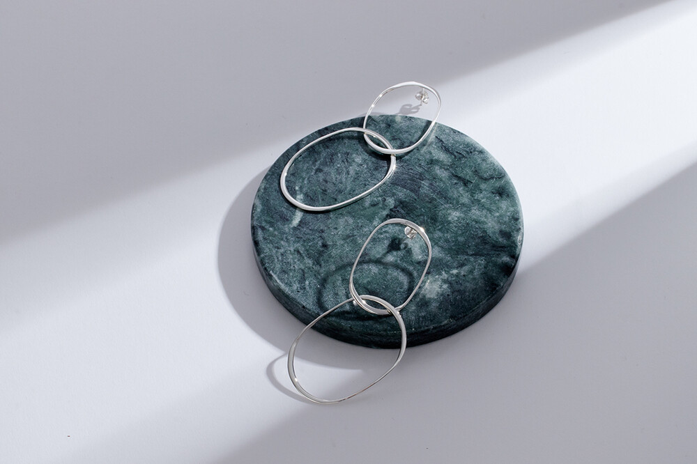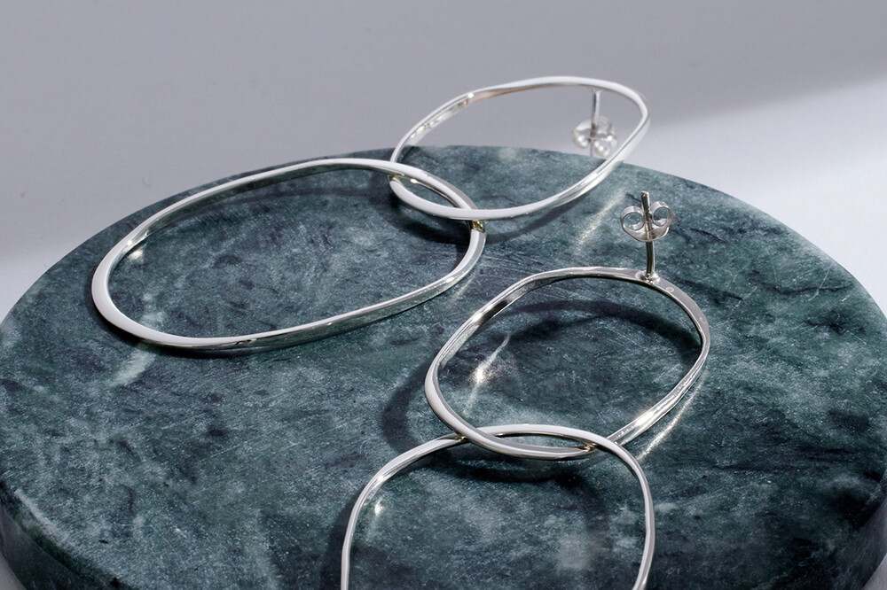 Deconstructed Hoops Structurally modified hoop styles away from simple circles. A design with a three-dimensional change in color texture.