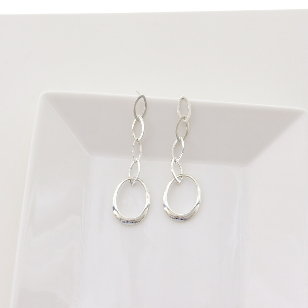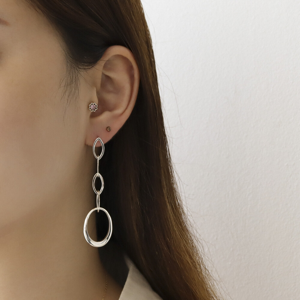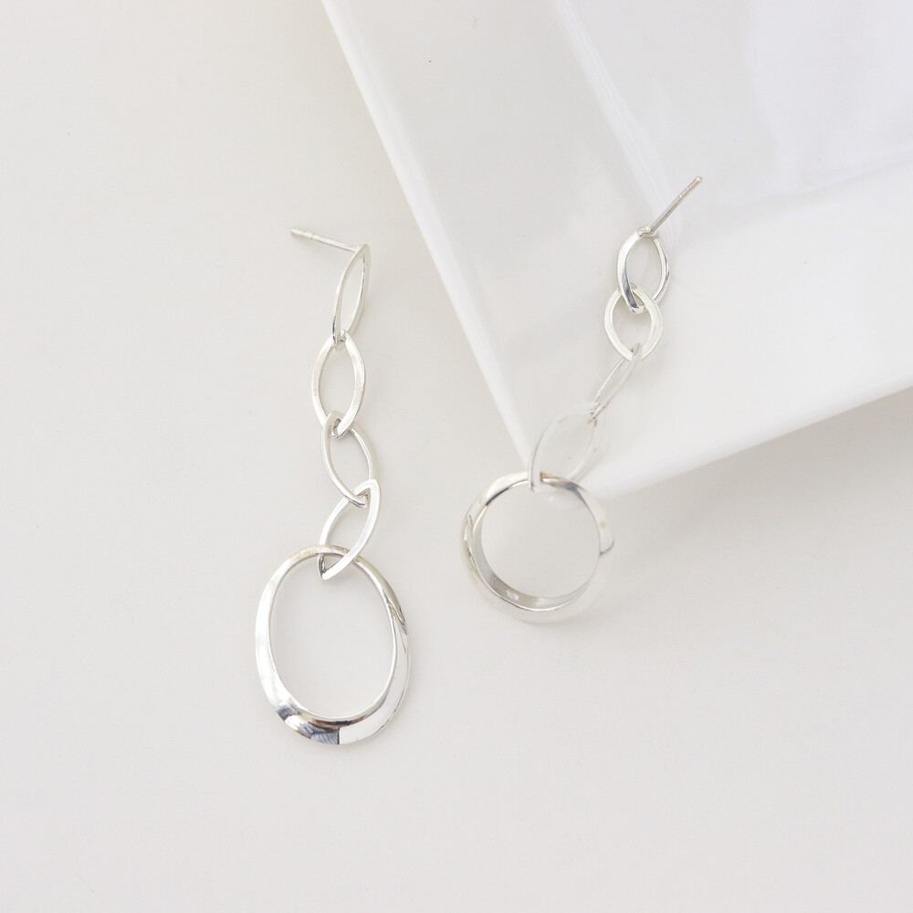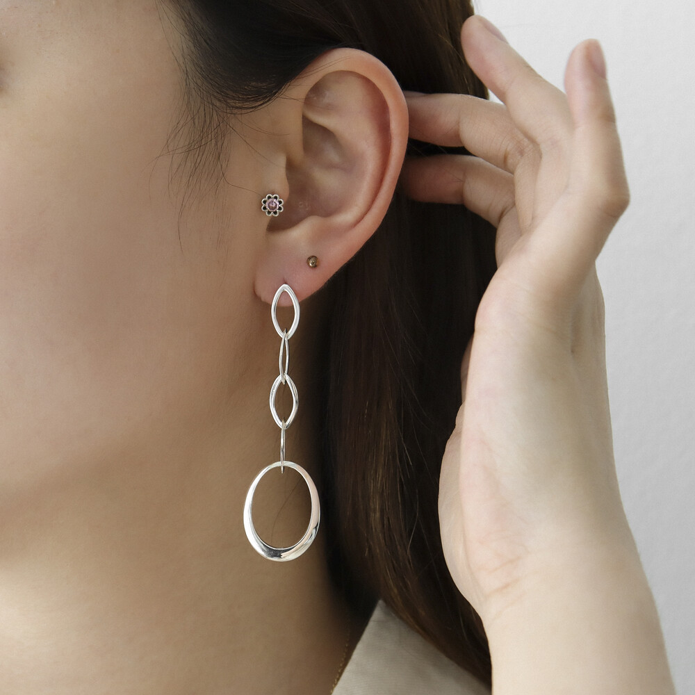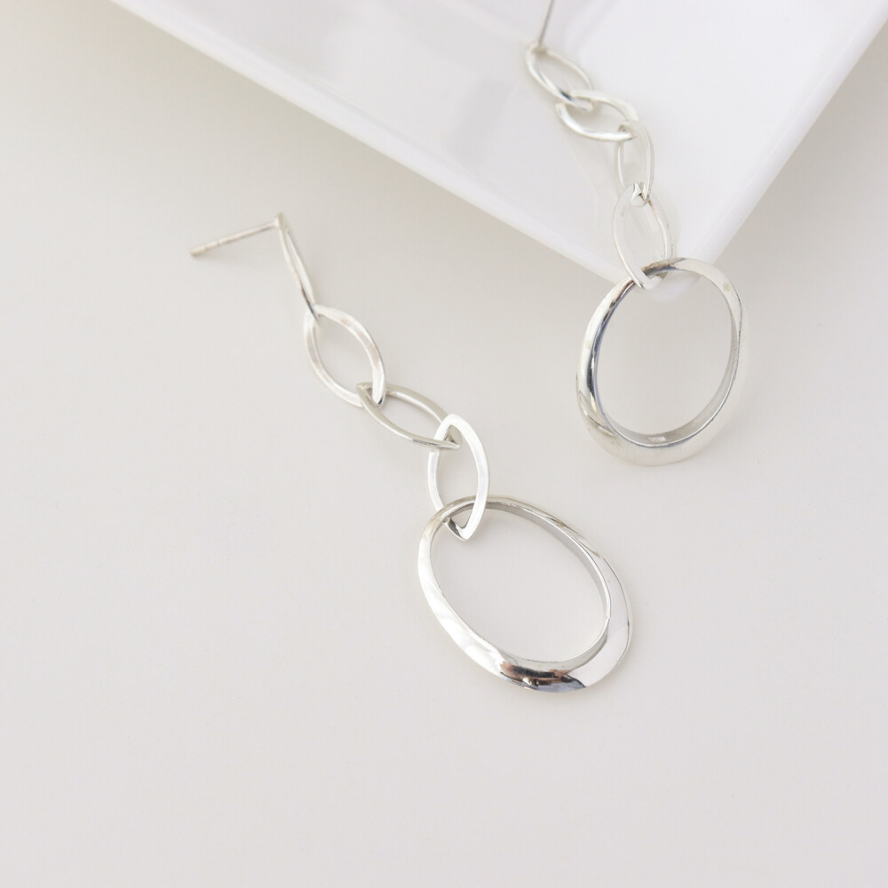 100712 Long Drop & Dangling Silver Earrings 70 mm