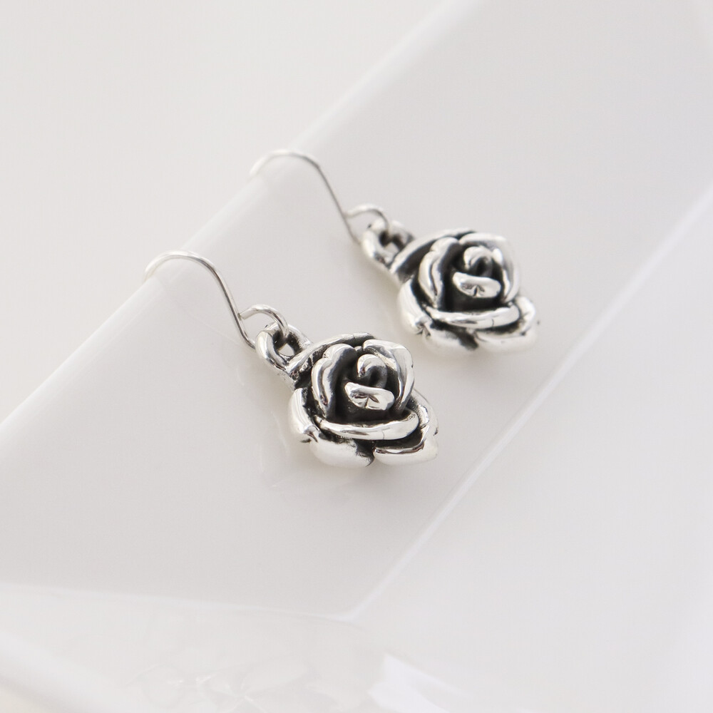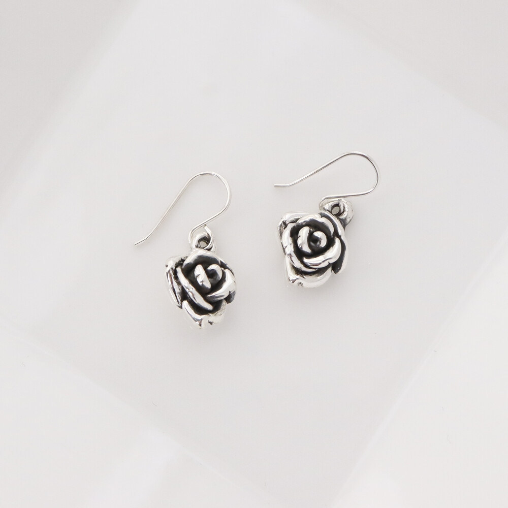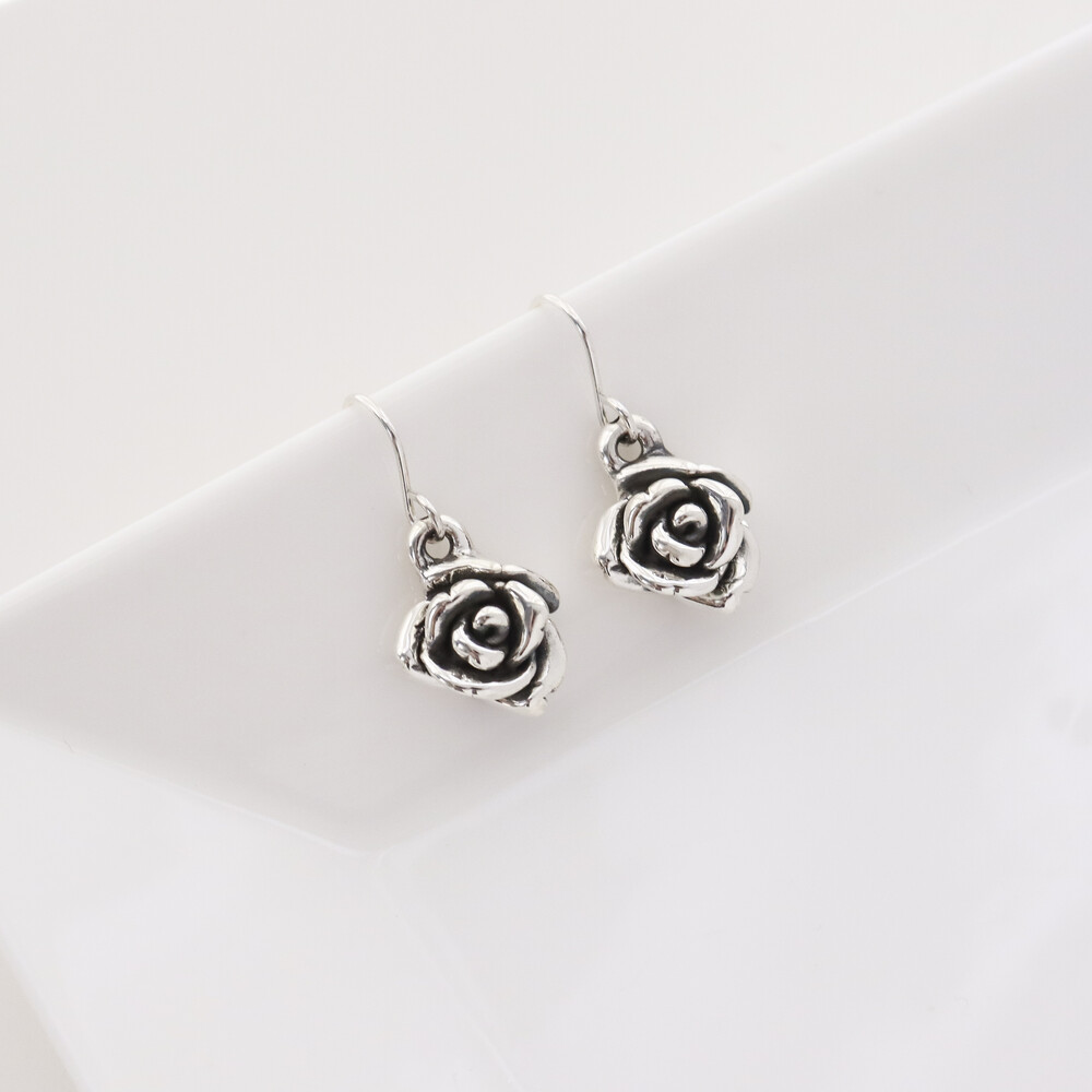 100752 Rose Small Drop & Dangle Silver Earrings 15x30 mm