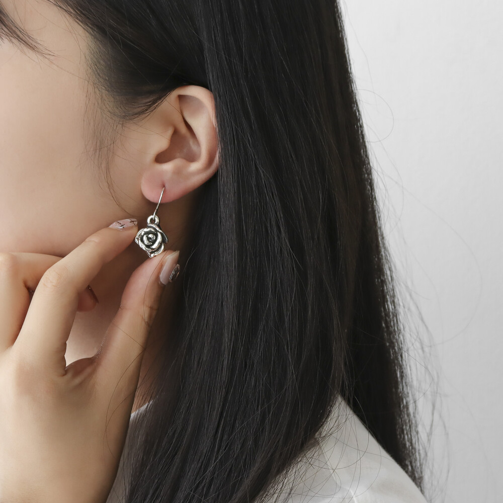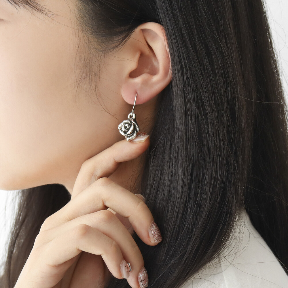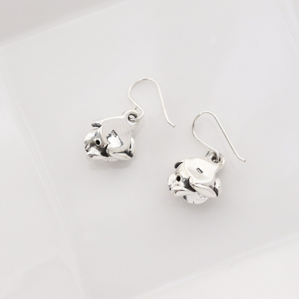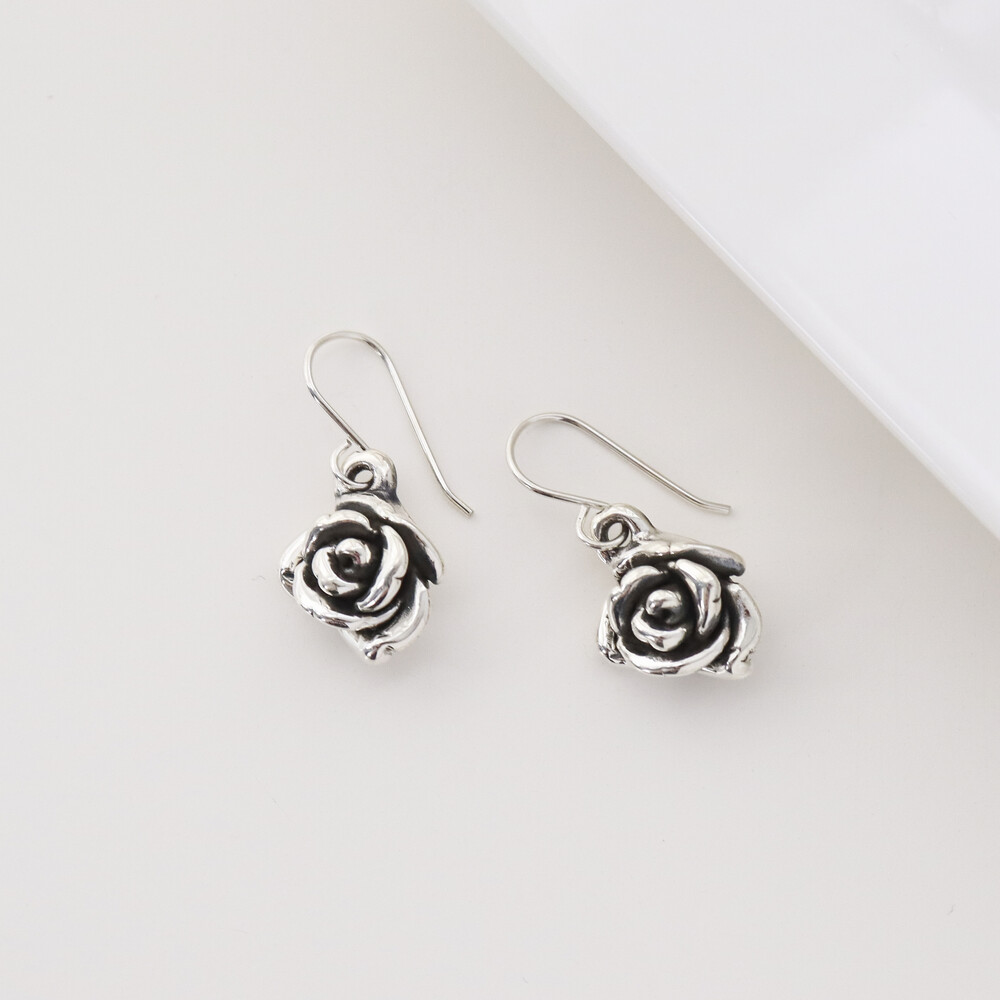 100752 Rose Small Drop & Dangle Silver Earrings 15x30 mm