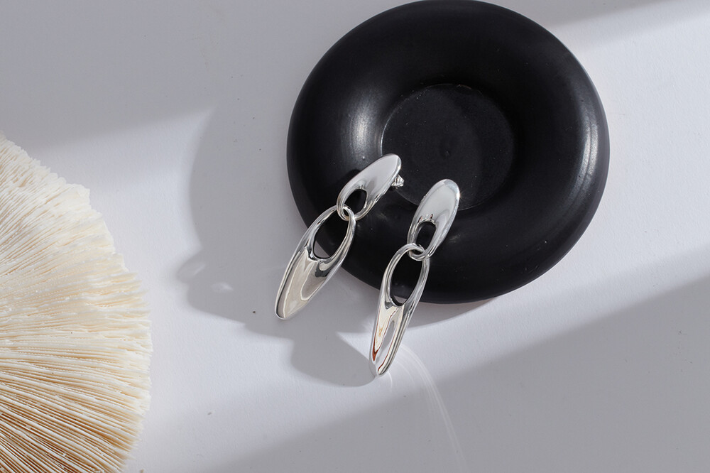 100833 Long Drop Silver Earrings Light Weight