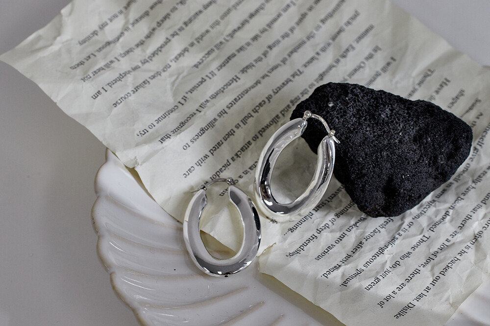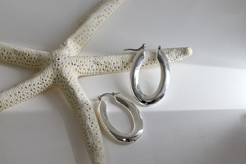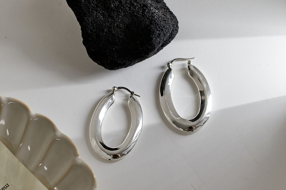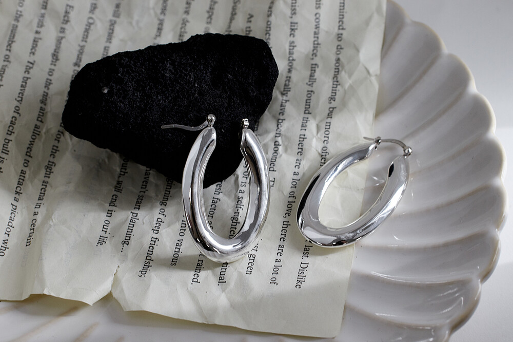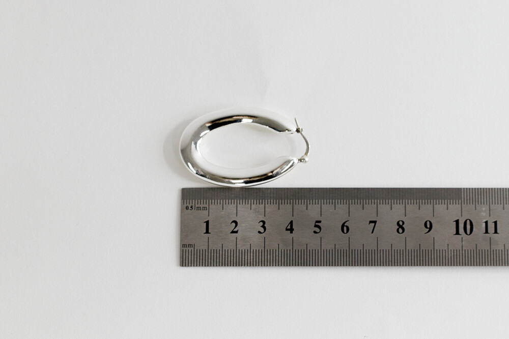 100850 Oval Hoop Thai Silver Earrings Sterling Silver 925 Light Weight