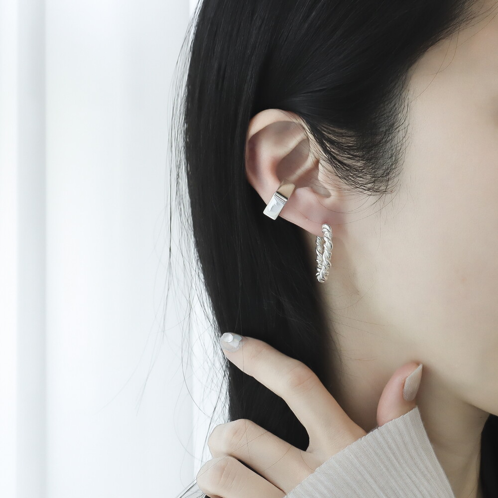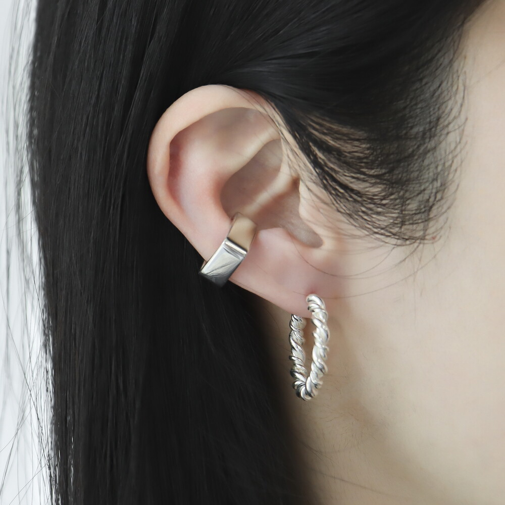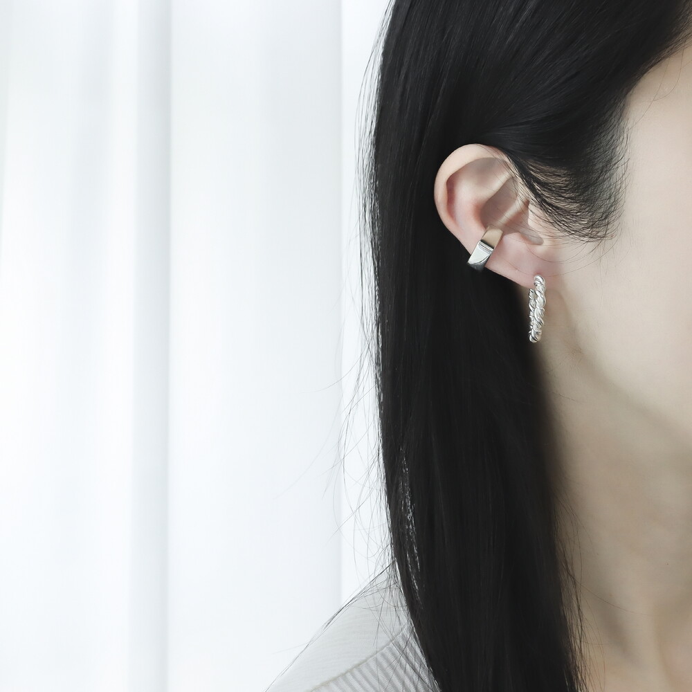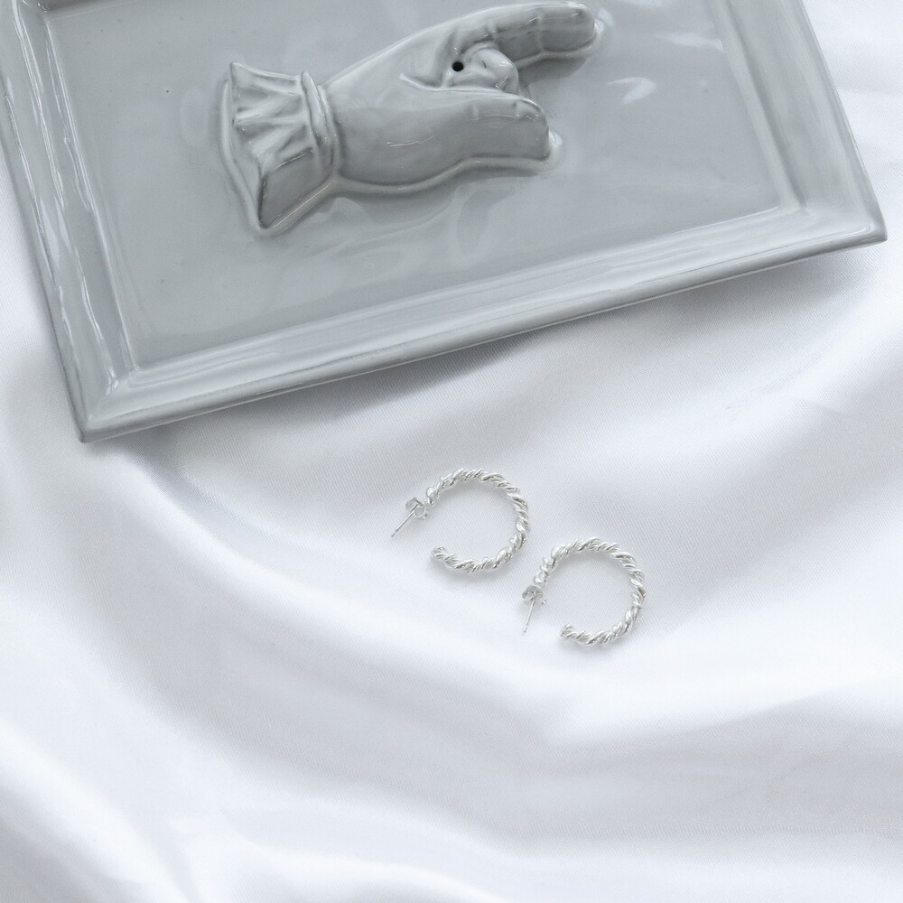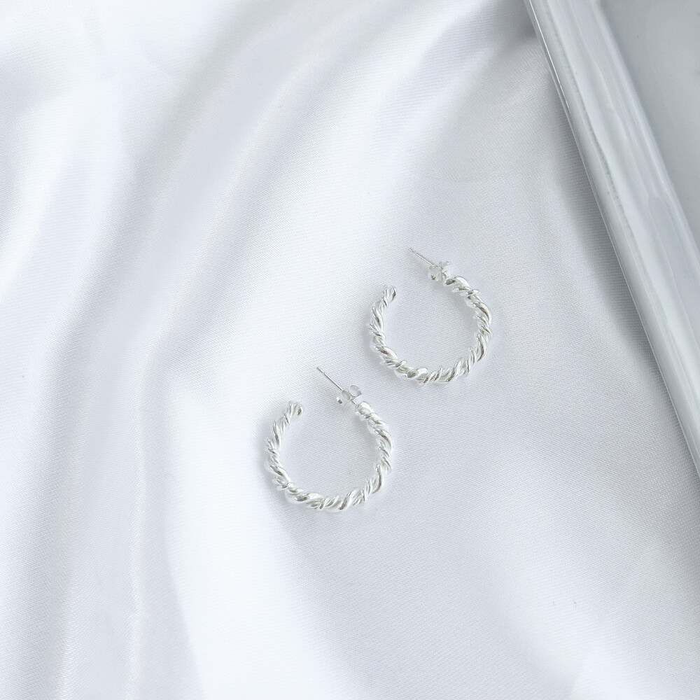 100883 Twisted C-Hoop Silver Earrings
