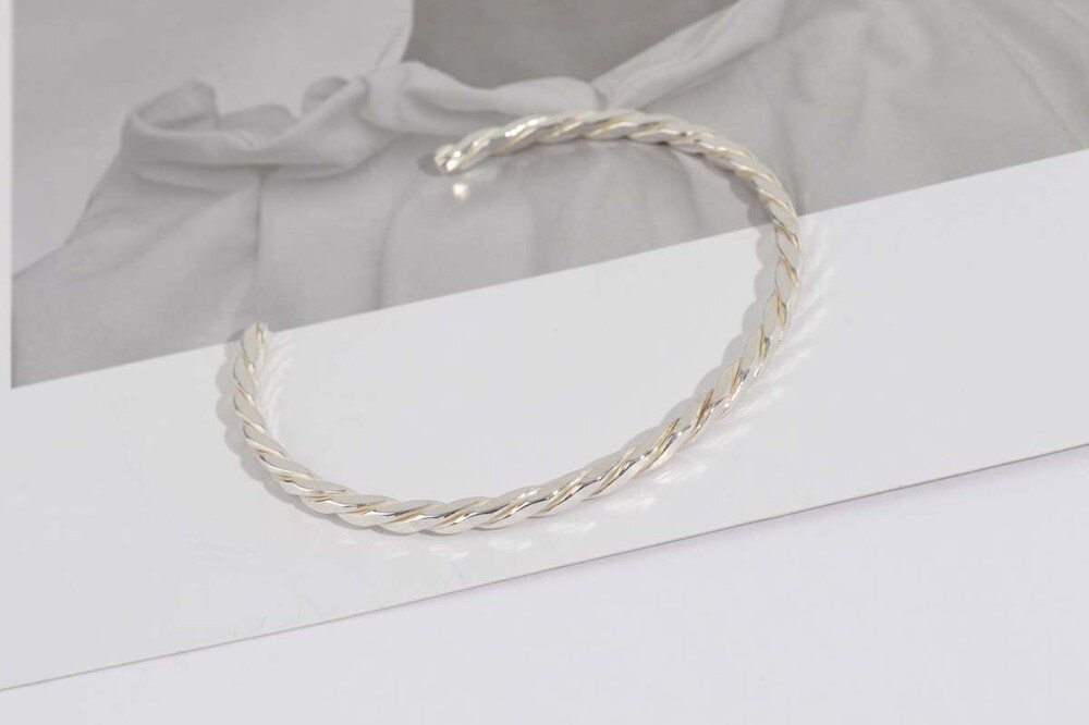 100885 Twisted Flat Open Bangle Sterling Silver 925
