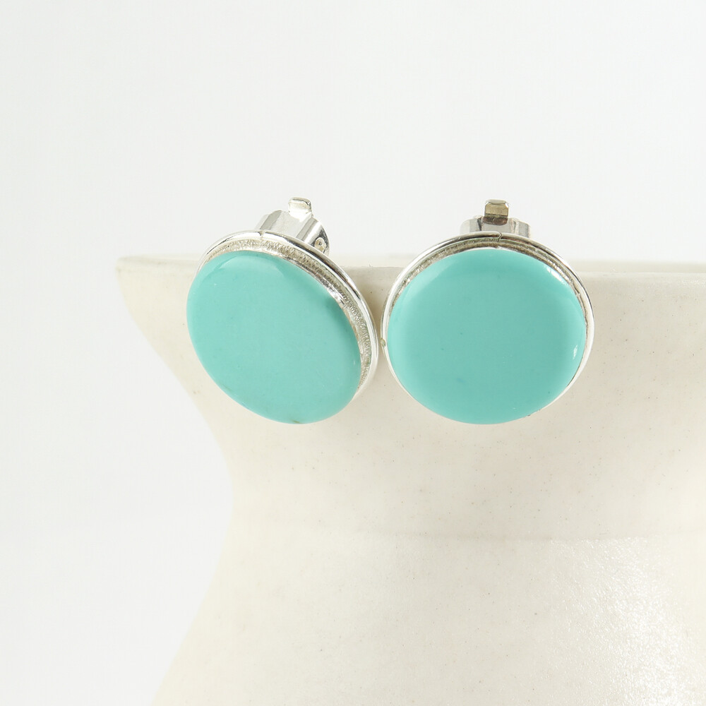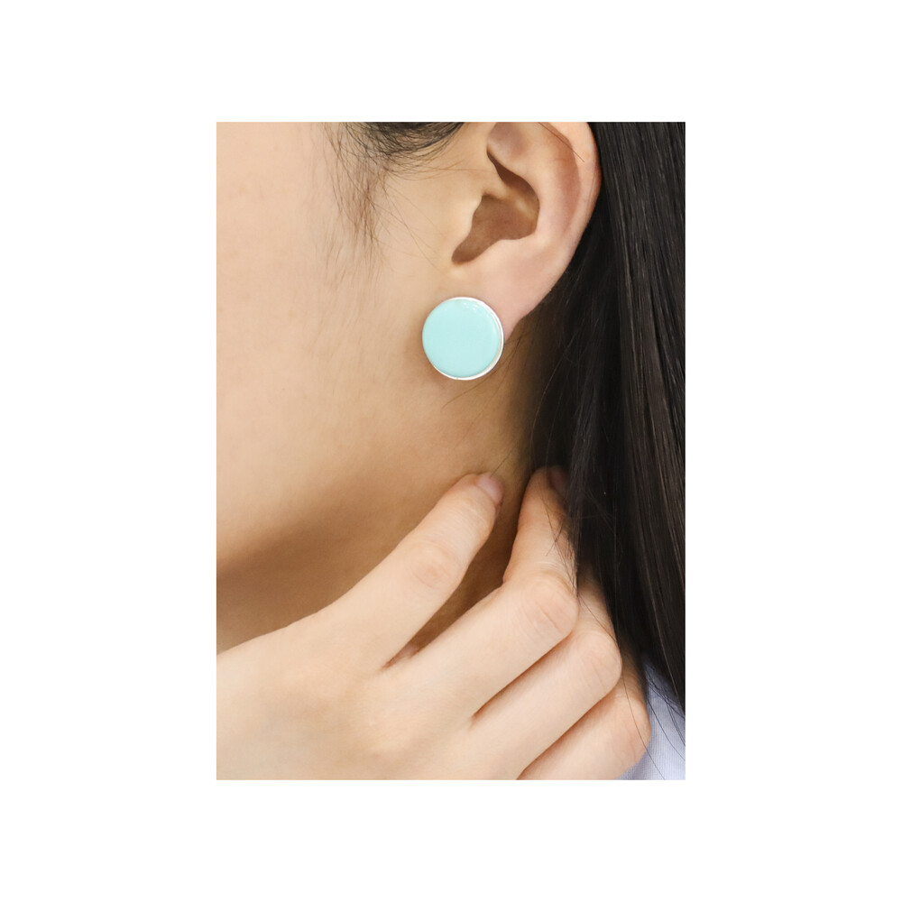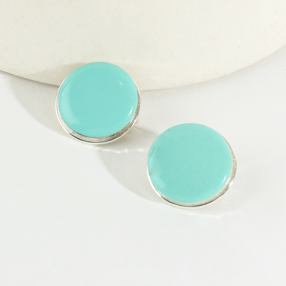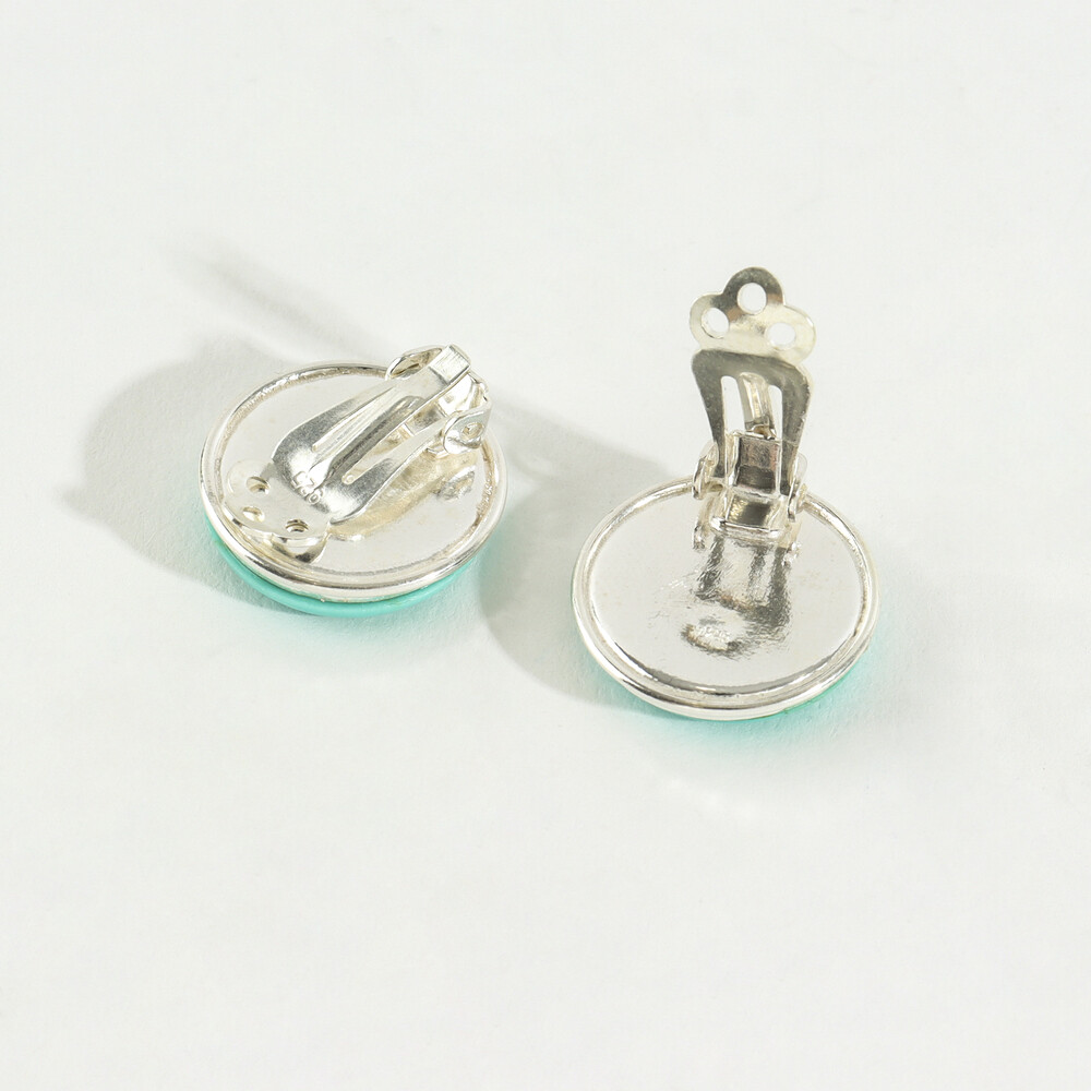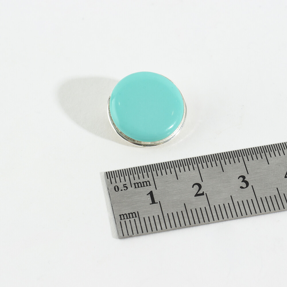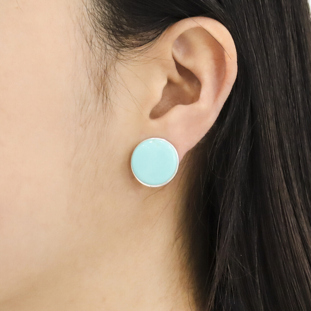 100967 18mm Imitation turquoise Button motif Round Clip on Silver Earrings