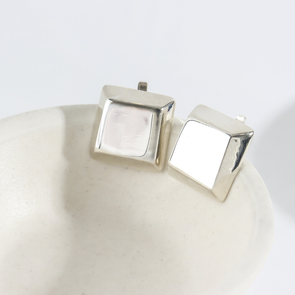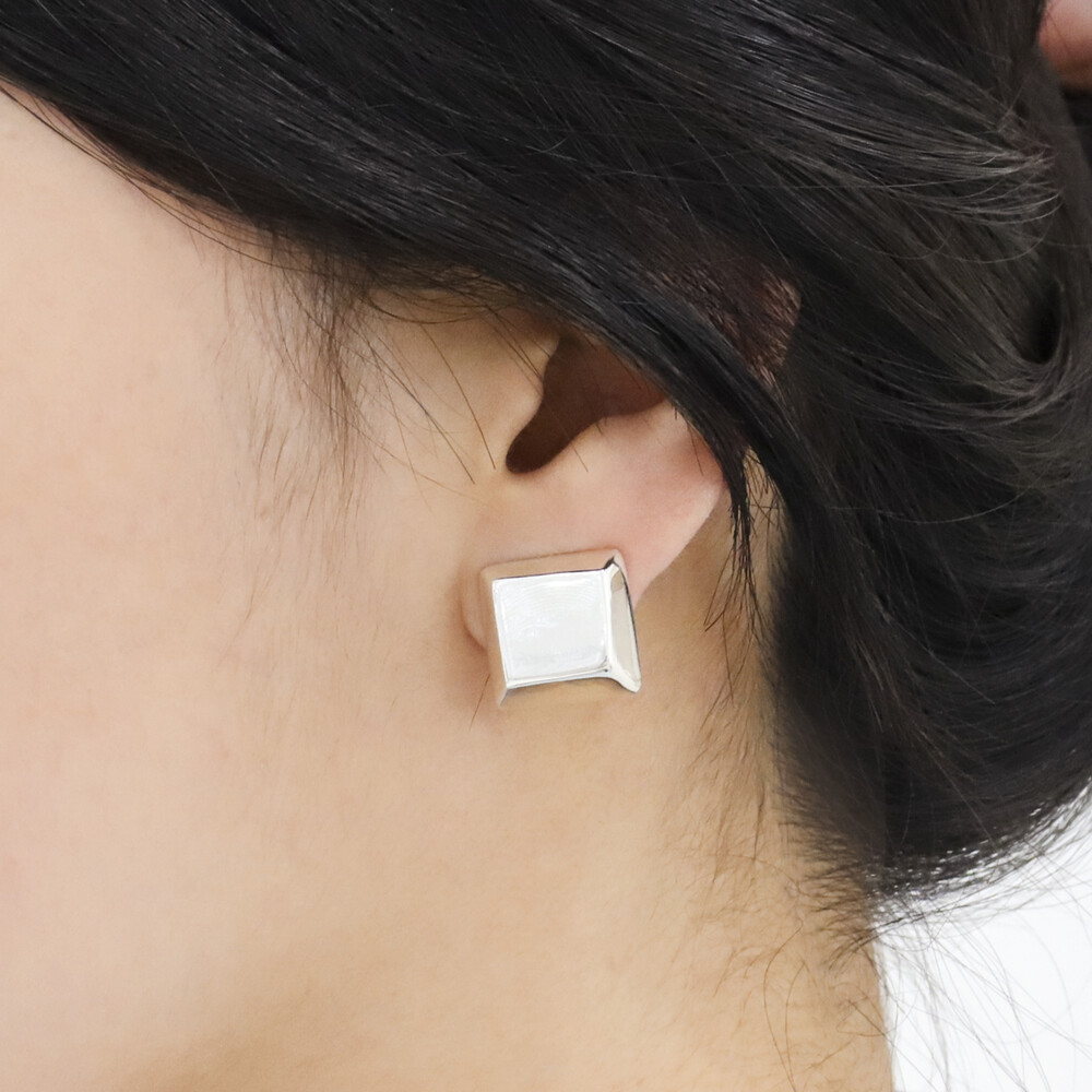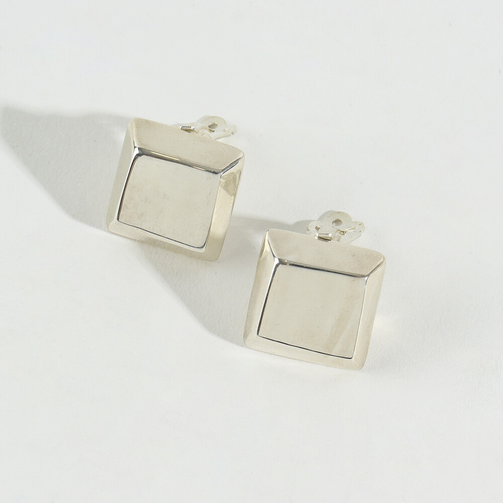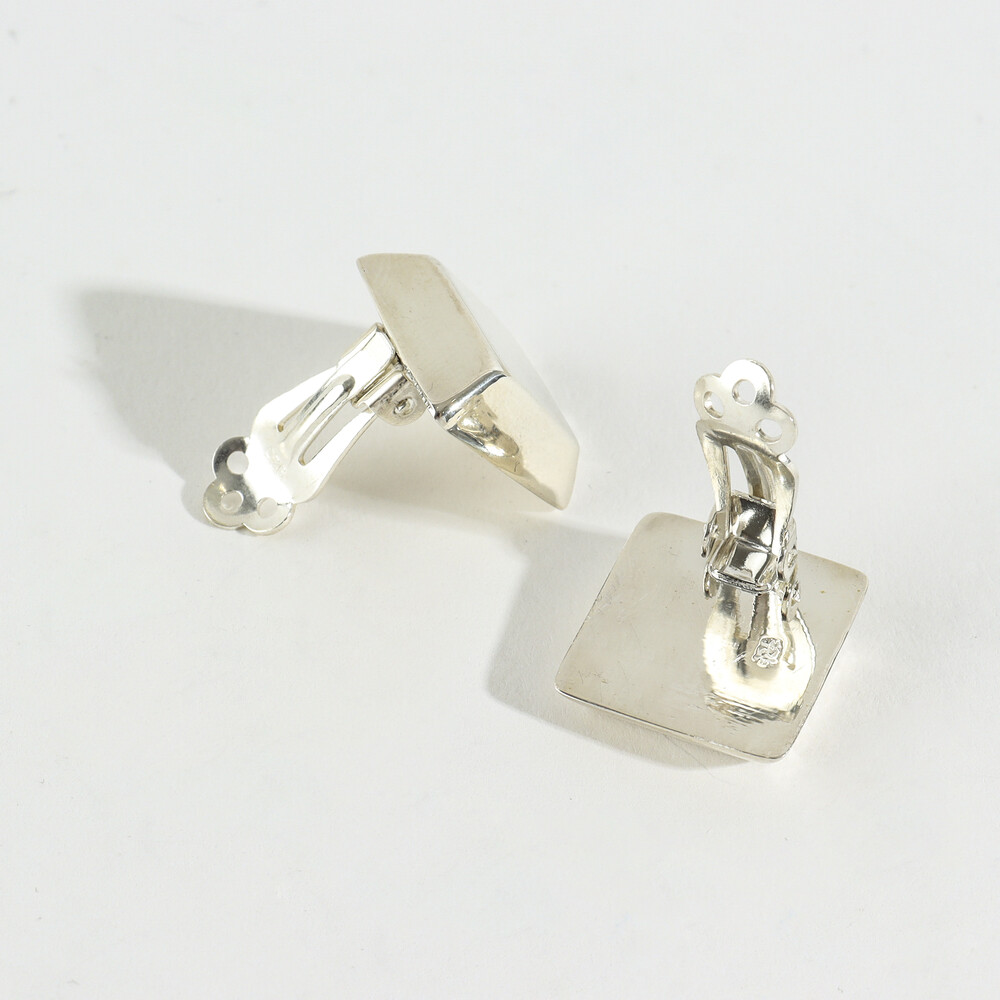 100984 Small Square Chocolate sculpture motif Clip on Silver Earrings
