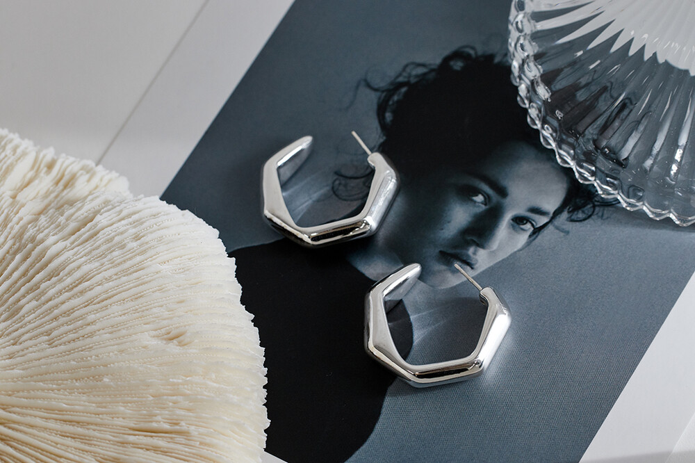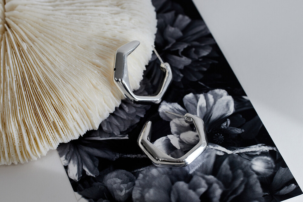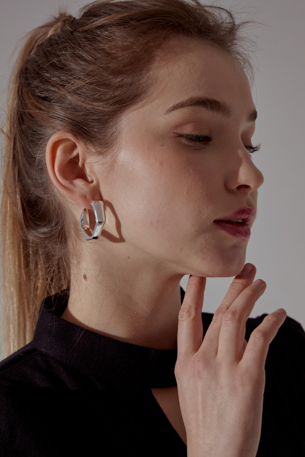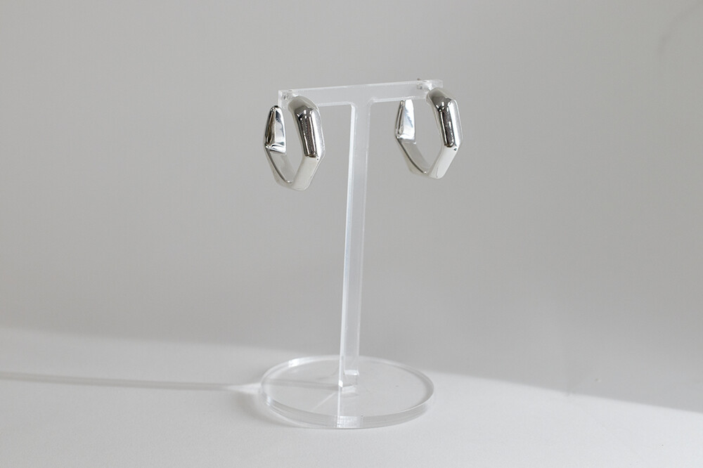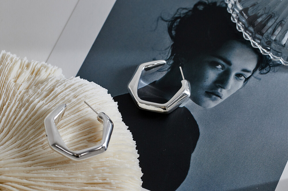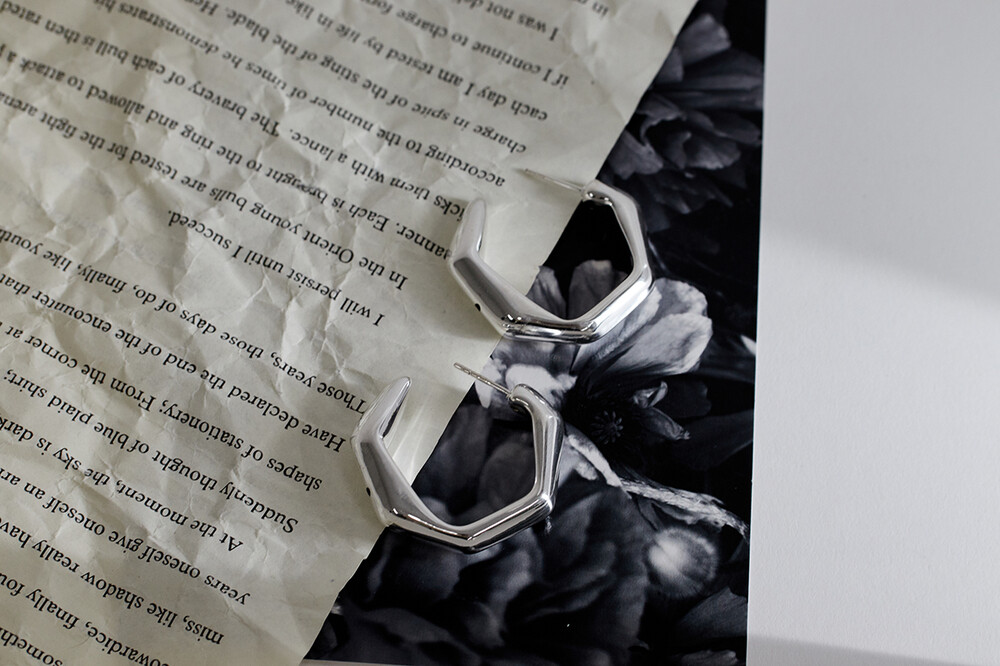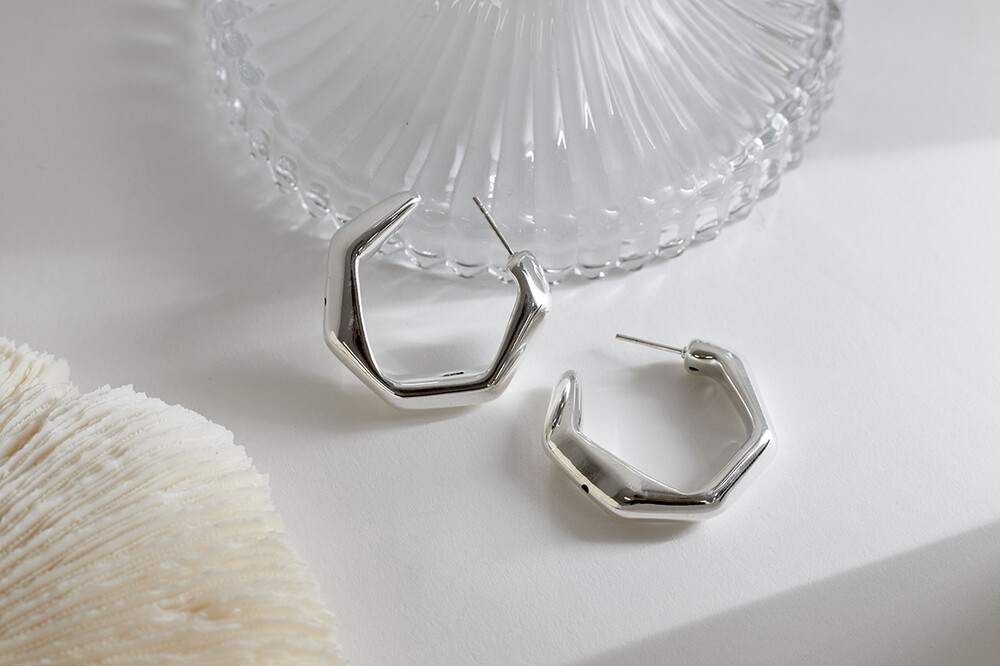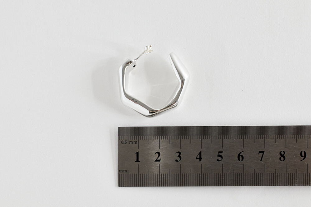 101078 Pentagon C-Hoop Earrings Sterling Silver 925 Hollow Light Weight