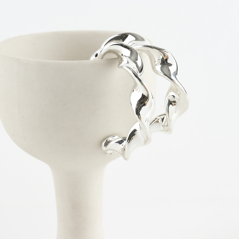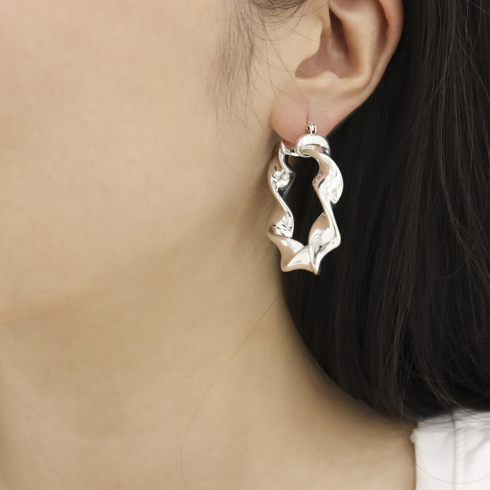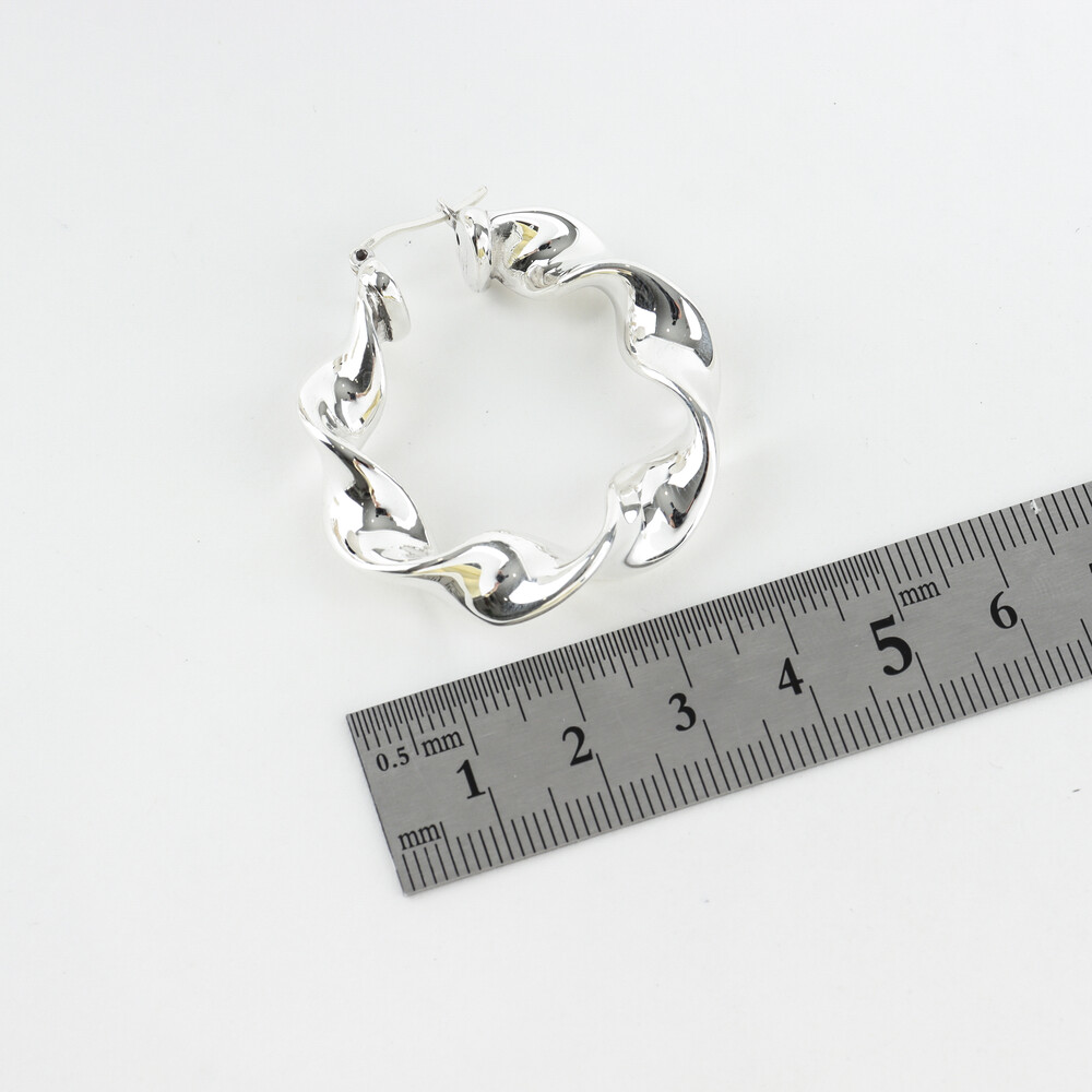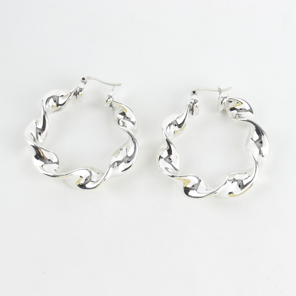 101132 Twisted Fashionable Round Silver Earrings Light Weight