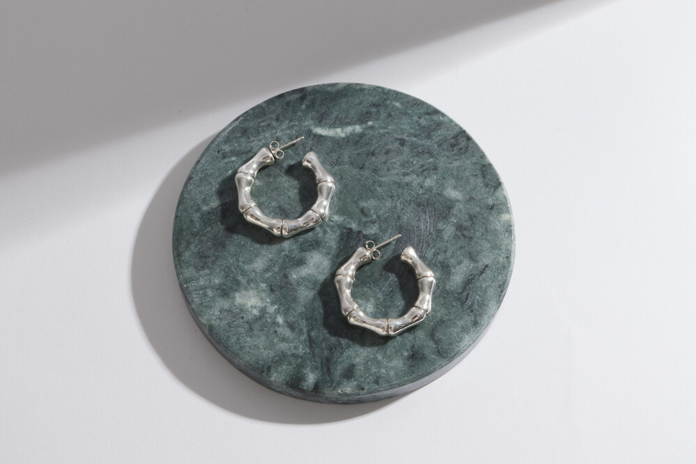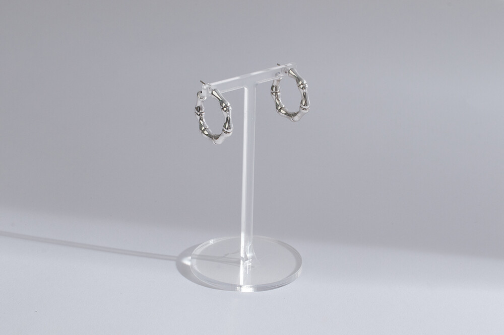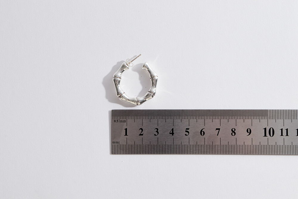 101134 Medium Bamboo Earrings Sterling Silver 925 Hollow Light Weight