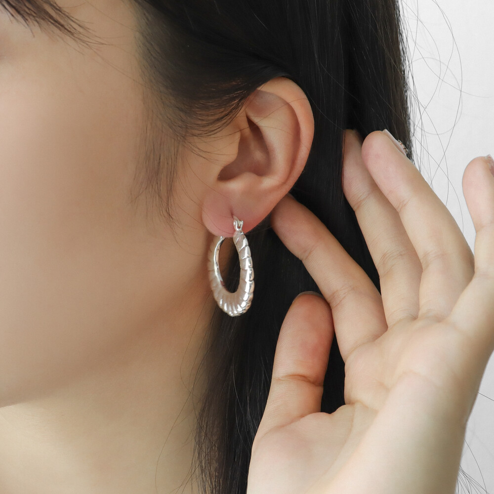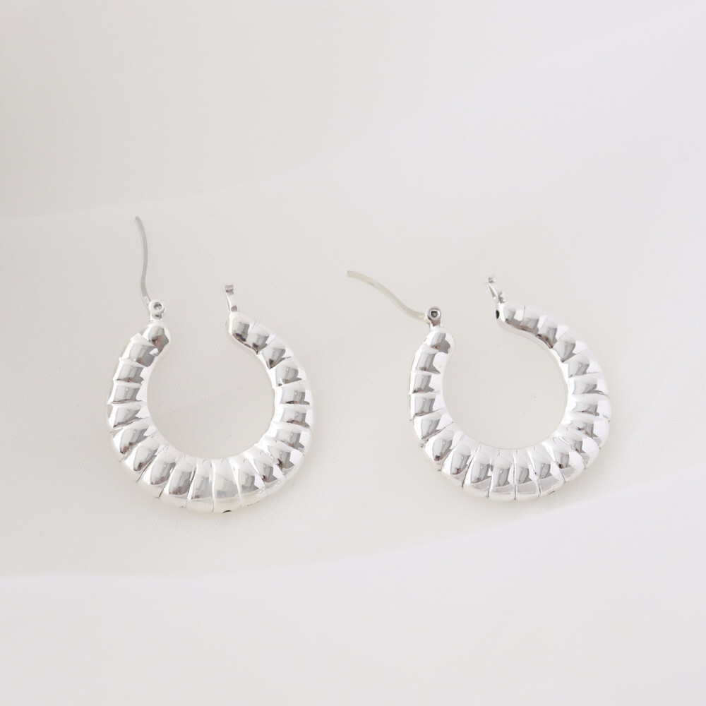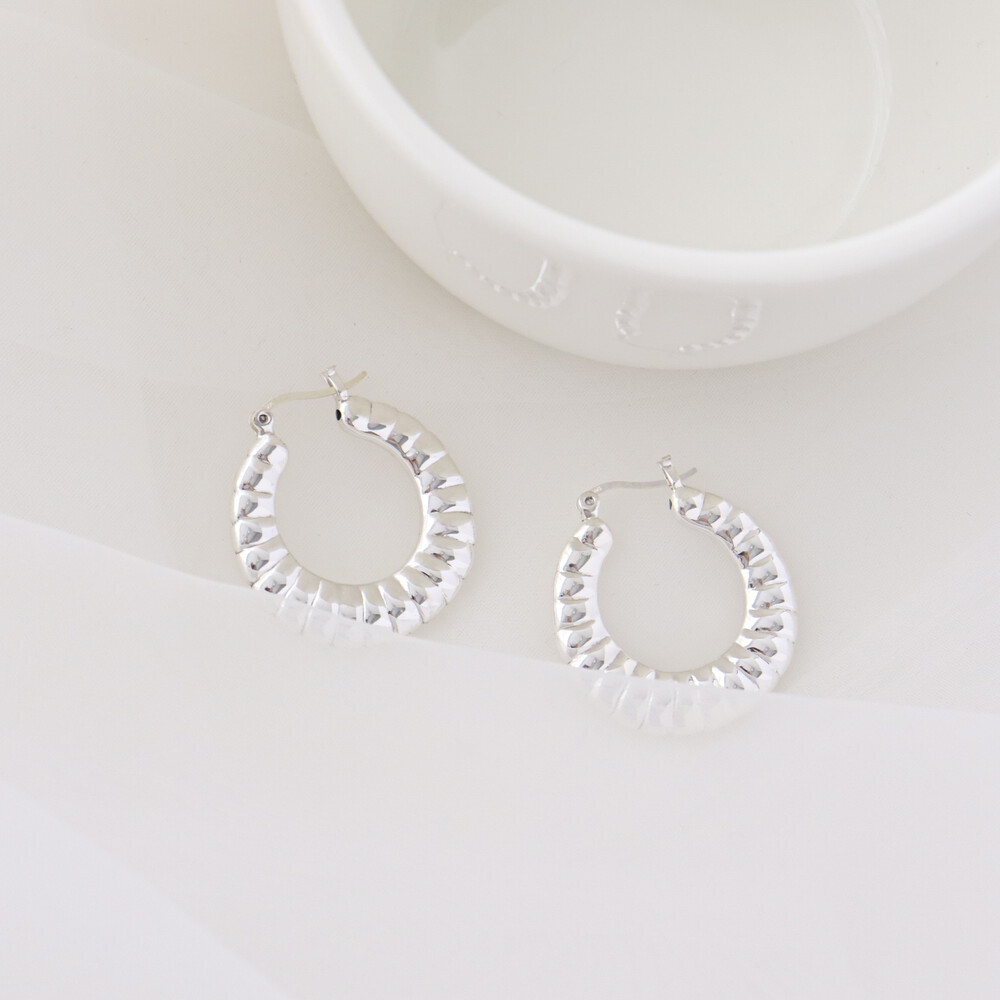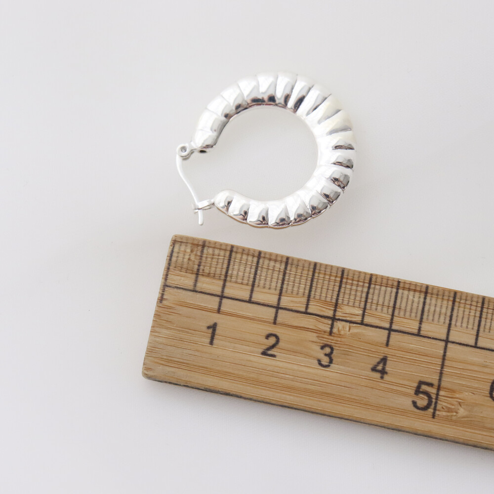 101299 Medium Round Hoop Hollow Silver Earrings 30 mm Light Weight