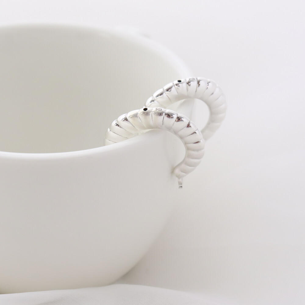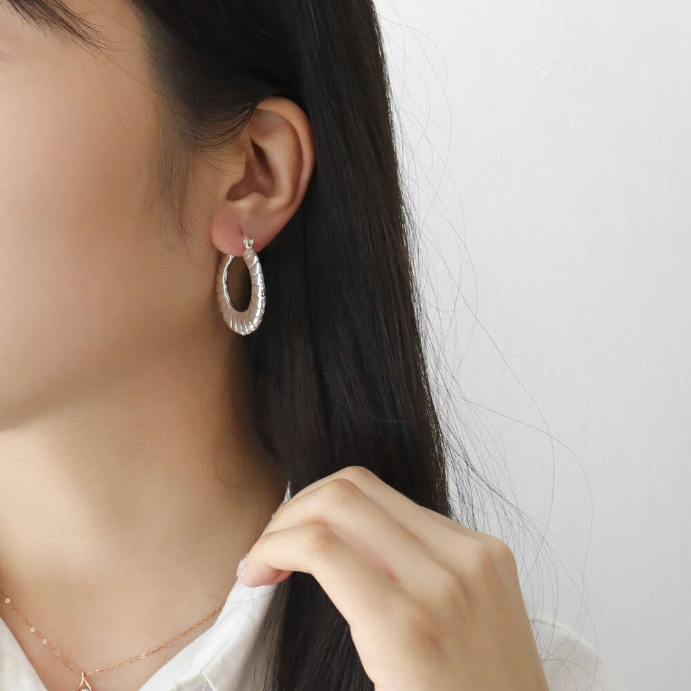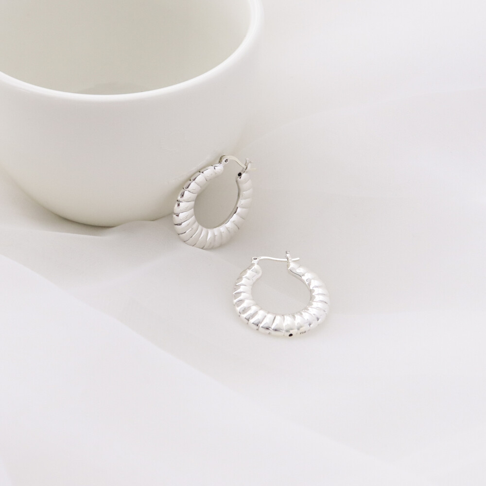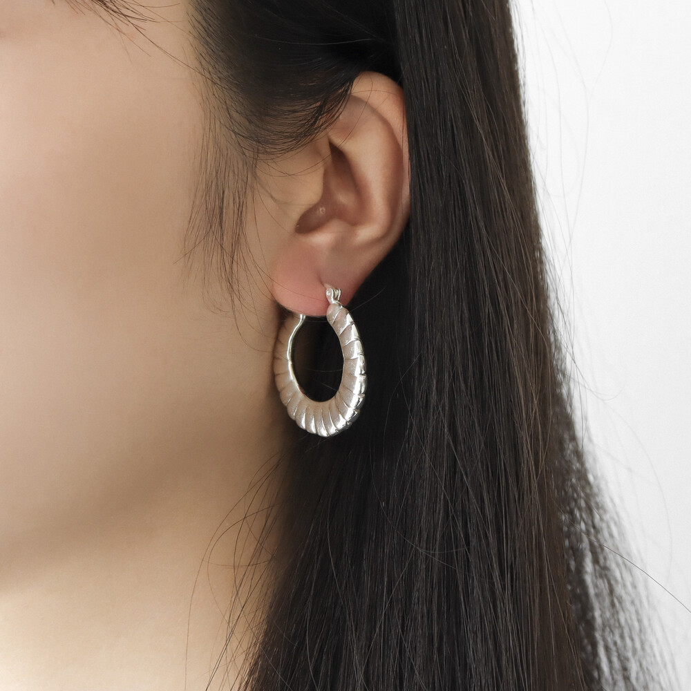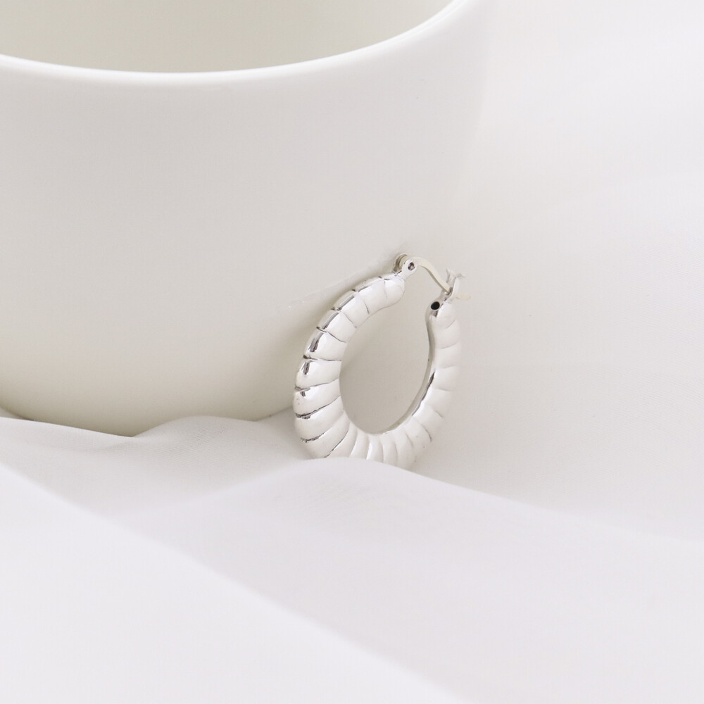 101299 Medium Round Hoop Hollow Silver Earrings 30 mm Light Weight