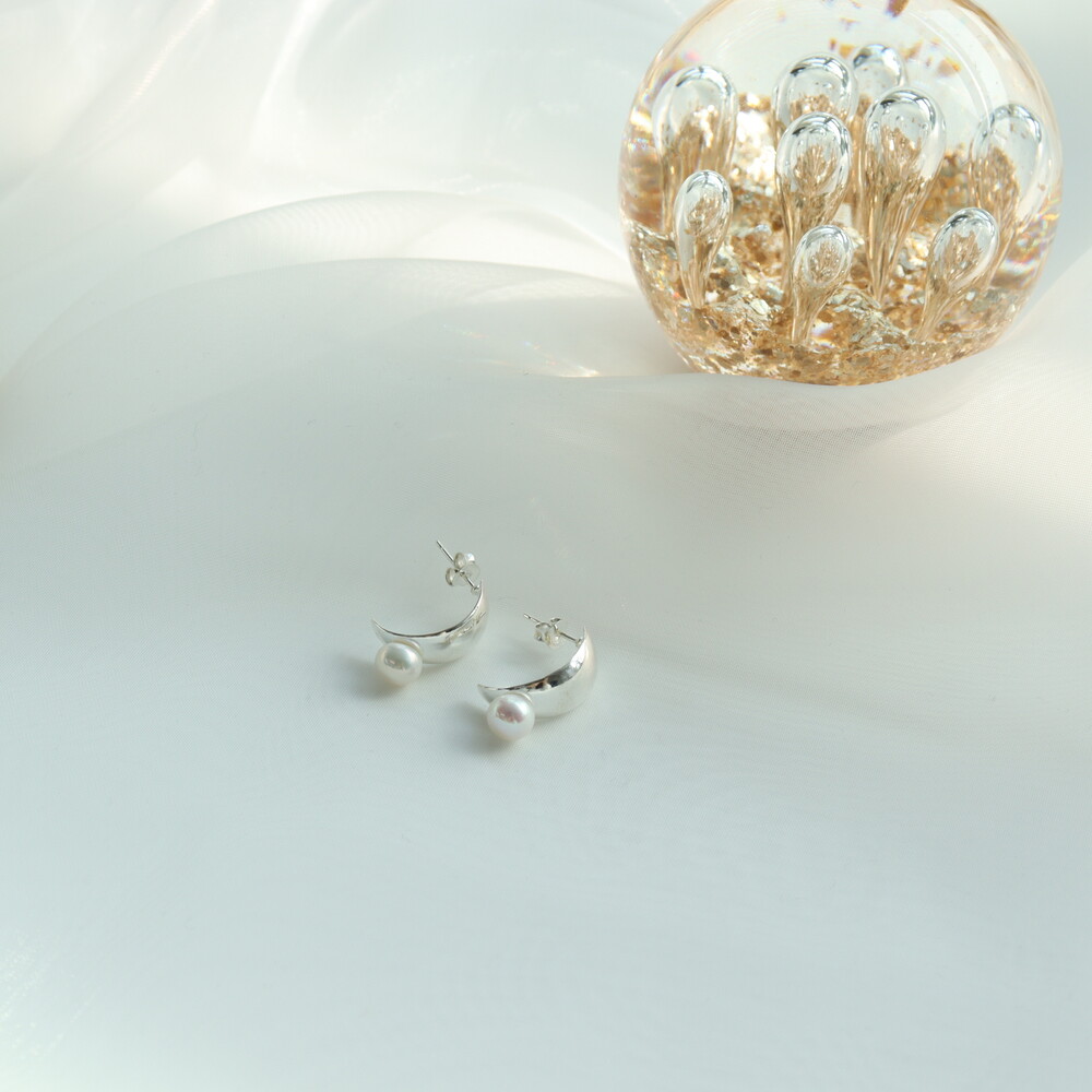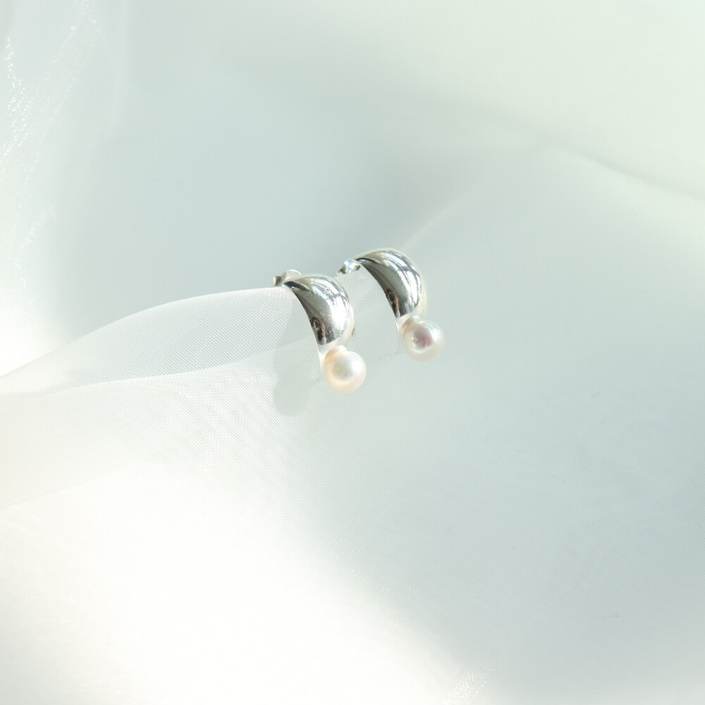 101448 Simple Freshwater Pearl Drop Silver Earrings