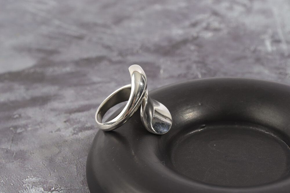 101493 Hugging shape Bold Sterling Silver 925 One Size Adjustable Ring