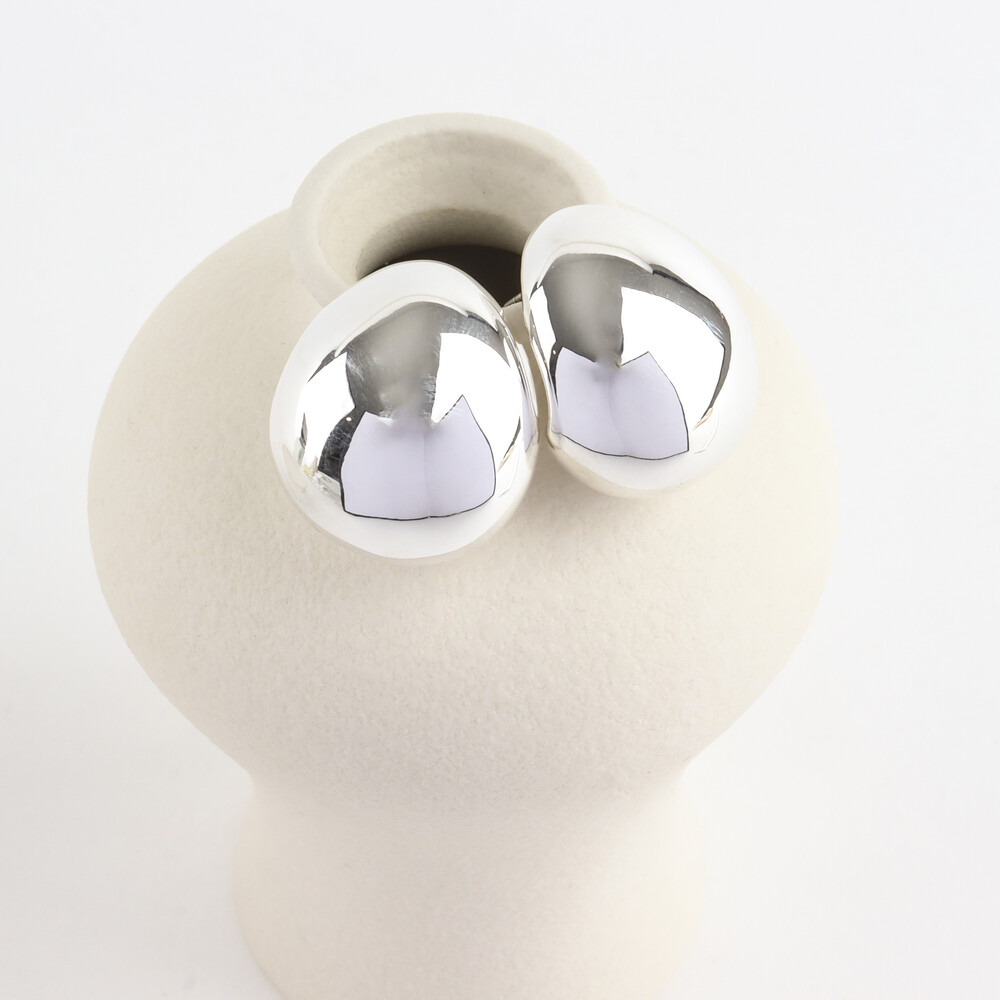 101592 Bold Oval Stud Silver 925 Earrings 24x28mm Man Woman Jewelry Electroform Light Weight
