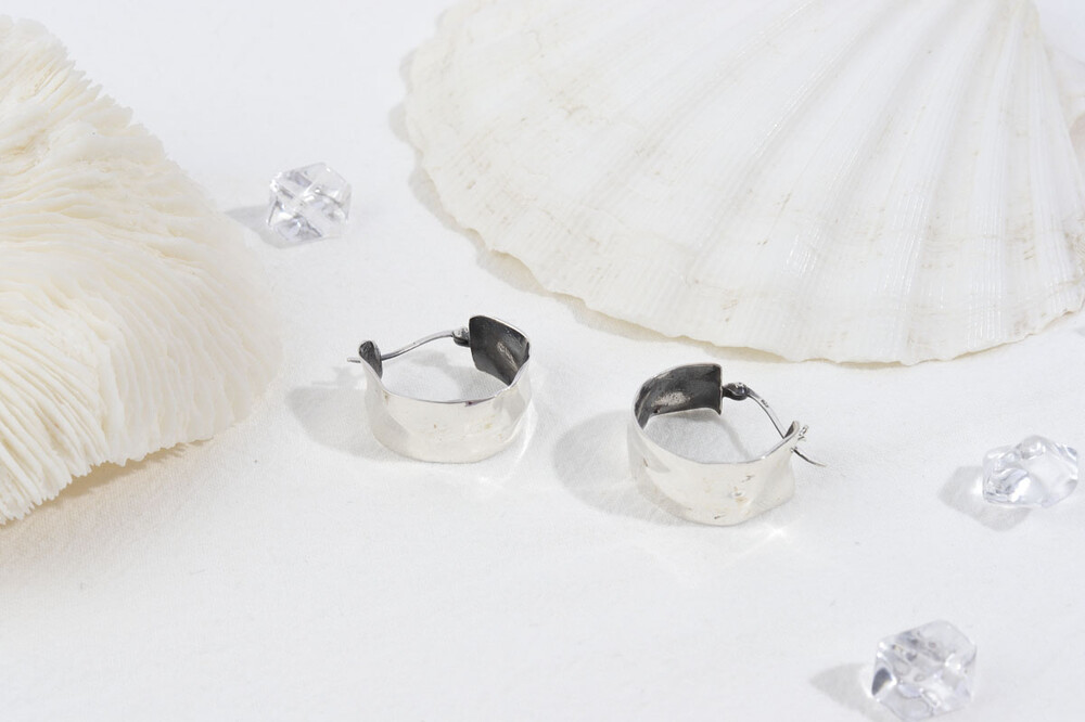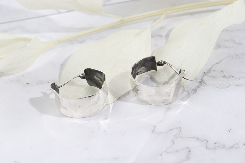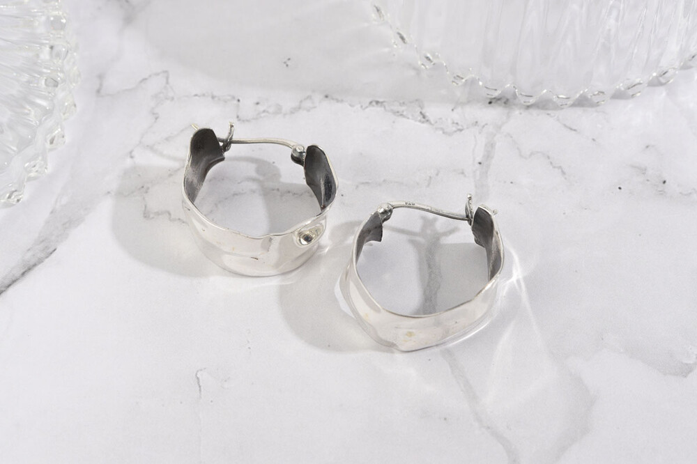 101643 Unique Round Hoop Earrings Sterling Silver 925