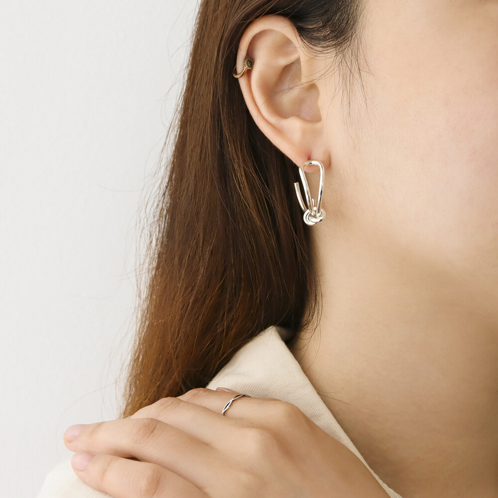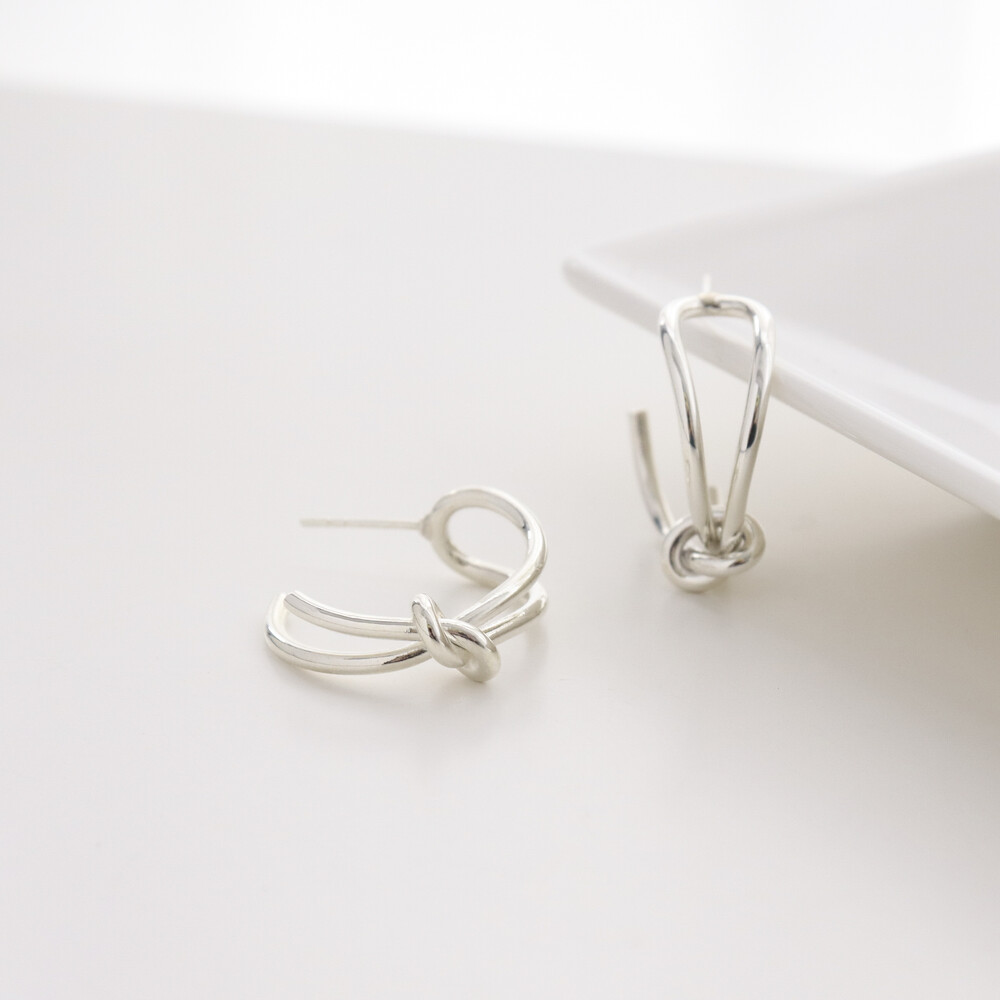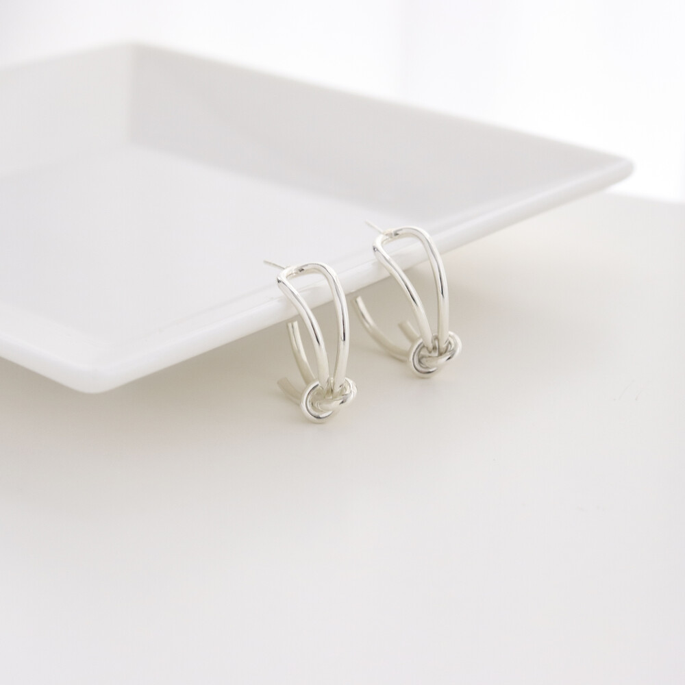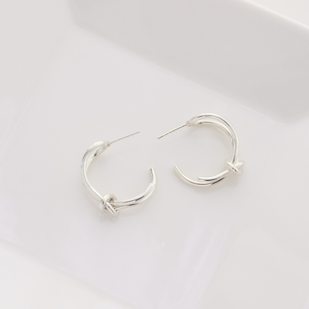 101649 Knotted Medium Hoop Silver Earrings 20x25 mm