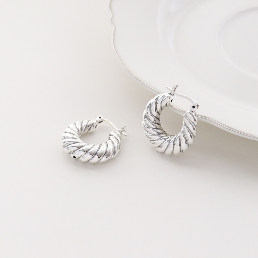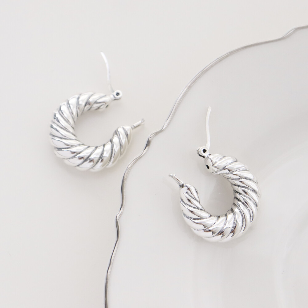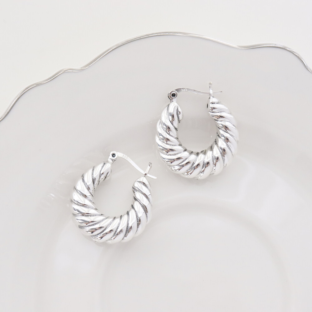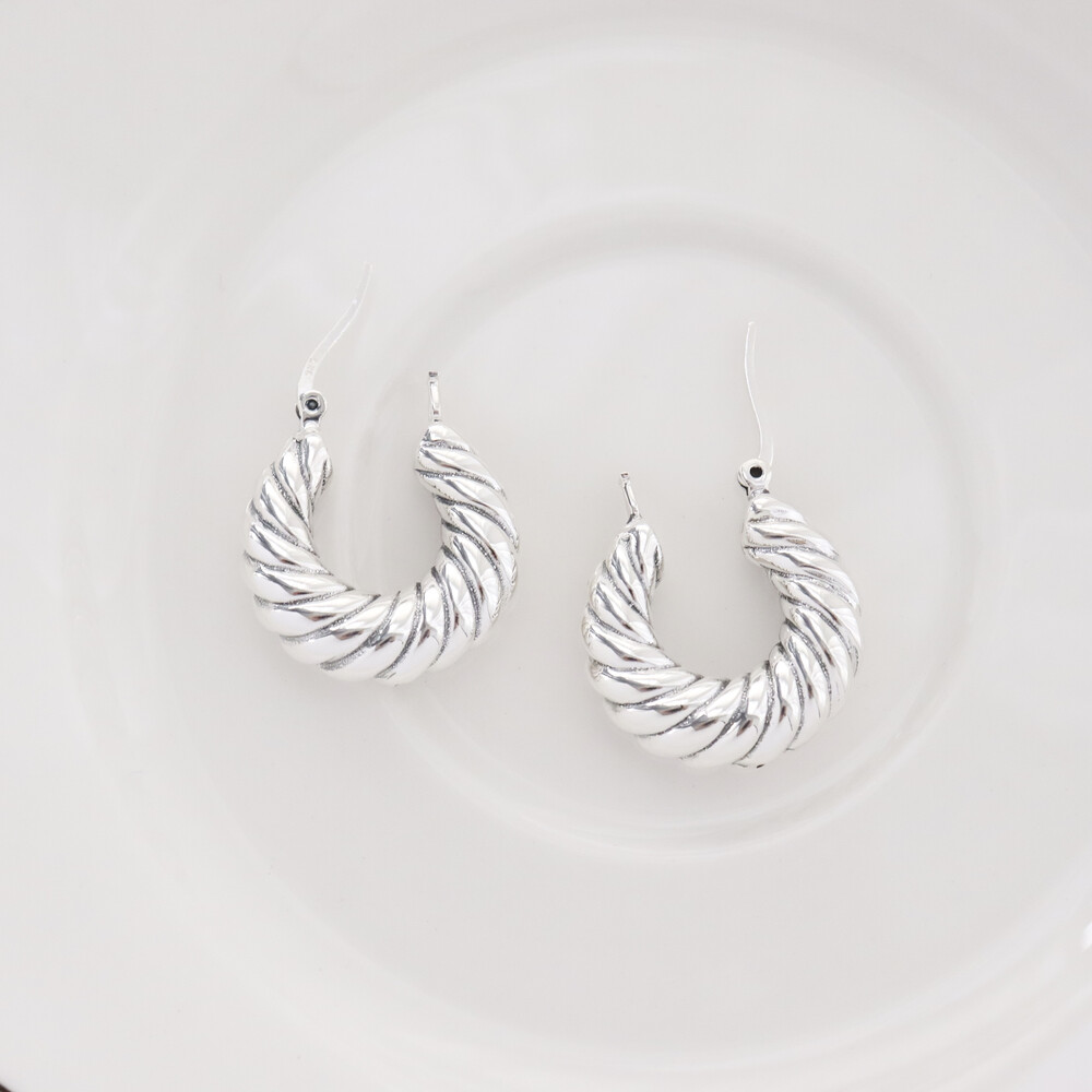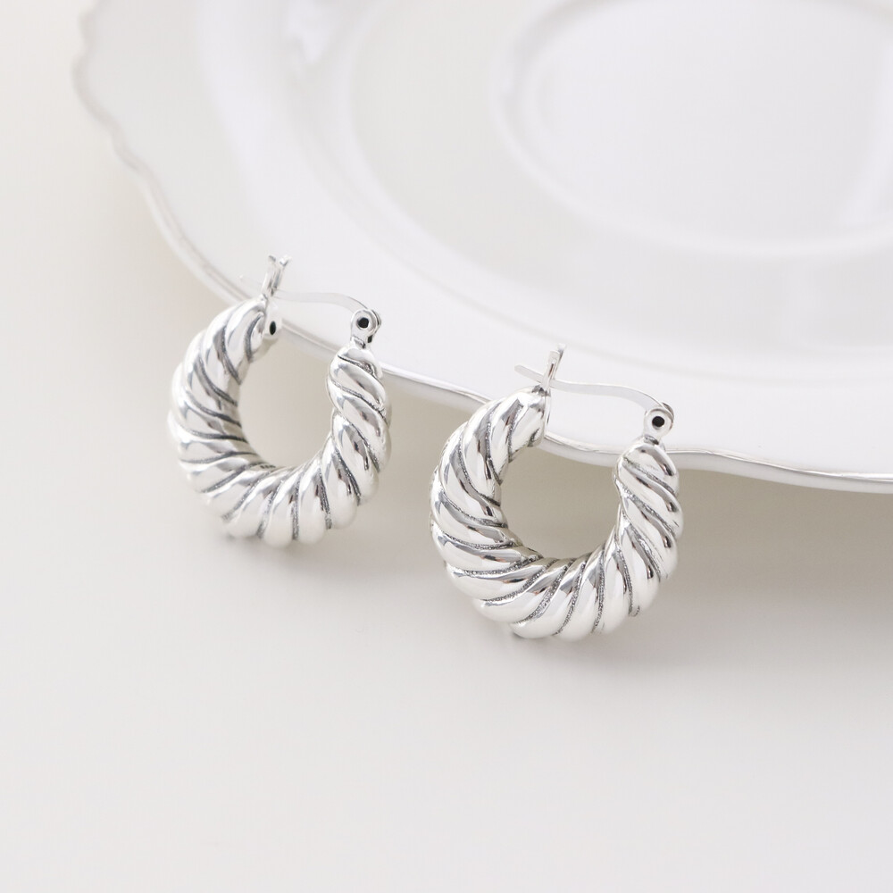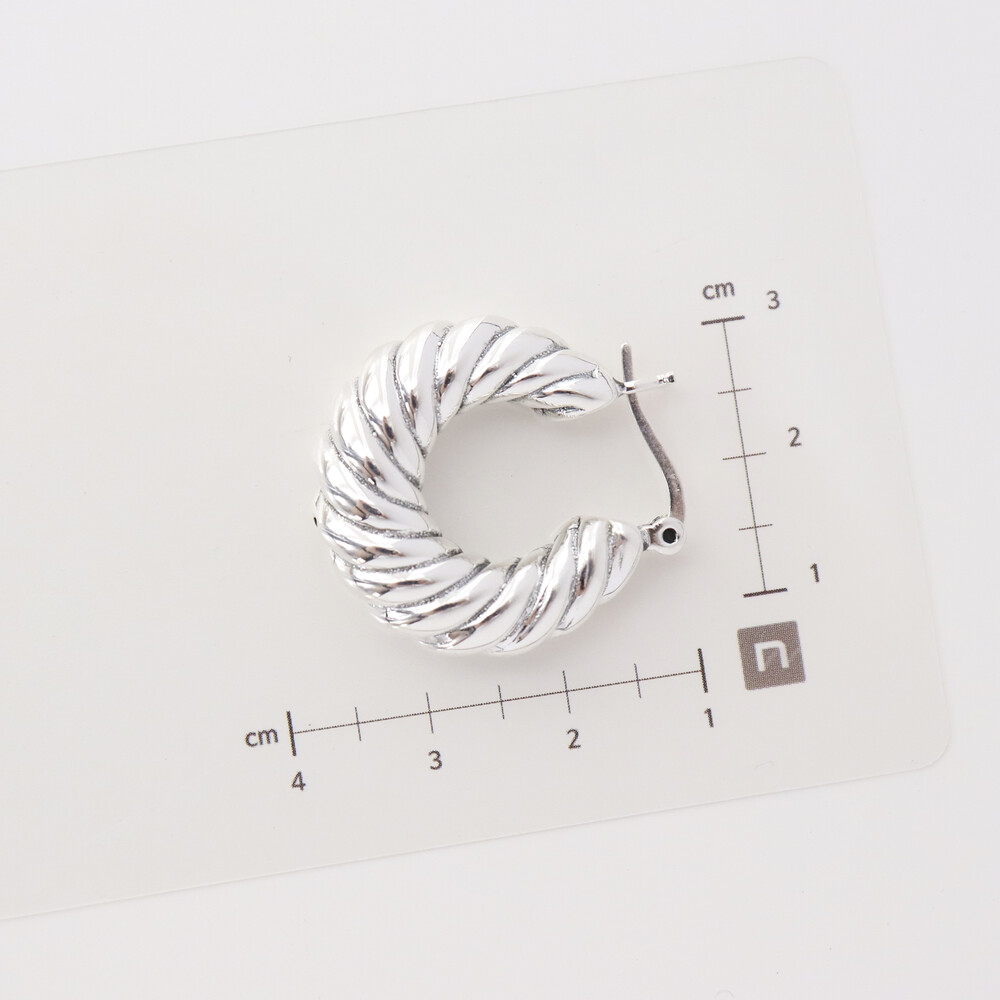 101664 Medium Chunky Round Hoop Hollow Silver Earrings 8x23x26 mm Light Weight