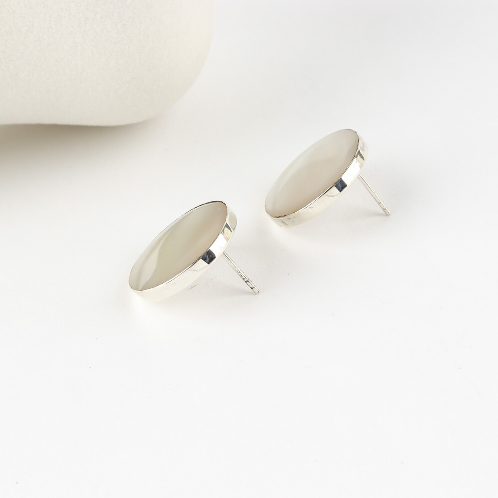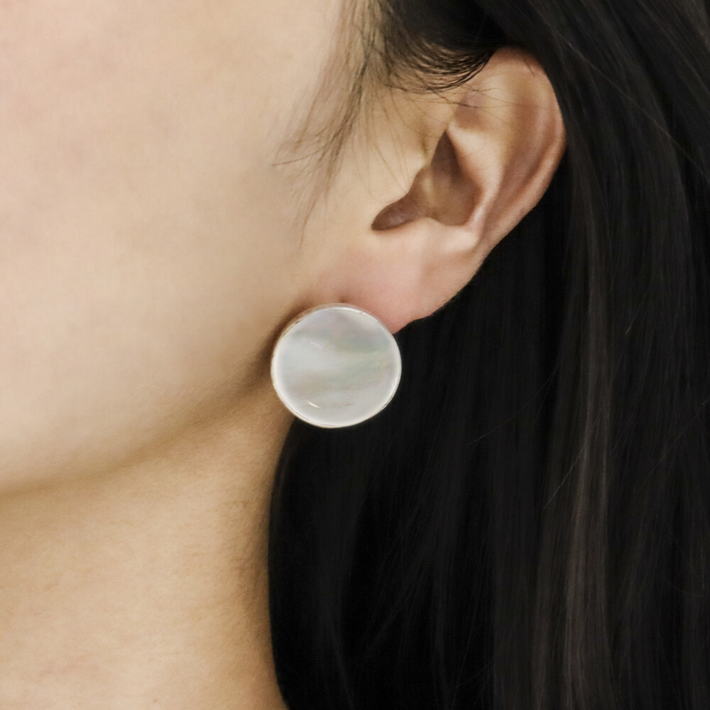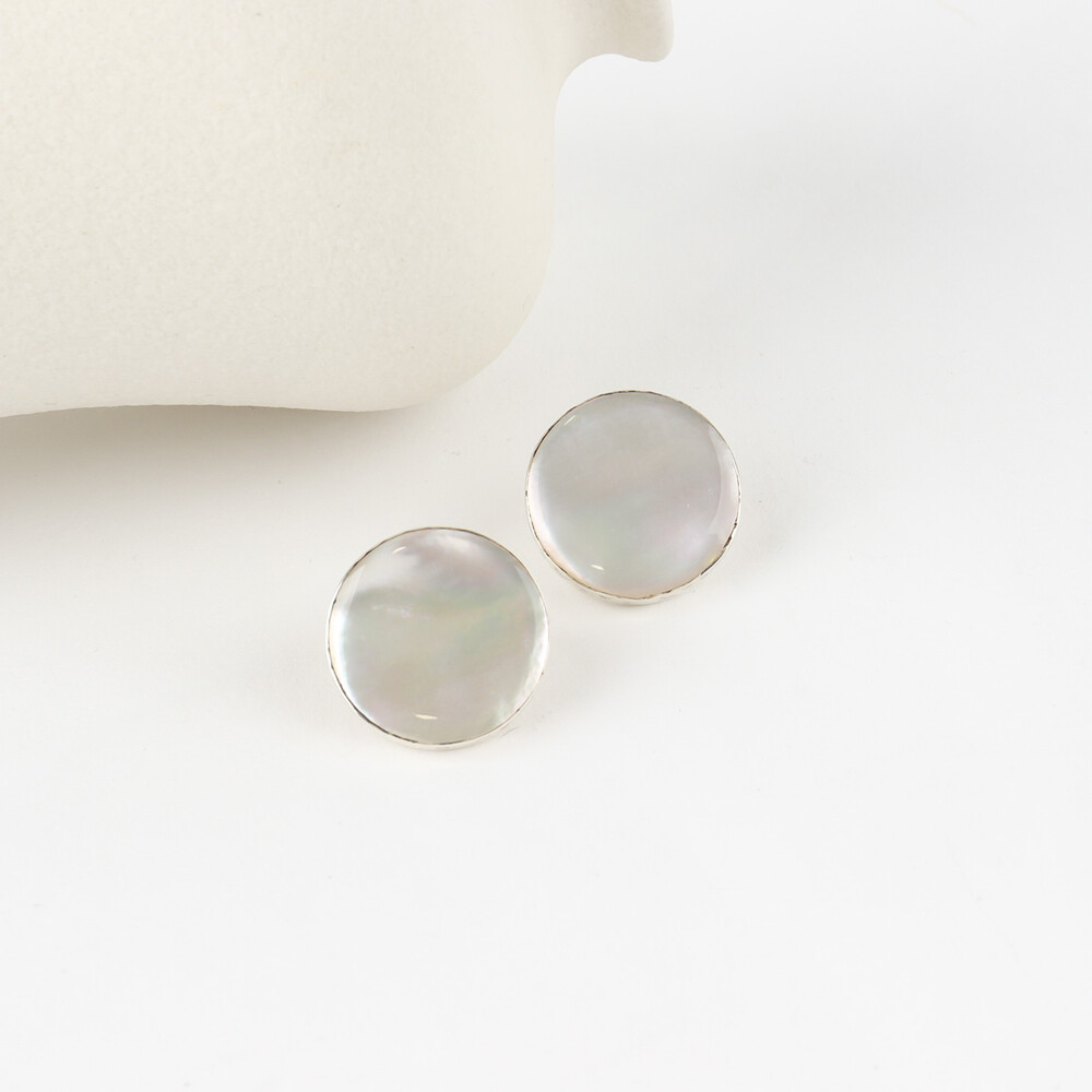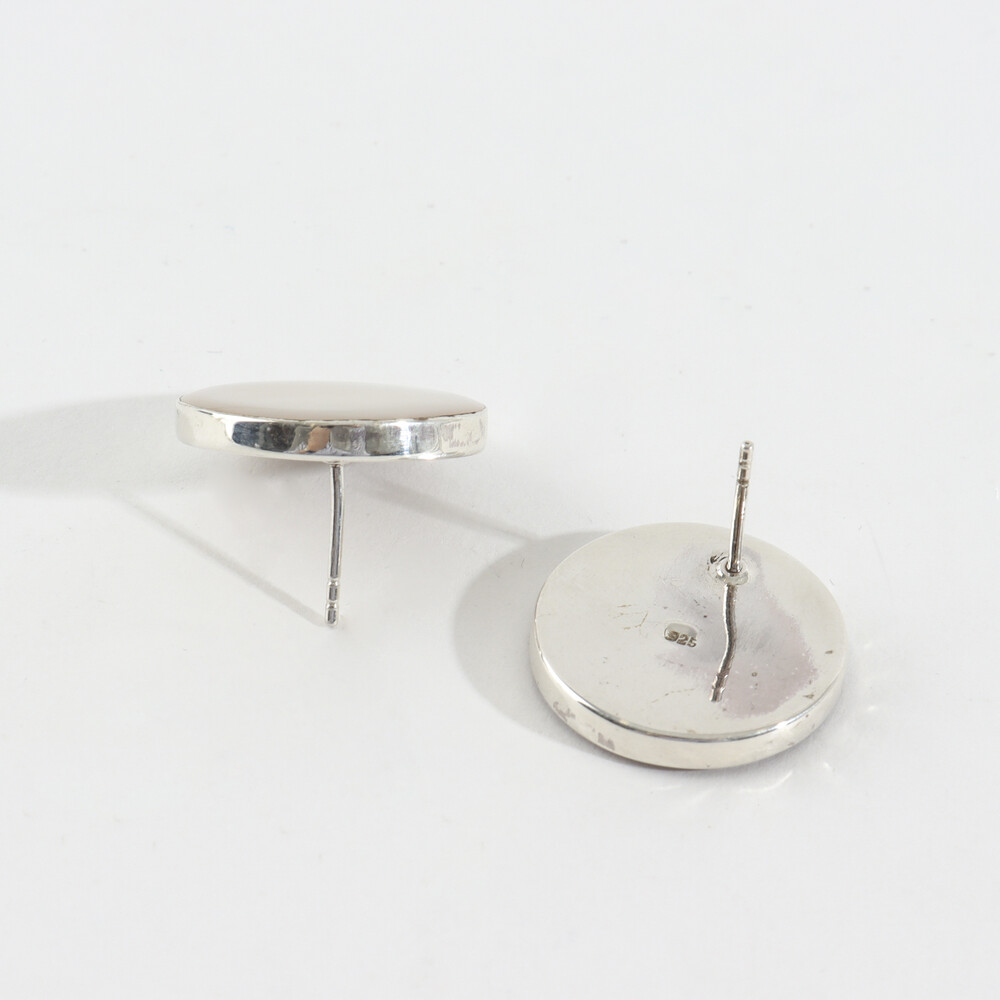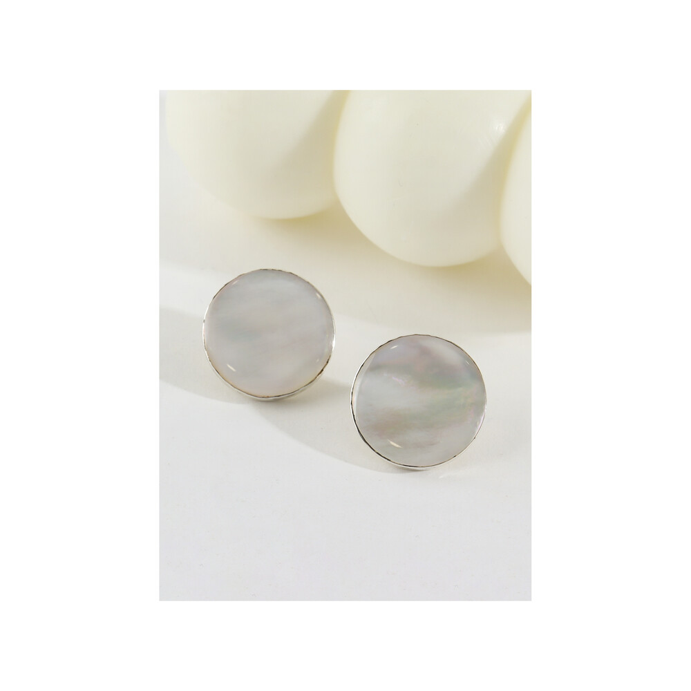 101672 White Round Mother of Pearl Stud Silver Earrings 20mm