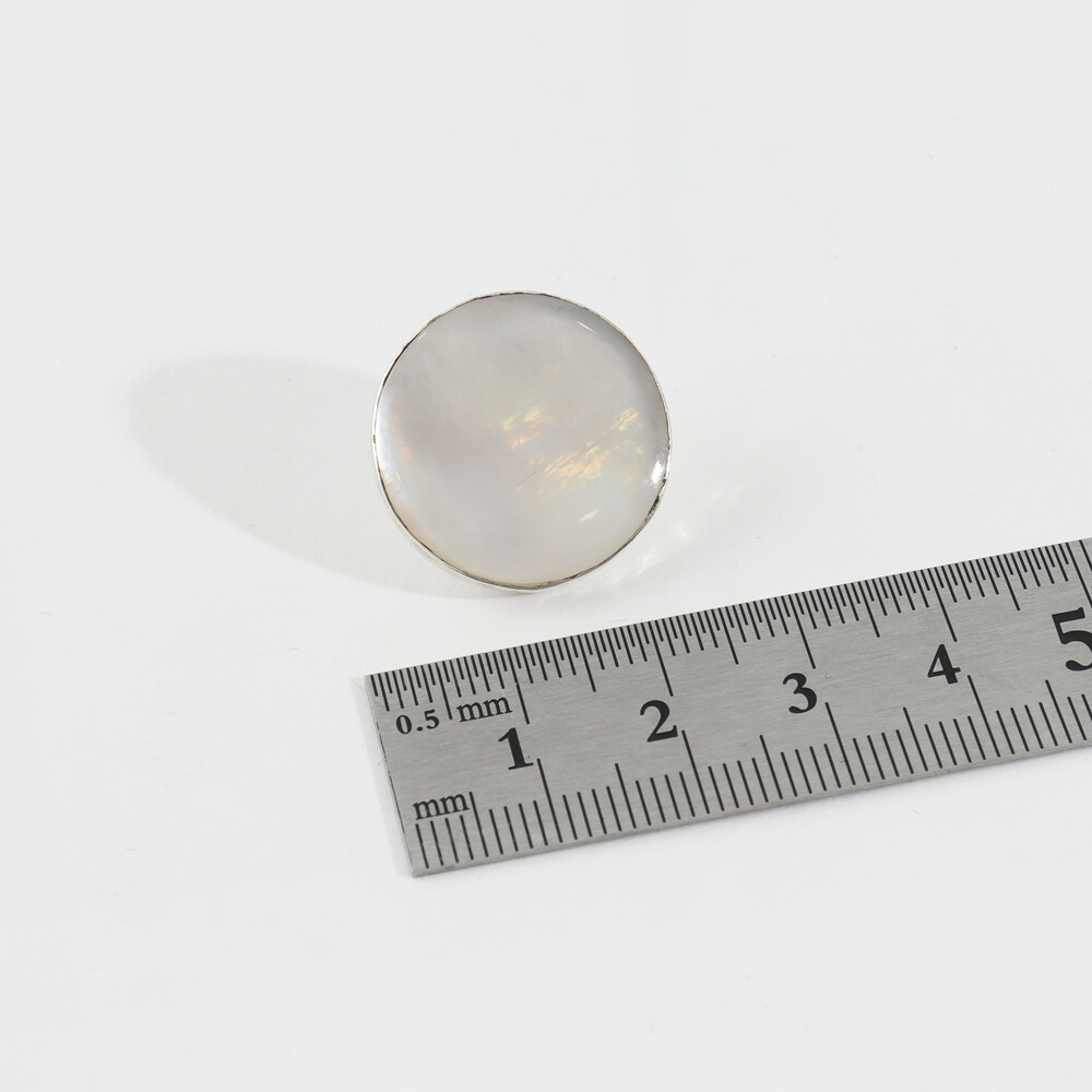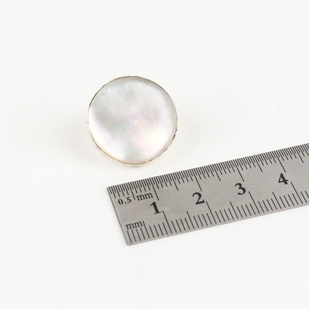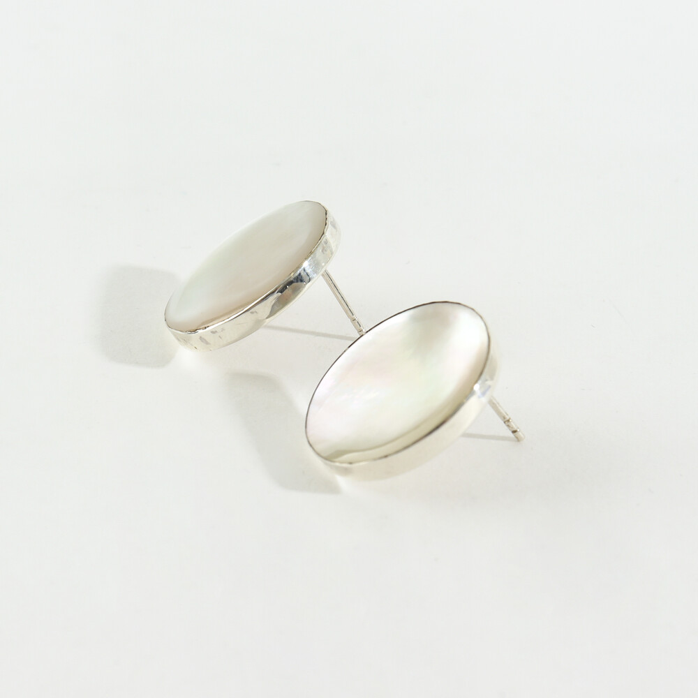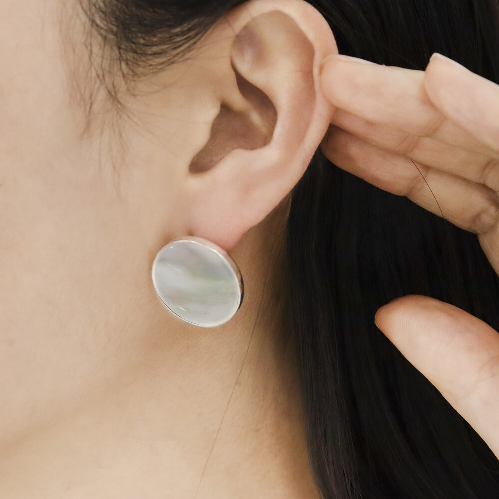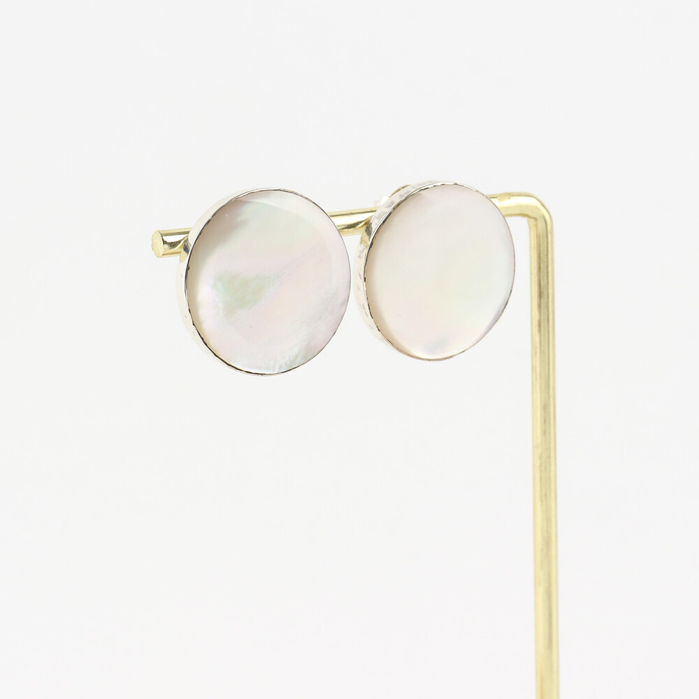 101672 White Round Mother of Pearl Stud Silver Earrings 20mm