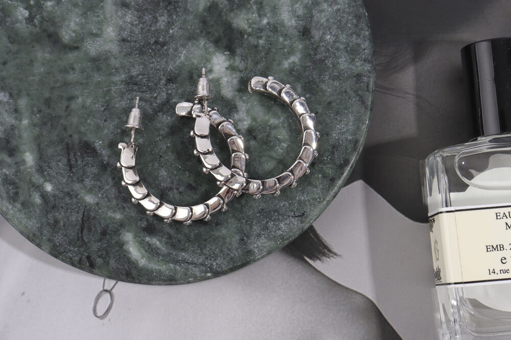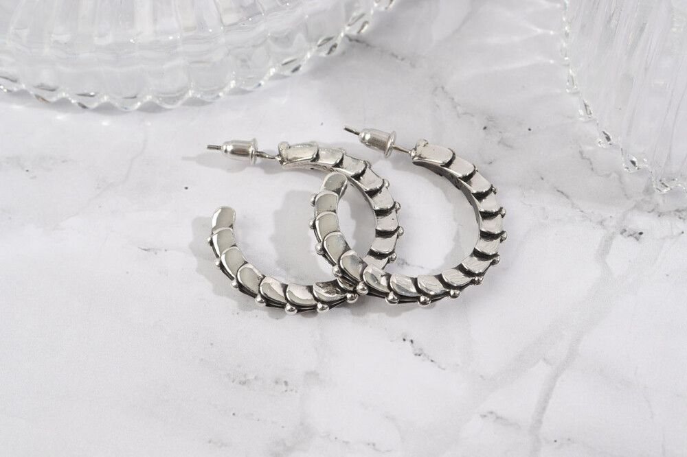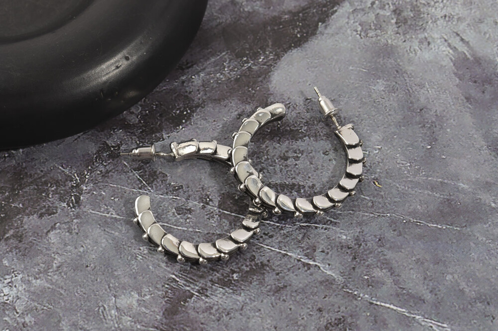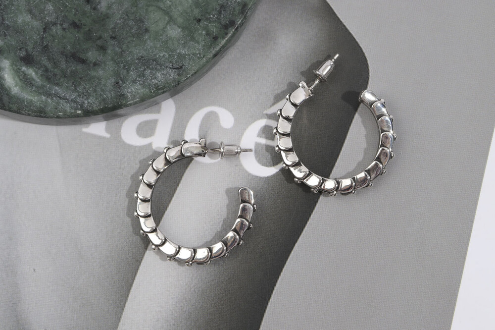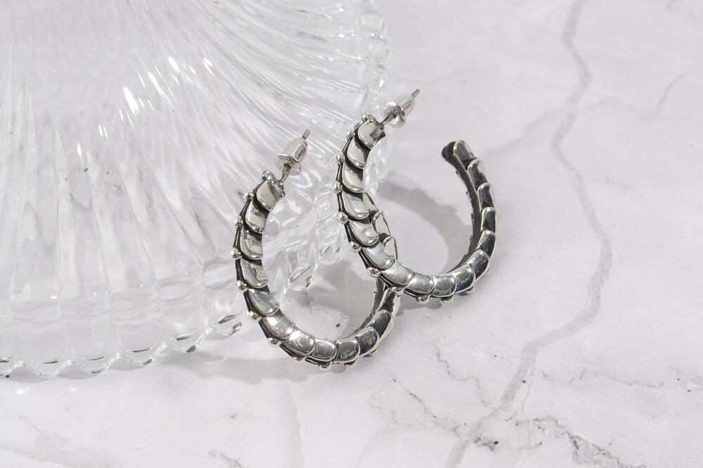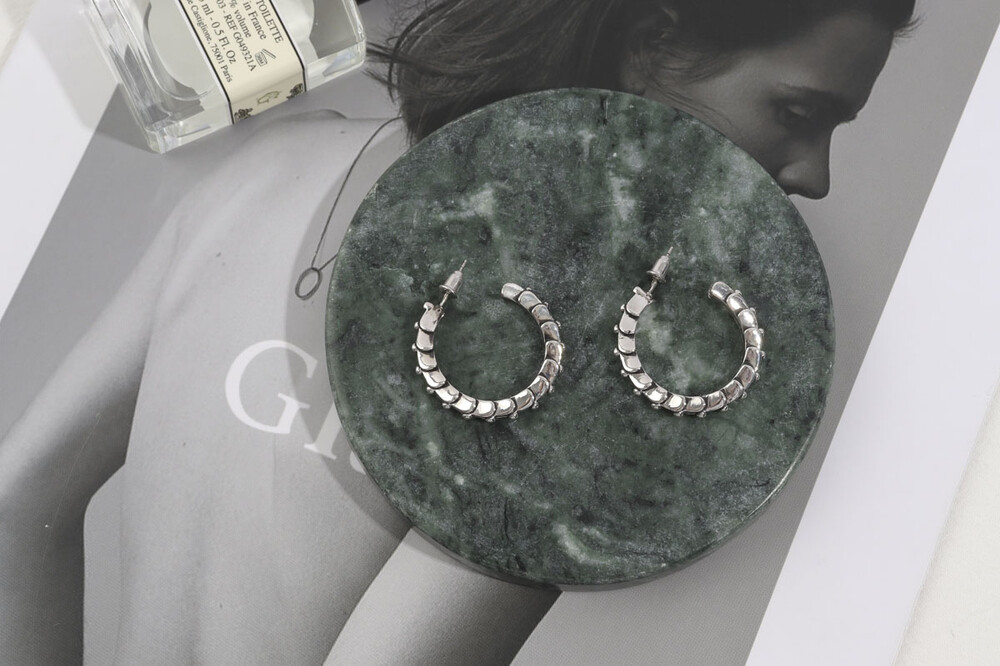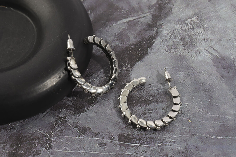 101833 Unique C-Hoop Earrings Sterling Silver 925