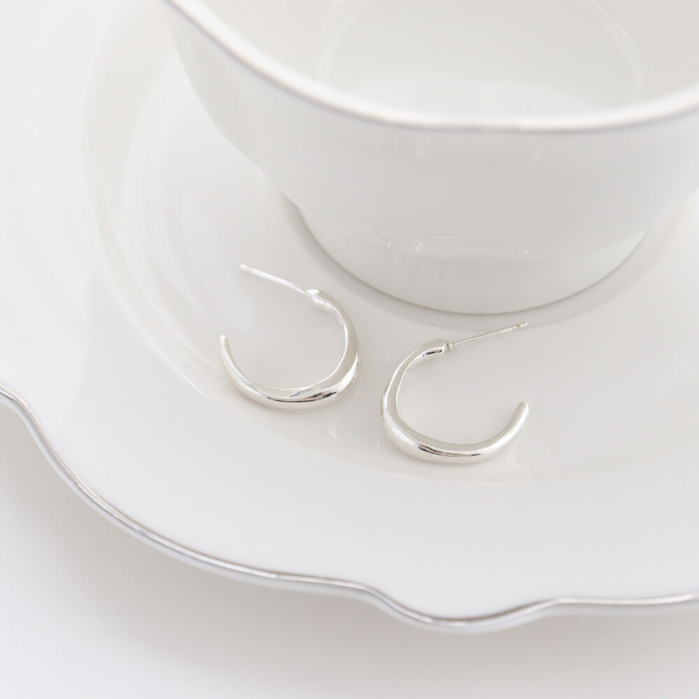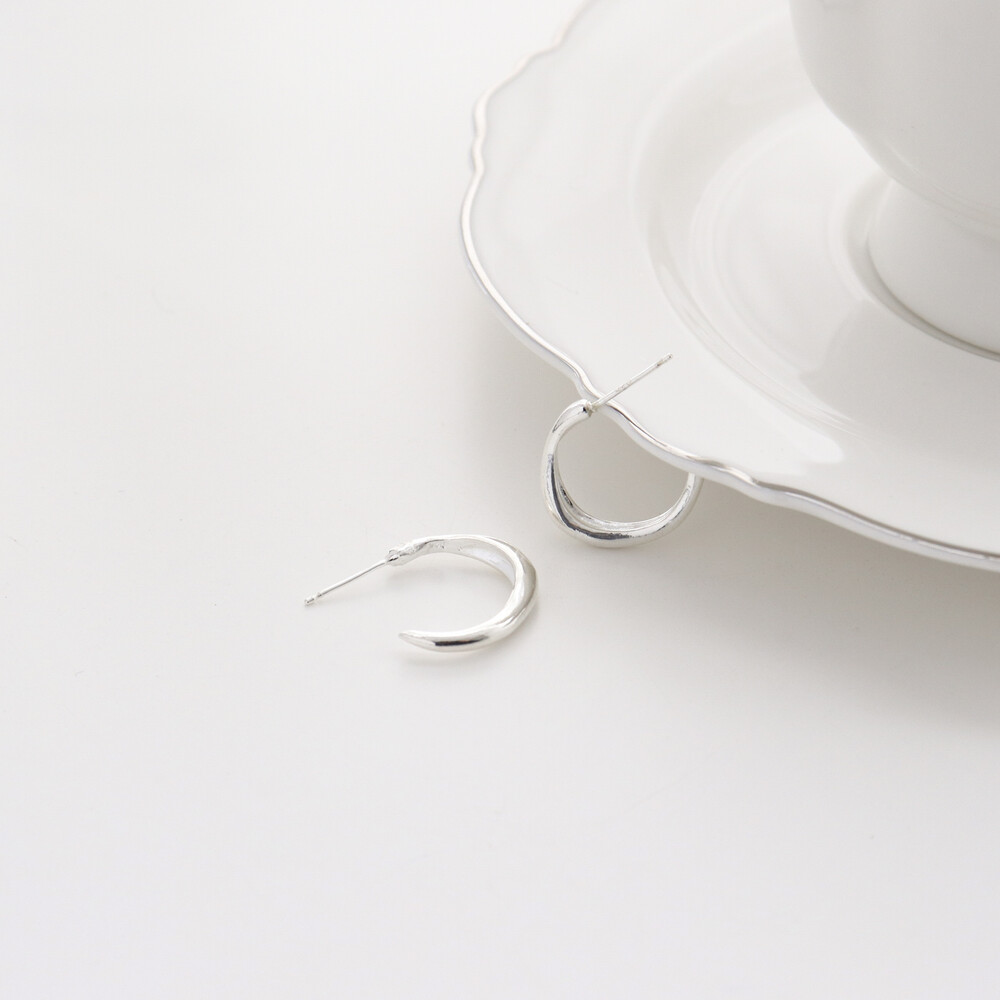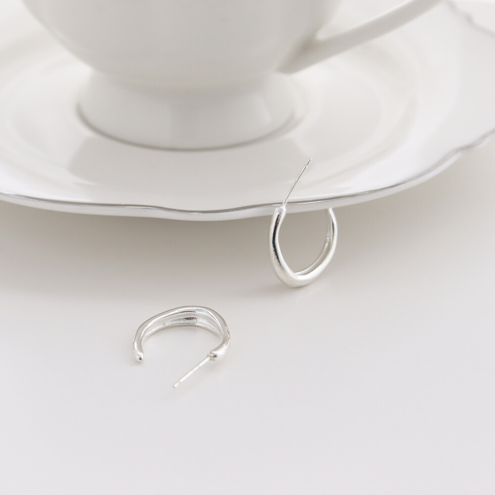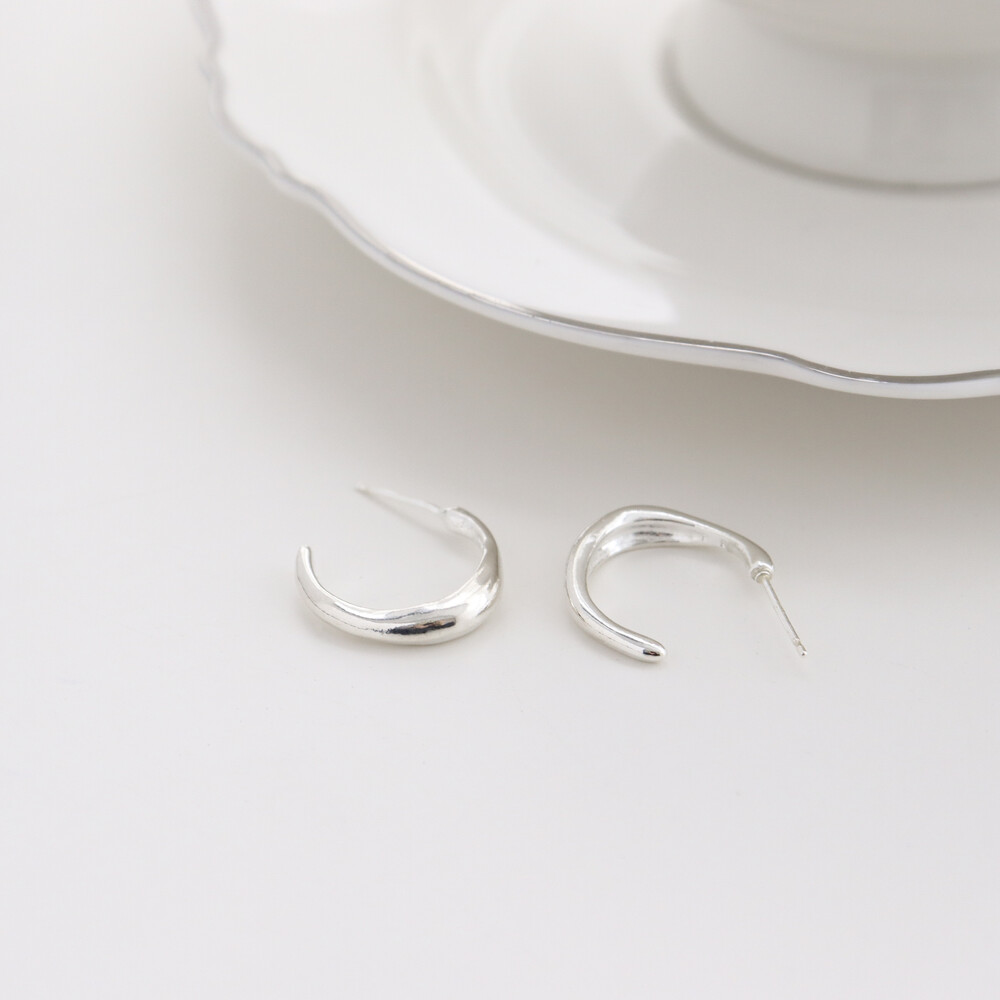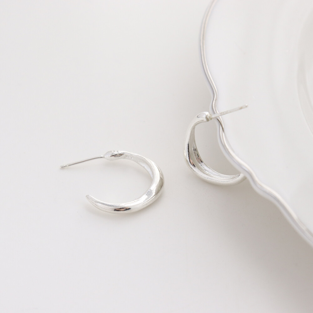 101875 Simple C-Hoop Silver Earrings 15x18 mm