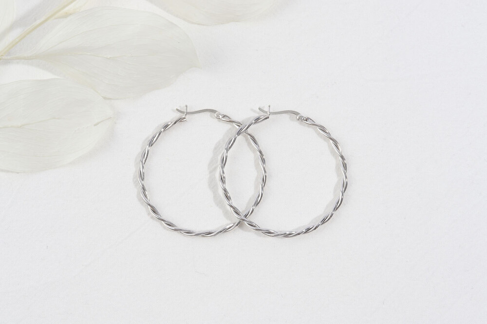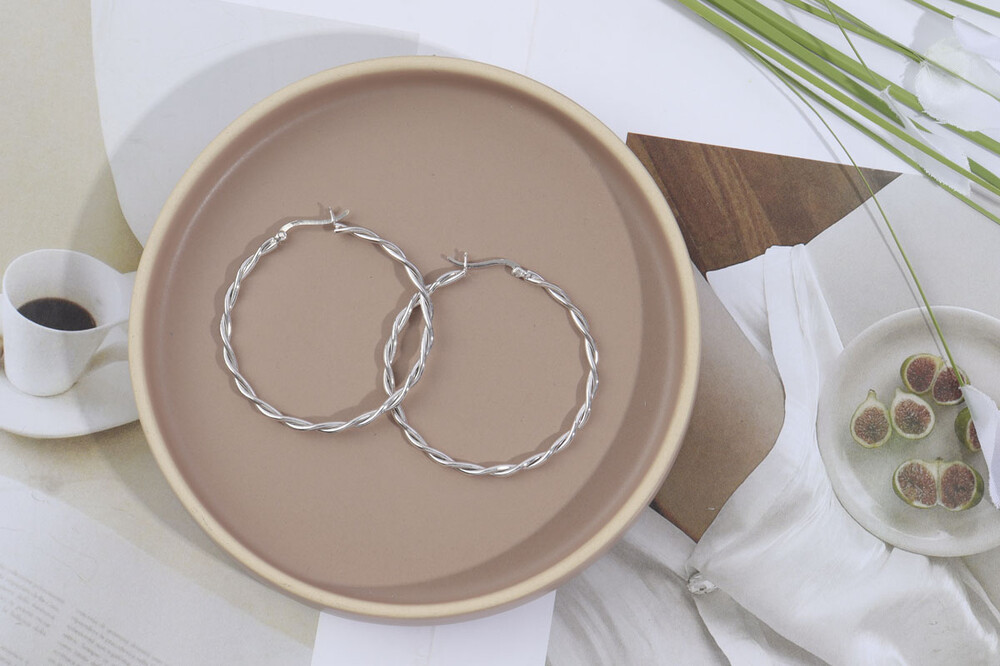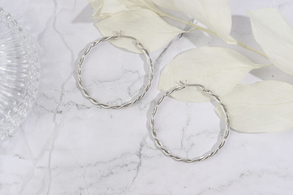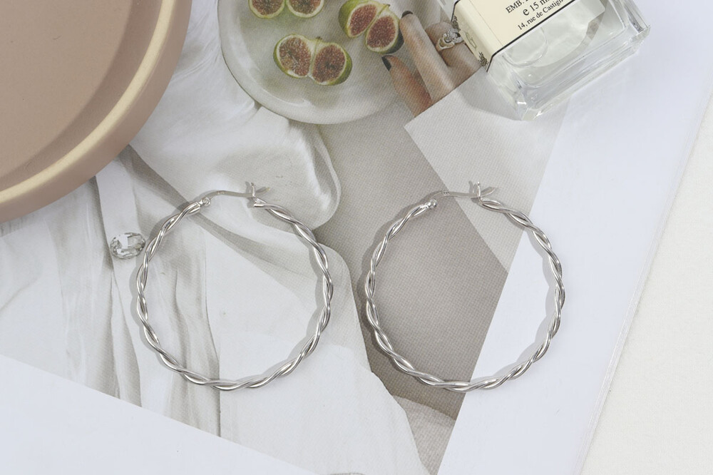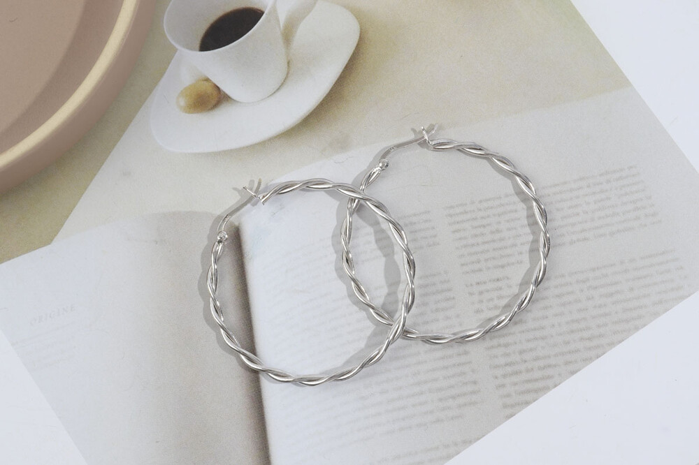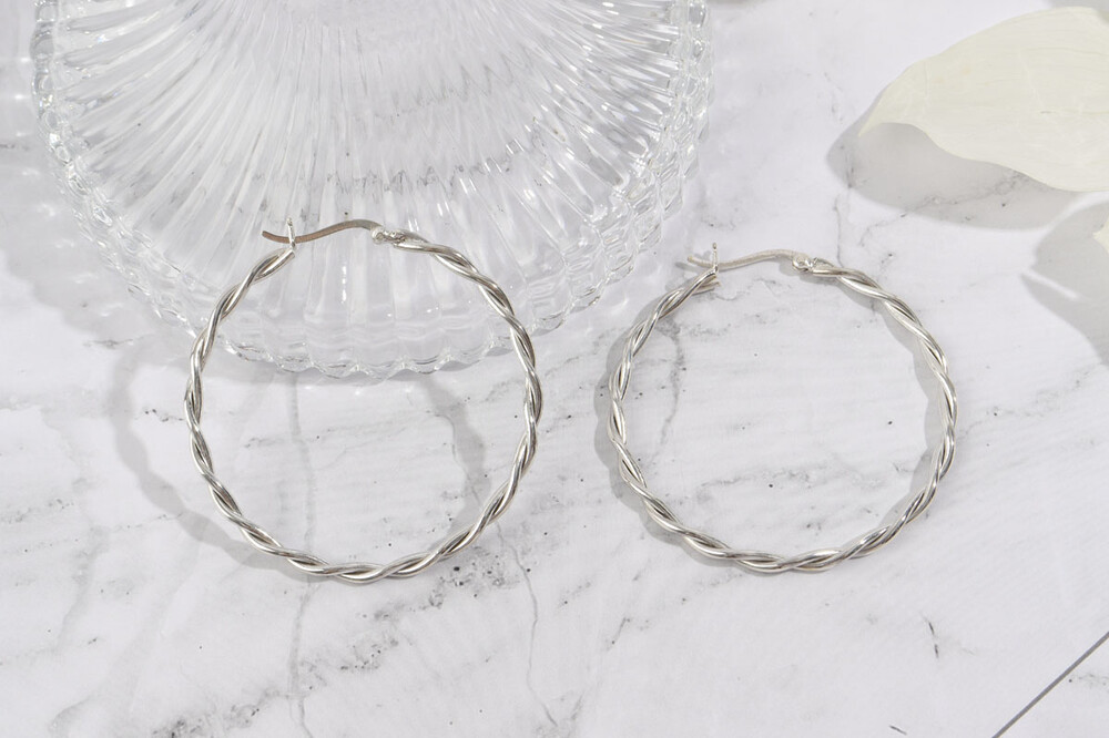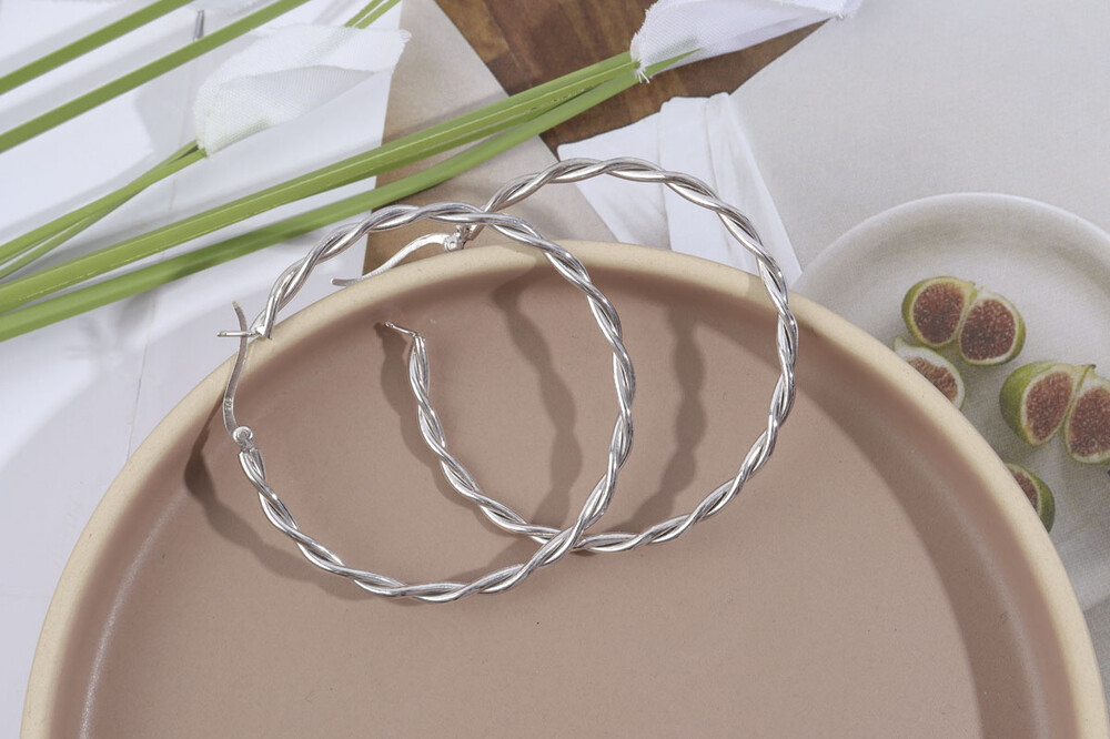 101911 50mm Large Twisted Hoop Earrings Sterling Silver 925