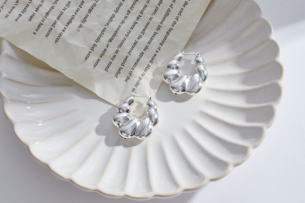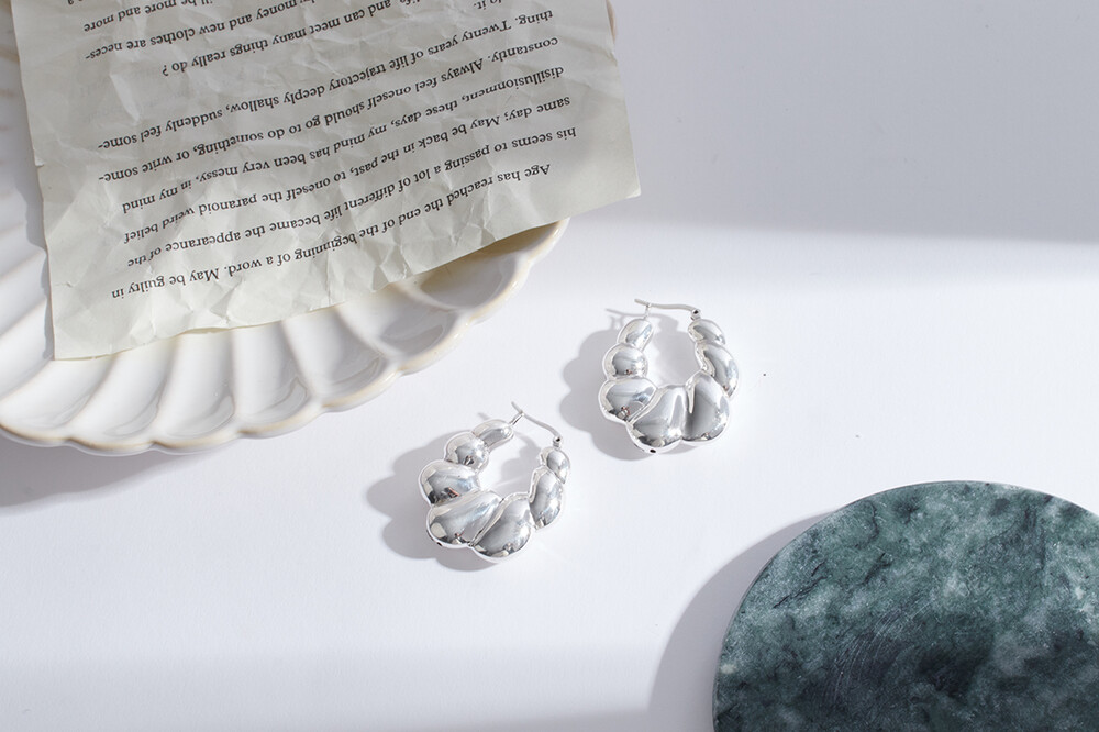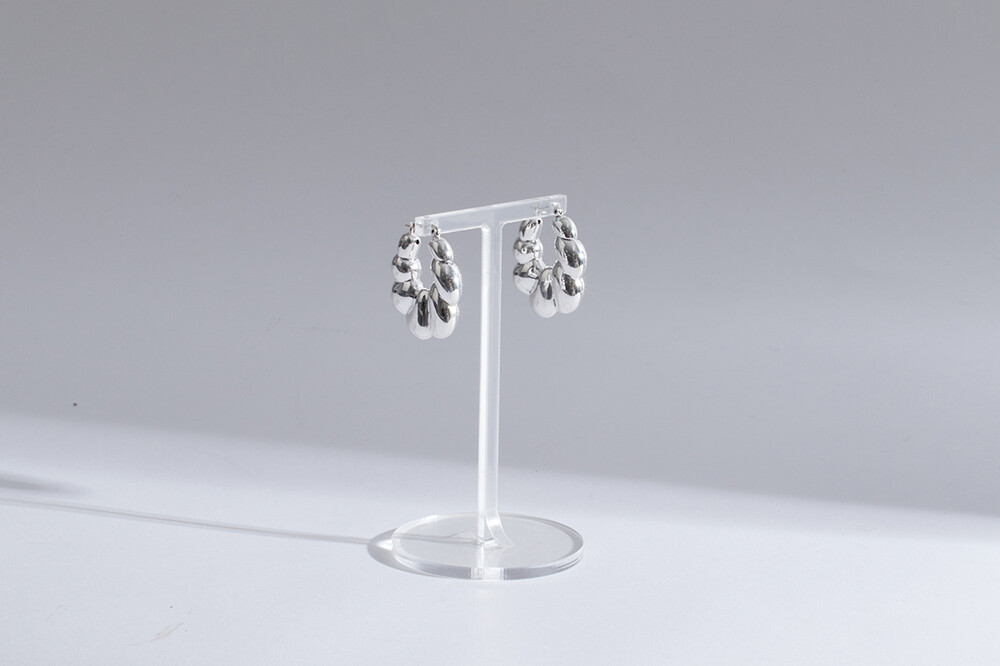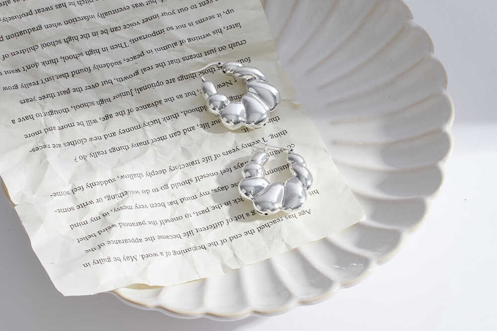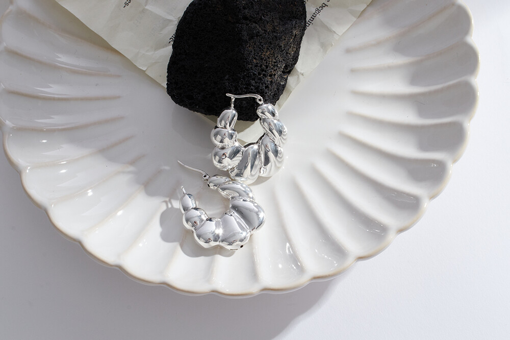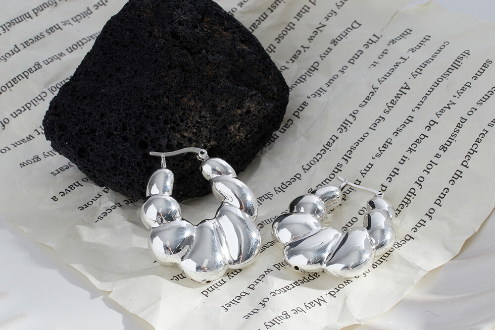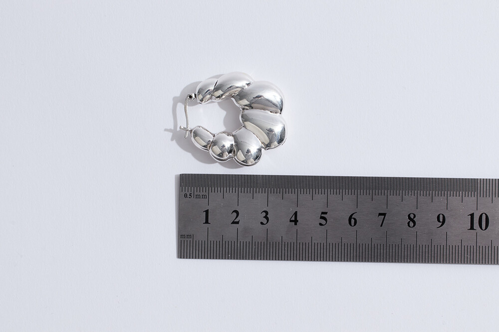 101959 Bubble Round Hoop Earrings Sterling Silver 925 Hollow Light Weight