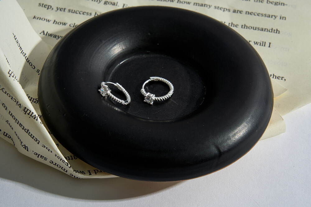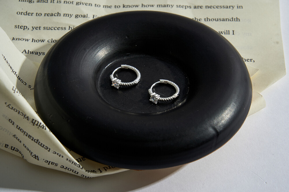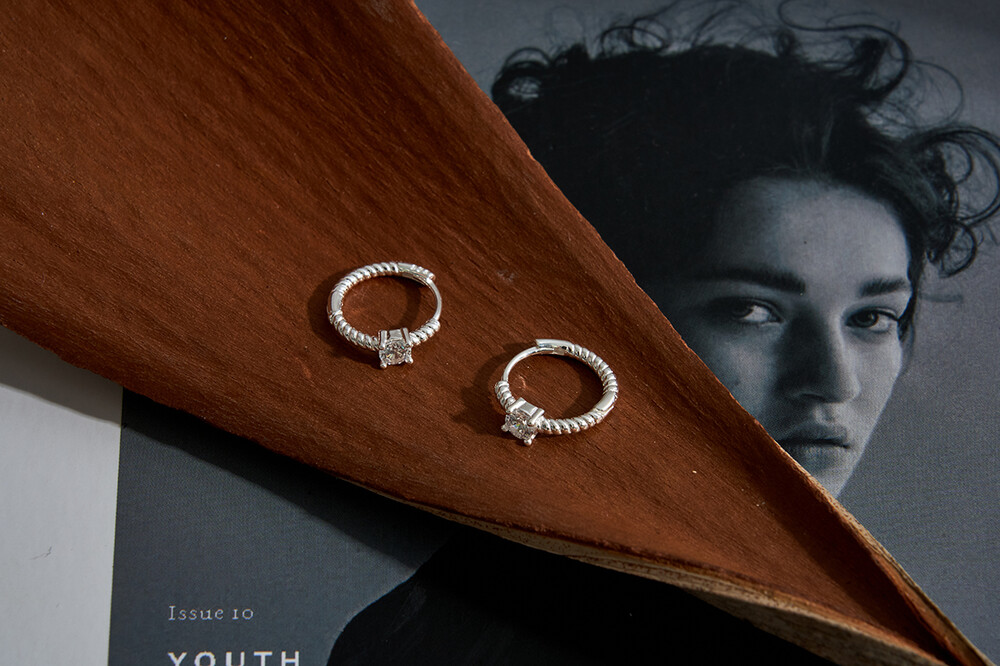 101969 Mini Crystal Round Hoop Earrings Sterling Silver 925
