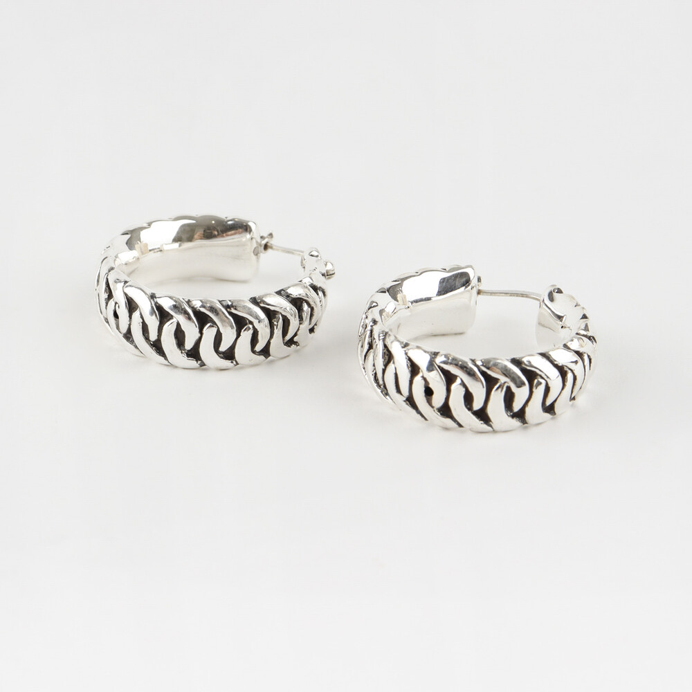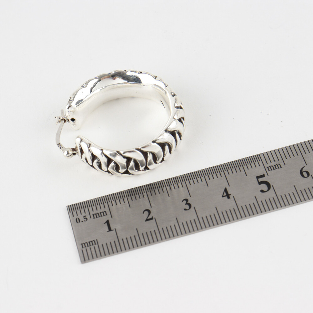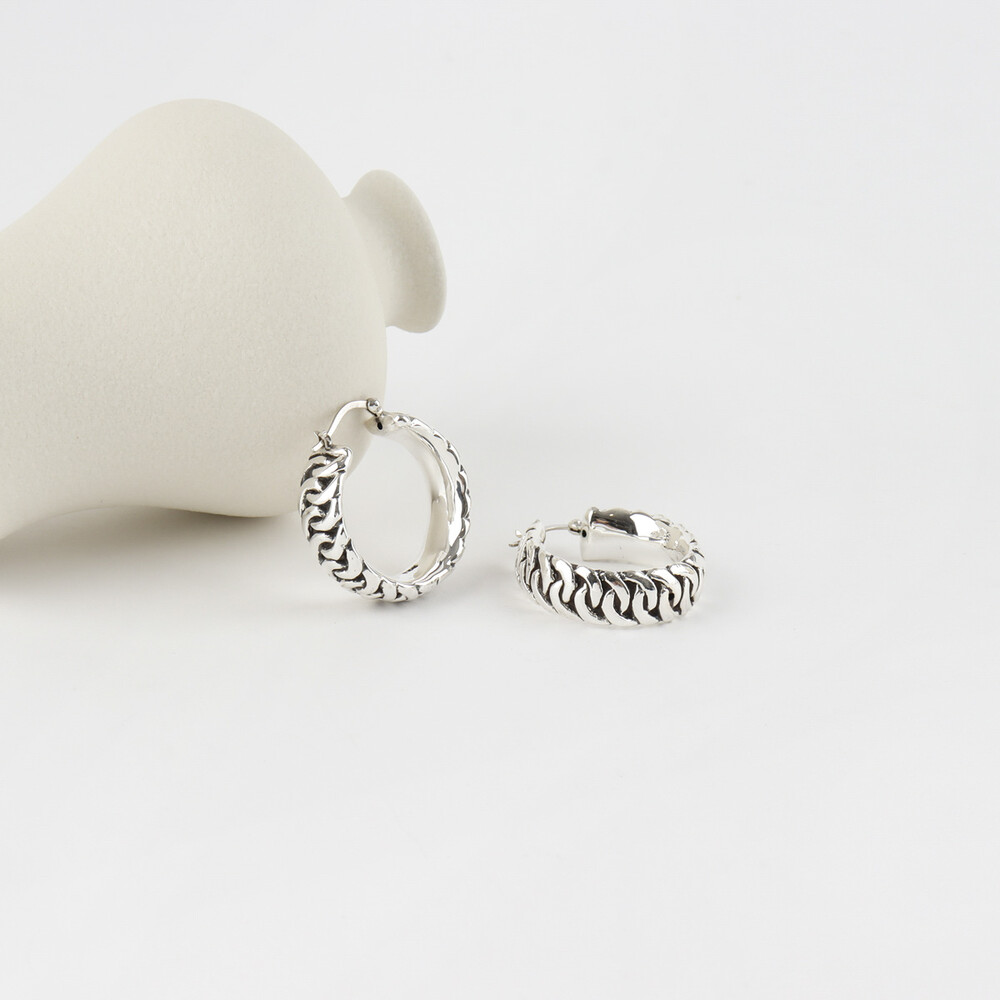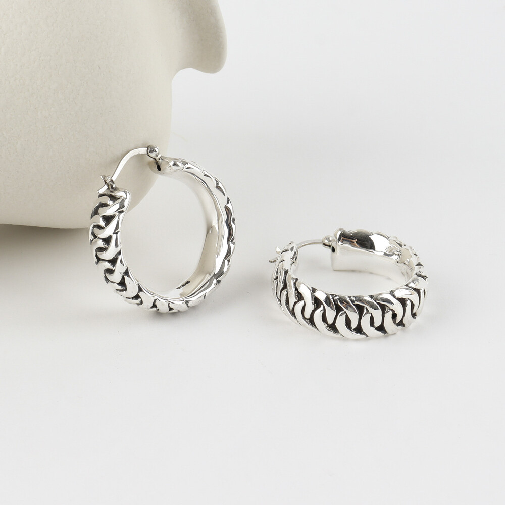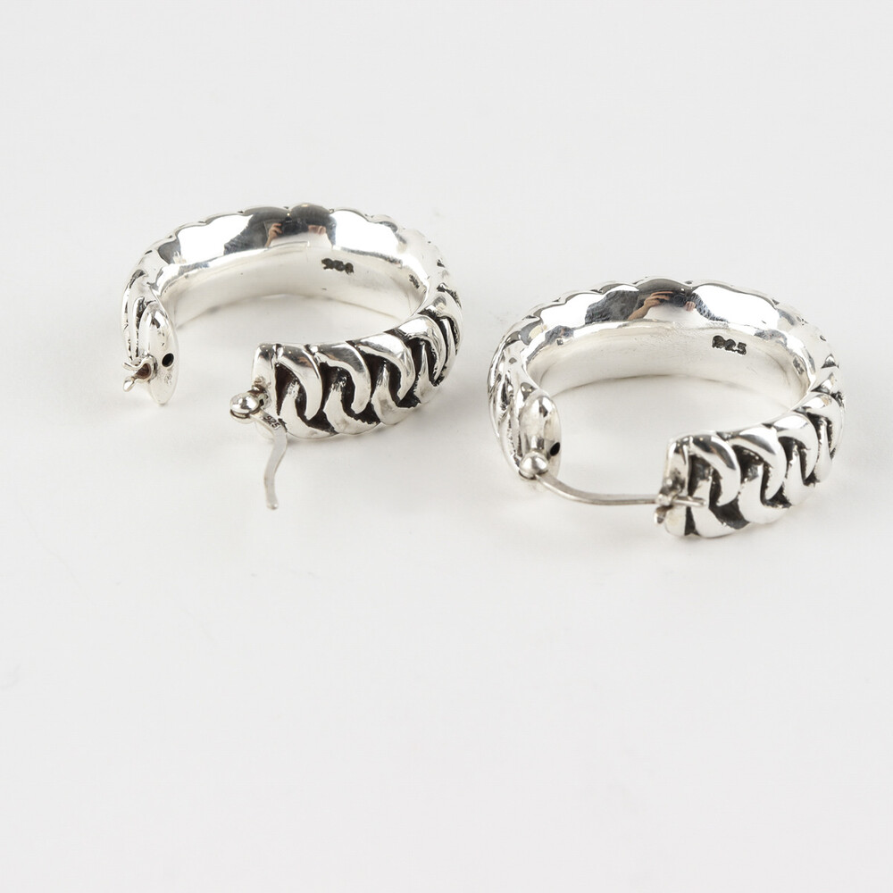 101990 Silver 925 Bold Oxidized Hoop Earrings