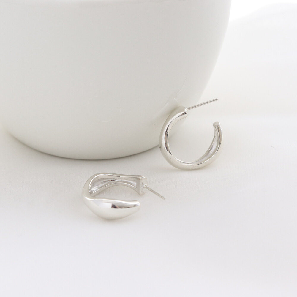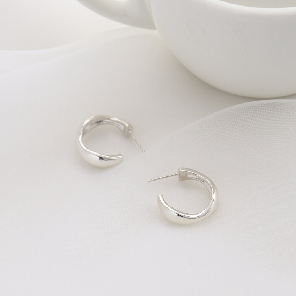 102039 Bold Wave Hoop Silver Earrings 20 mm